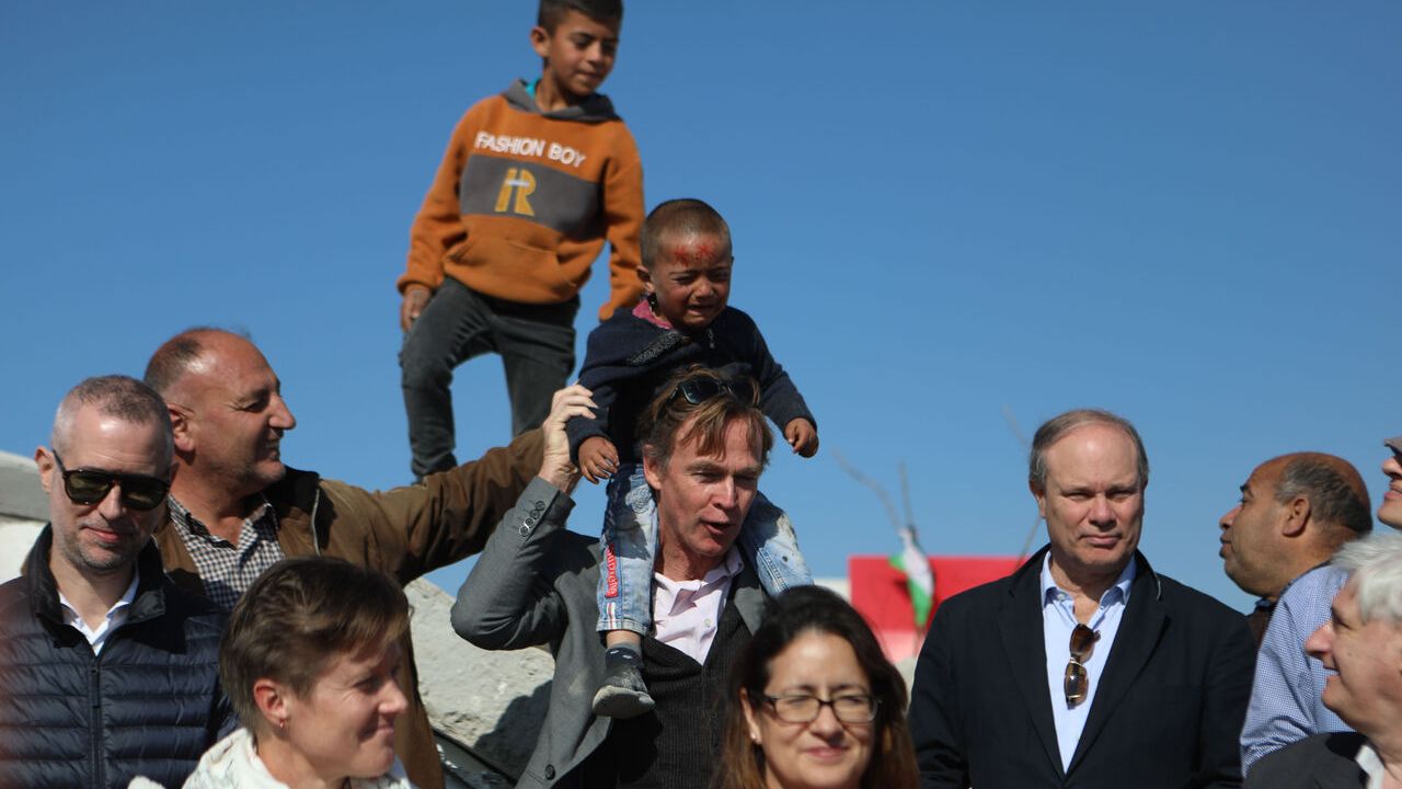 Avrupa Birliği (AB) temsilcisi ile birliğe üye ülkelerin büyükelçileri ve konsoloslarının yer aldığı heyet, Batı Şeria'nın güneyindeki Mesafir Yatta Köyü temsilcileri ve sakinleriyle bir araya geldi.