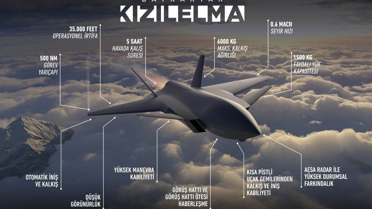 Kısa pistli gemilerden kalkış ve iniş kabiliyeti ile muharebe sahasında devrim gerçekleştirecek bir platform olacak Bayraktar Kızılelma, bu yeteneği sayesinde denizaşırı görevlerde önemli rol üstlenerek Mavi Vatan'ın korunmasında stratejik görevler yapacak. 8,5 ton kalkış ağırlığı, 1.500 kilogram faydalı yük taşıma kapasitesine sahip olan Bayraktar Kızılelma, milli AESA radar ile yüksek durumsal farkındalığa da sahip olacak. Milli olarak geliştirilen tüm mühimmatları kullanacak olan Bayraktar Kızılelma, akıllı filo otonomisi ile görev yapabilecek.