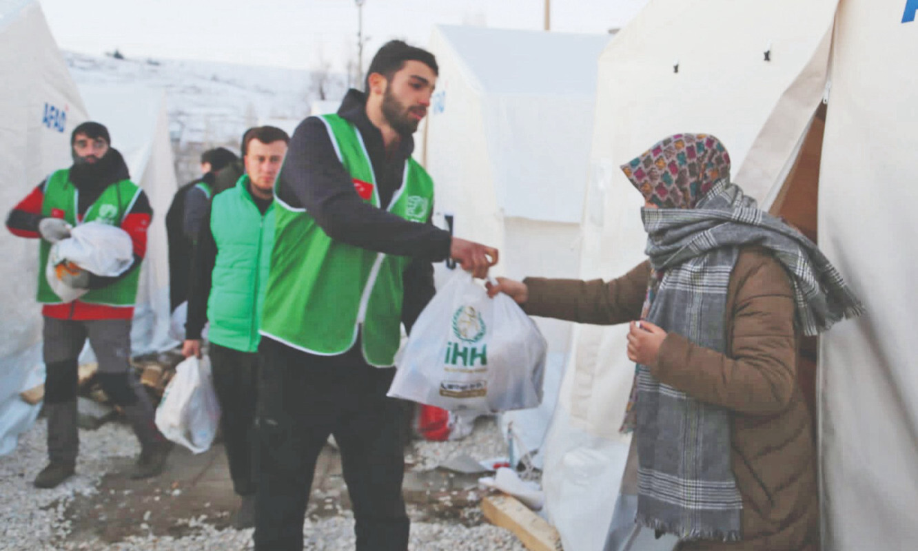 * İDDEF: 137 yardım TIR’ı gönderen ve 5 lojistik merkez kuran İDDEF, 600 saha görevlisi ile 3 ilde her gün 14 bin kişiye çorba ikram etti. Depremzedelere 910 ton kuru gıda ve kumanya, 34 bin battaniye, on binlerce ekmek, su kıyafet dağıttı. 250 çadır temin eden İDDEF, yakıt, kömür gibi destekleri ile de depremzedelerin yanında yer aldı.
