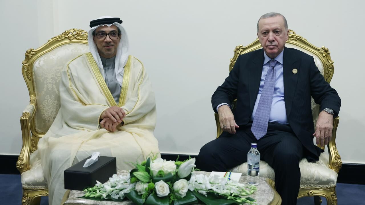 Erdoğan, zirve öncesinde ilk olarak Birleşik Arap Emirlikleri (BAE) Veliaht Prensi Mansur bin Zayid Al Nahyan ile bir araya geldi.