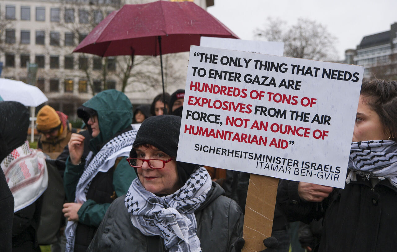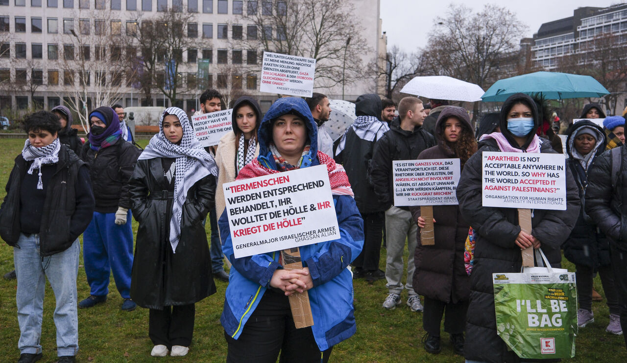 Almanya’nın başkenti Berlin’deki Stein Meydanı'nda, üniversite öğrencileri, İsrail’in Gazze’ye yönelik saldırılarını protesto etti.