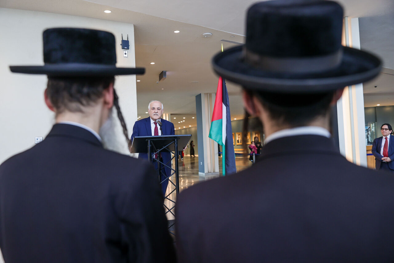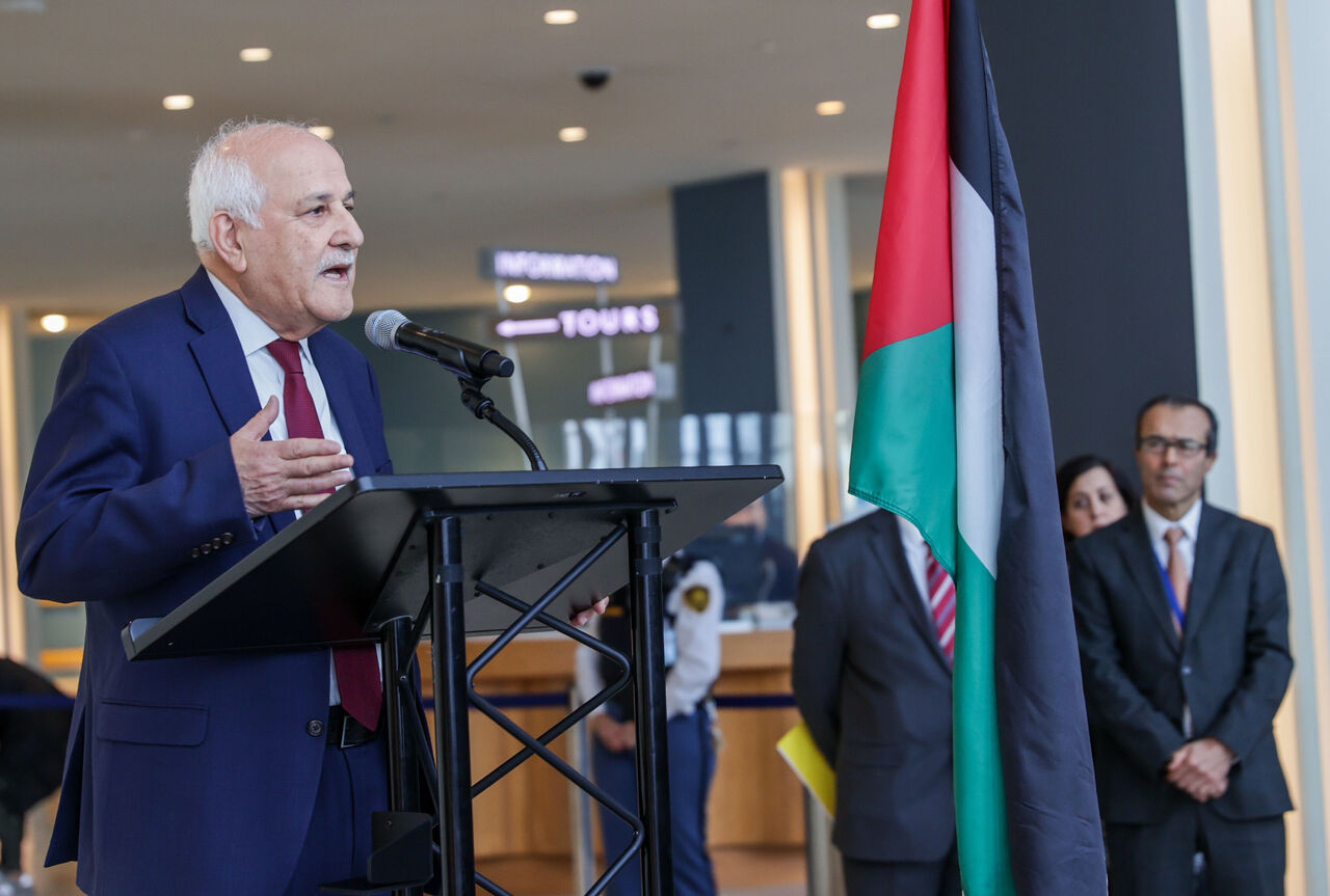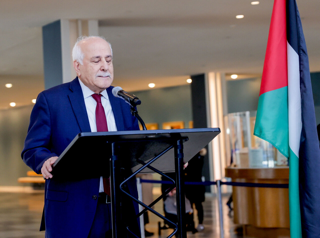 Filistin BM Daimi Temsilcisi Riyad Mansour (fotoğrafta) törende konuşma yaptı.