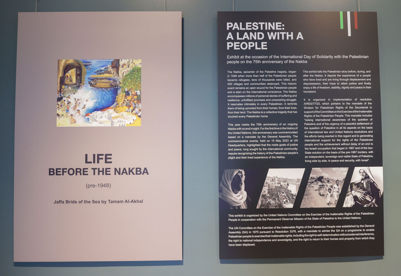 Nakba'nın 75. yıldönümünde, Filistin Halkıyla Uluslararası Dayanışma Günü dolayısıyla ABD'nin New York kentindeki Birleşmiş Milletler (BM) Genel Merkezi Genel Kurul ziyaretçi lobisinde “Filistin: Halkı Olan Bir Toprak” sergisinin açılış töreni yapıldı.