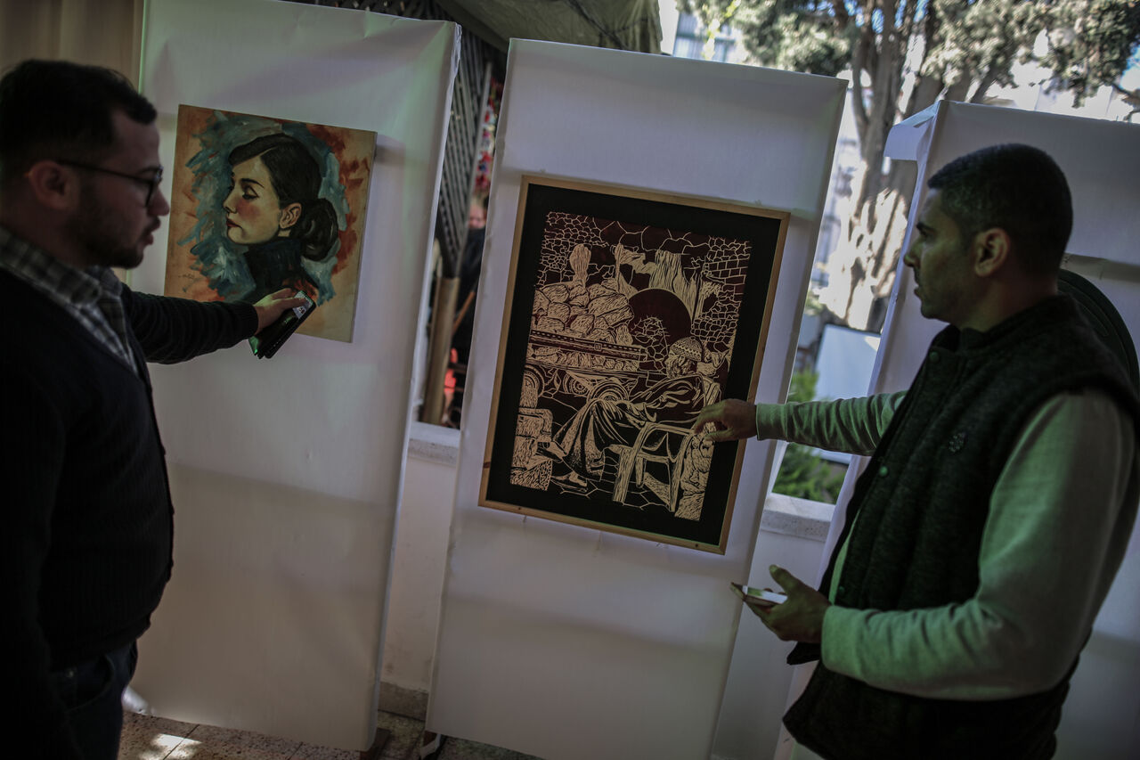 Gazze'deki Mısır Kültür Merkezi'nde, Filistinli genç sanatçıların eserlerinin yer aldığı resim sergisi Gazzeliler tarafından büyük ilgi gördü.