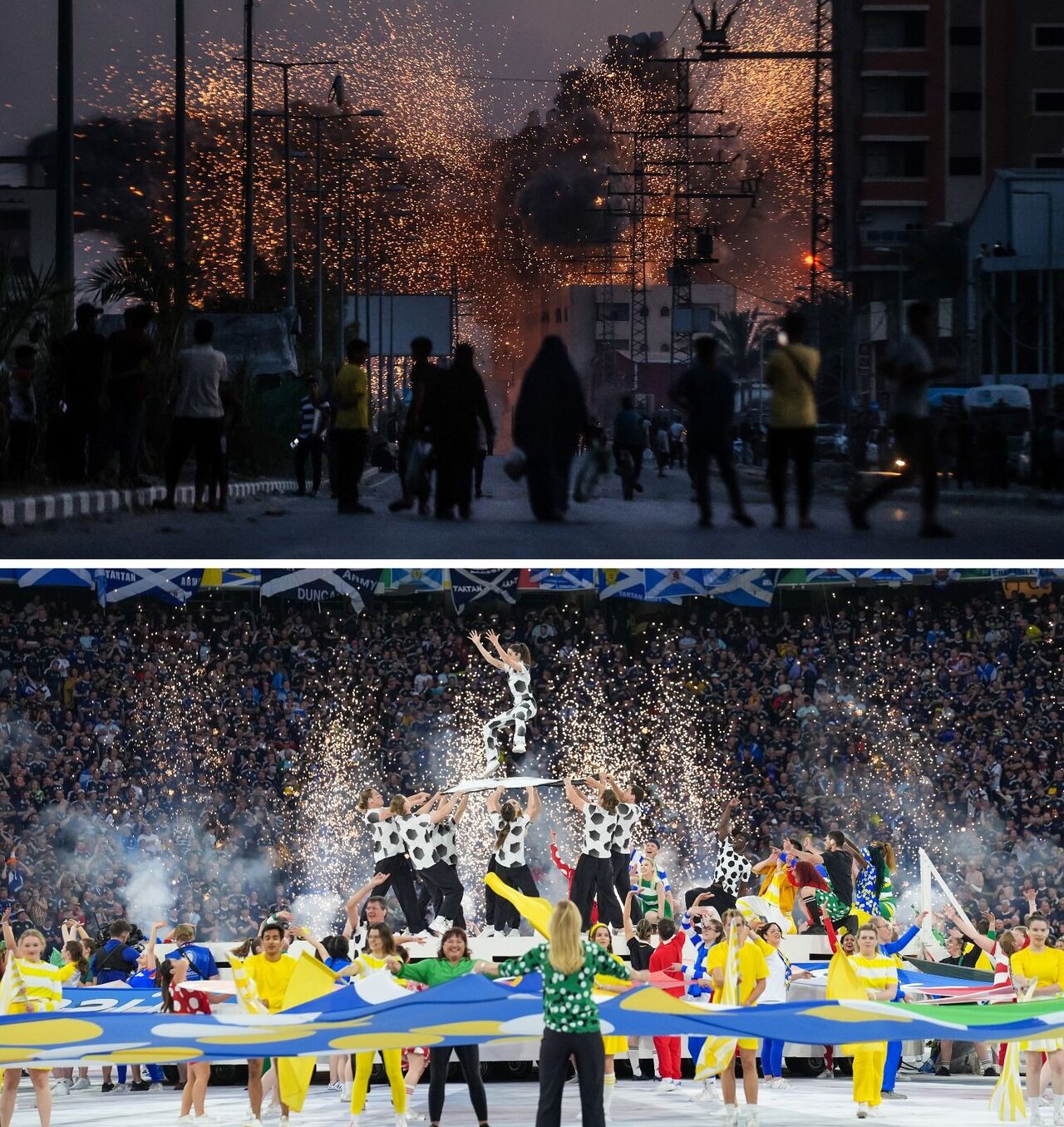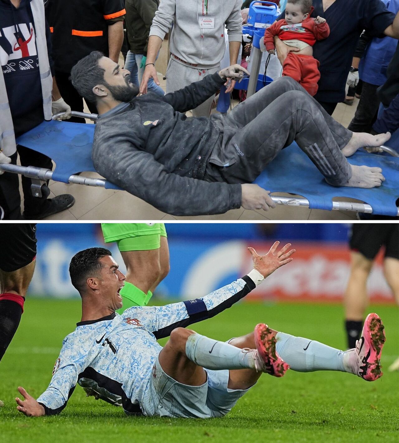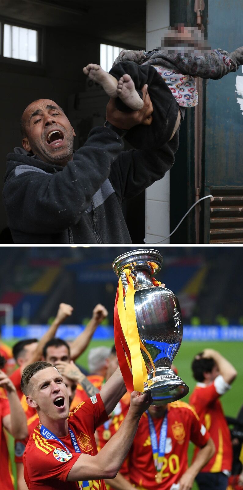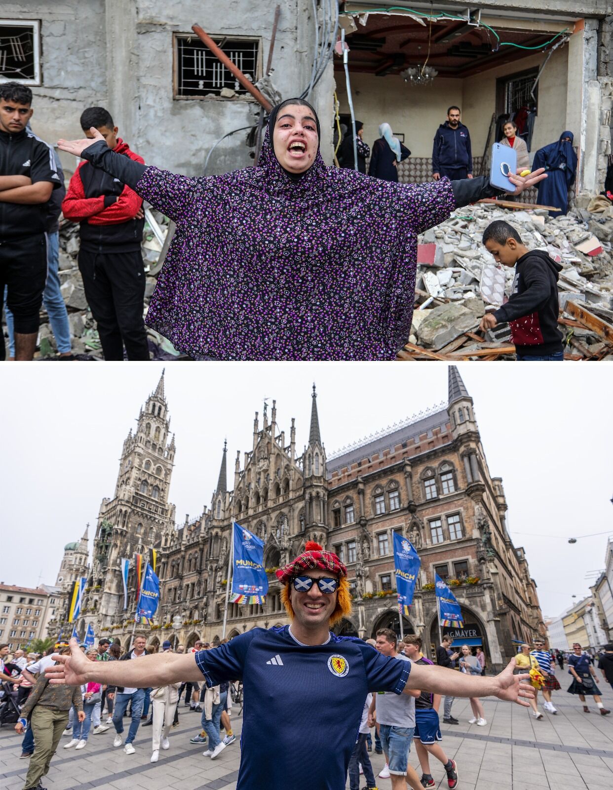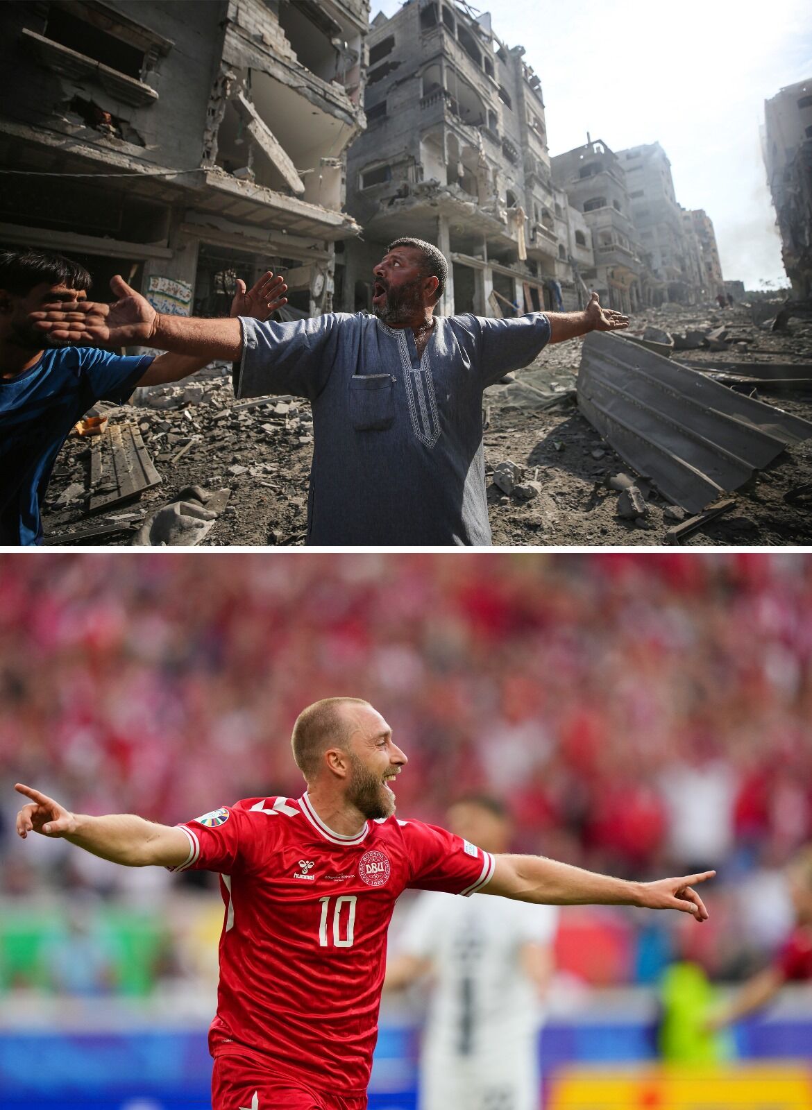 Avrupa’nın en büyük futbol turnuvası olan 2024 Avrupa Futbol Şampiyonası (EURO 2024) ile İsrail'in saldırılarının sürdüğü Gazze'deki yıkım ve insani kriz, son dönemde dünya gündeminde yer alan iki önemli konu başlığı oldu. İki önemli gündem maddesinden yansıyan bazı fotoğraflar arasında ise benzerlikler göze çarpıyor.