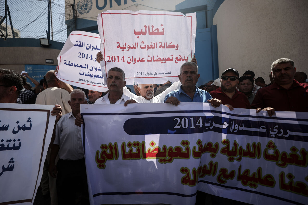 İsrail'in Gazze Şeridi'ne yönelik saldırılarında ev, işyeri ve arazileri yıkılan veya hasar gören onlarca Filistinli, kendilerine tazminat ödenmesi talebiyle UNRWA binası önünde gösteri düzenledi.