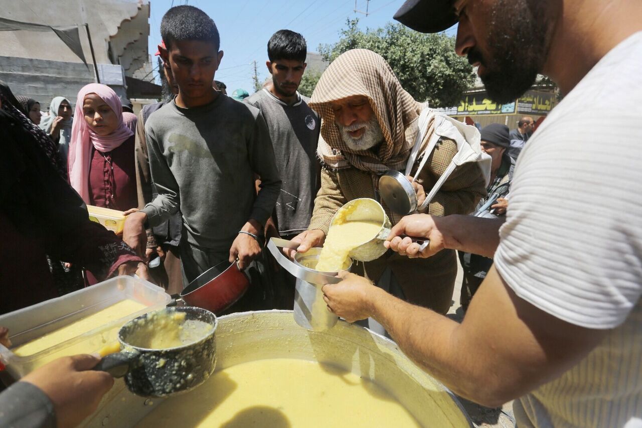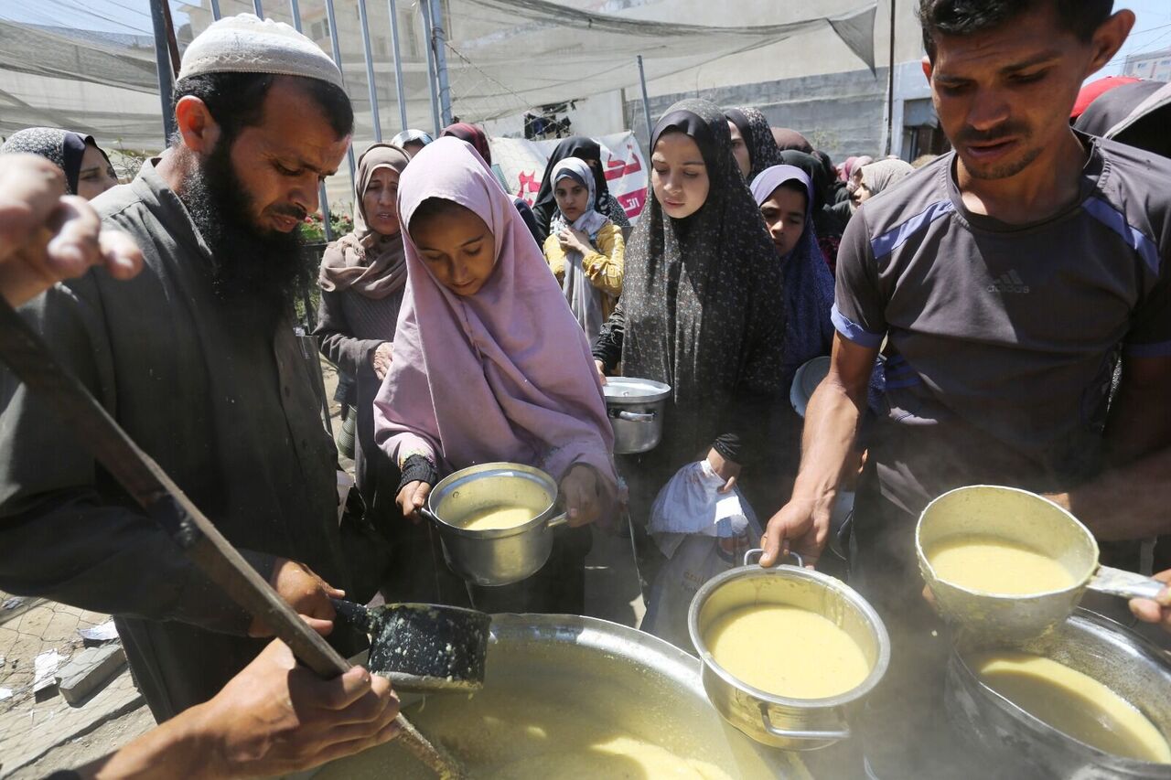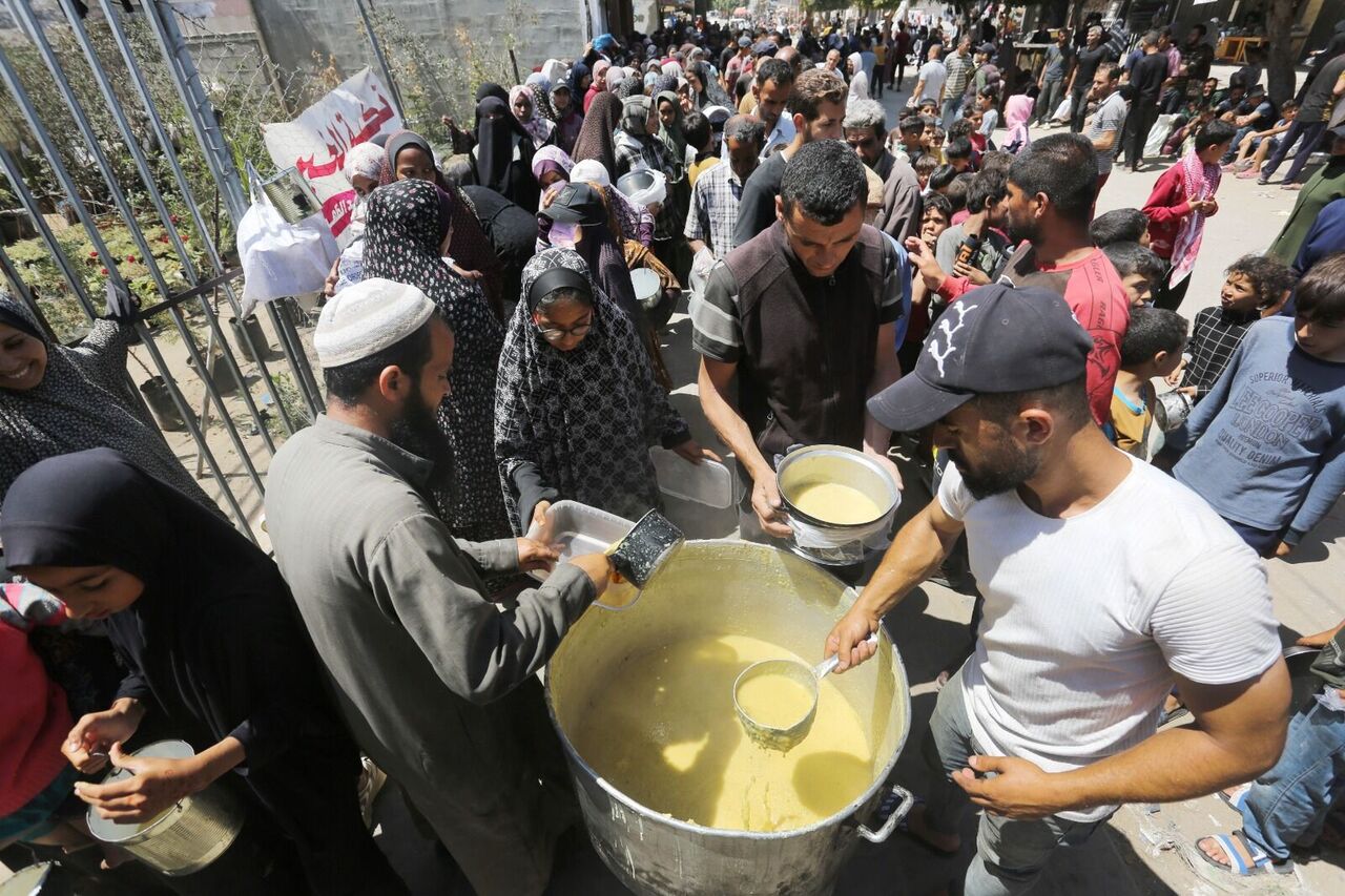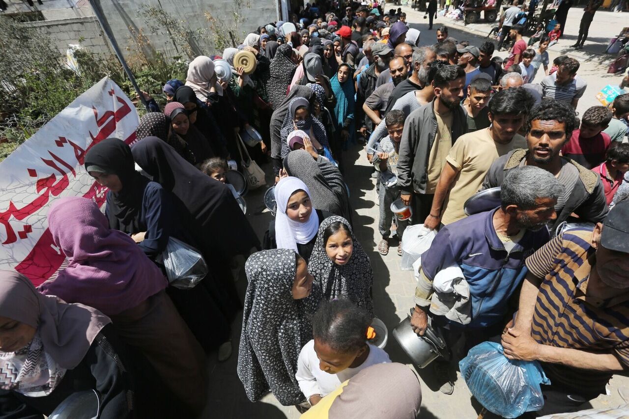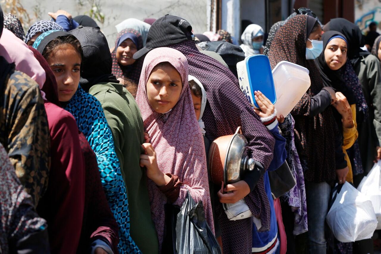 Filistinliler bir kap sıcak yemek için kuyrukta bekliyor