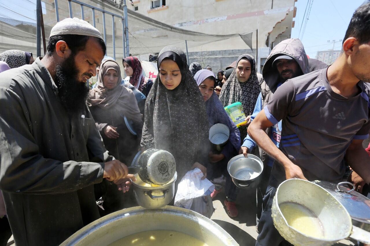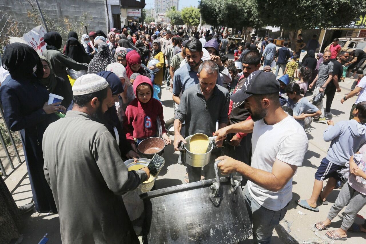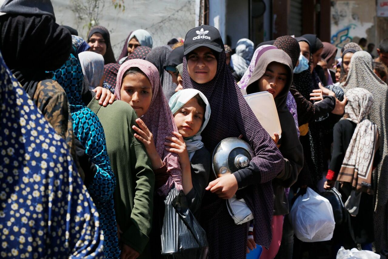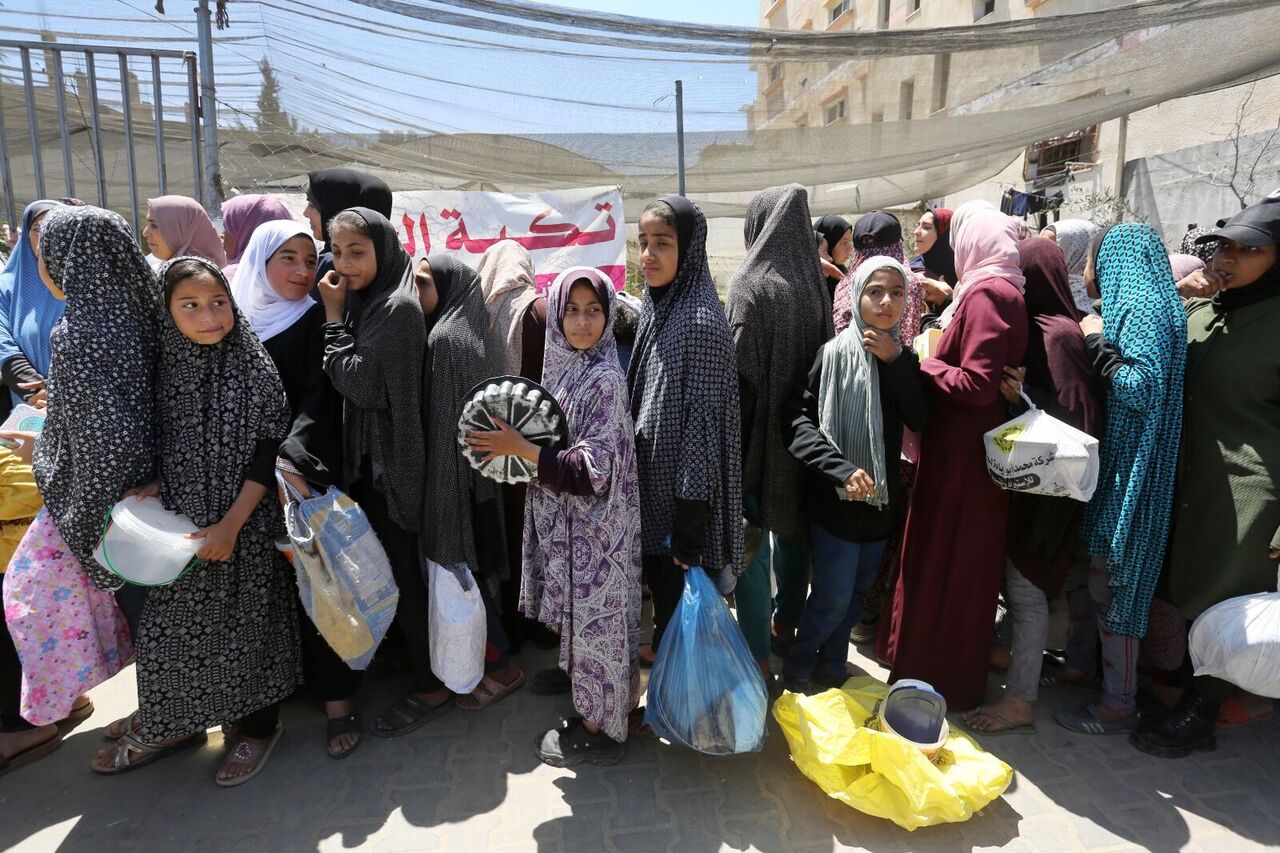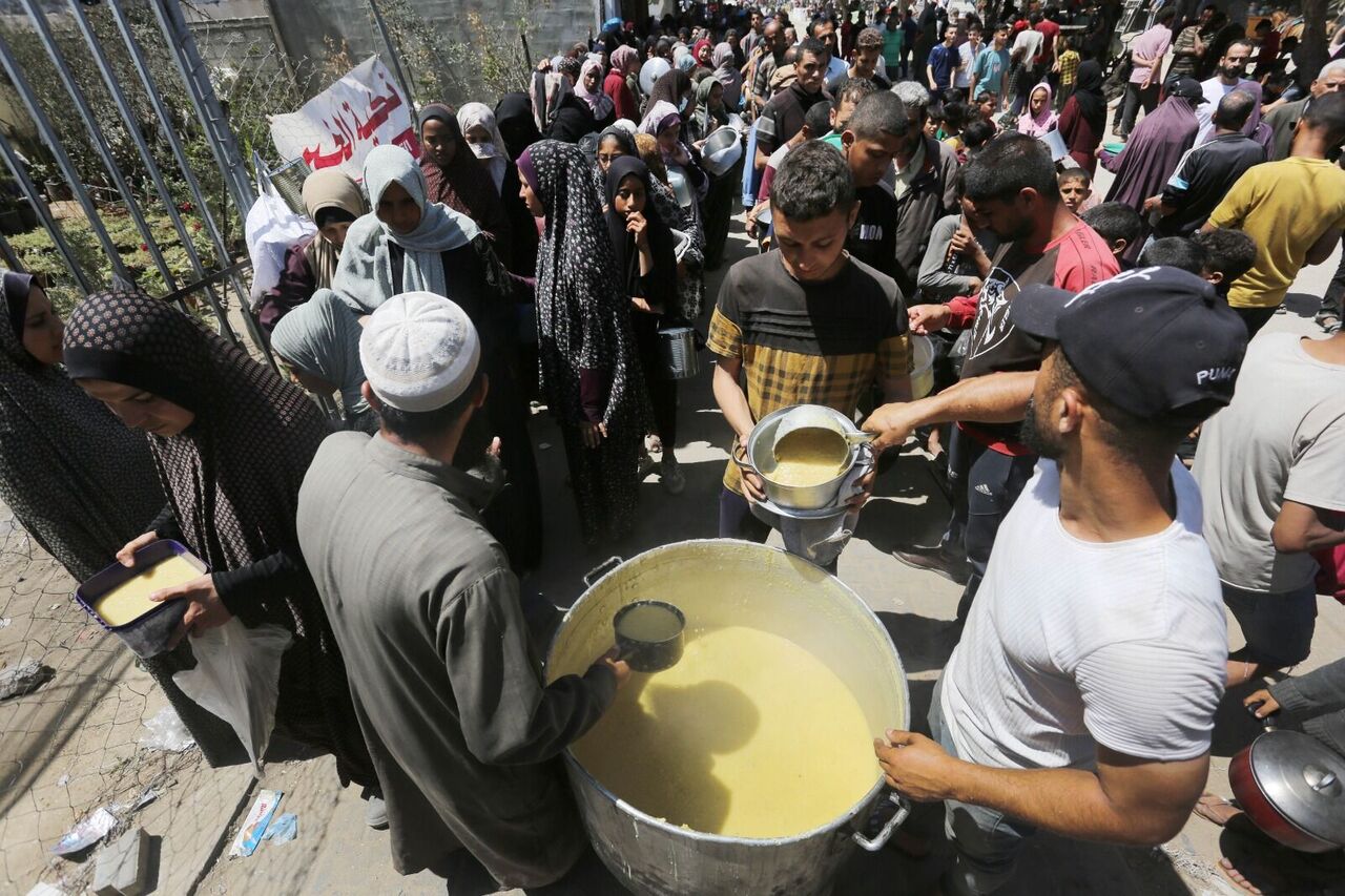 Filistinliler bir kap sıcak yemek için kuyrukta bekliyor