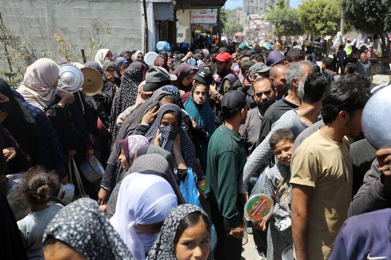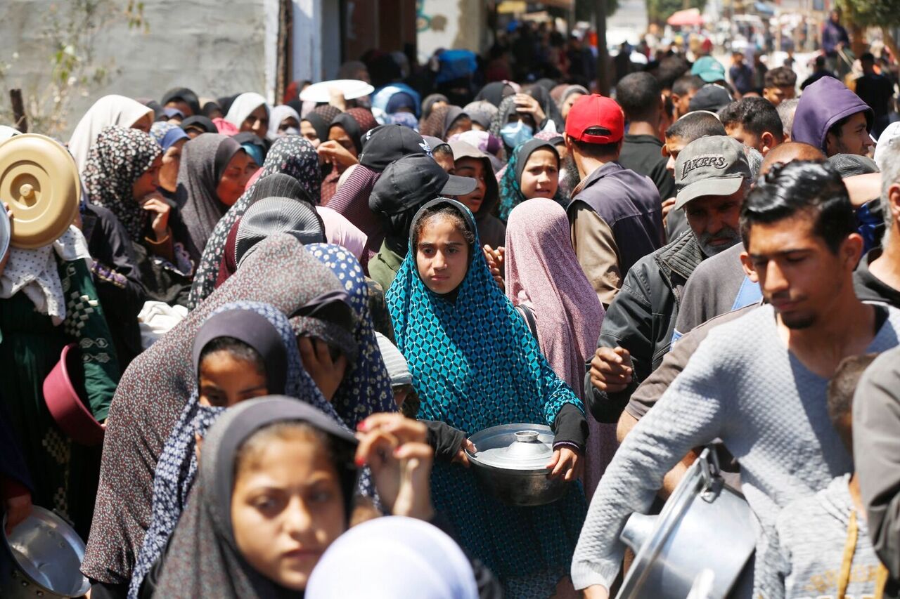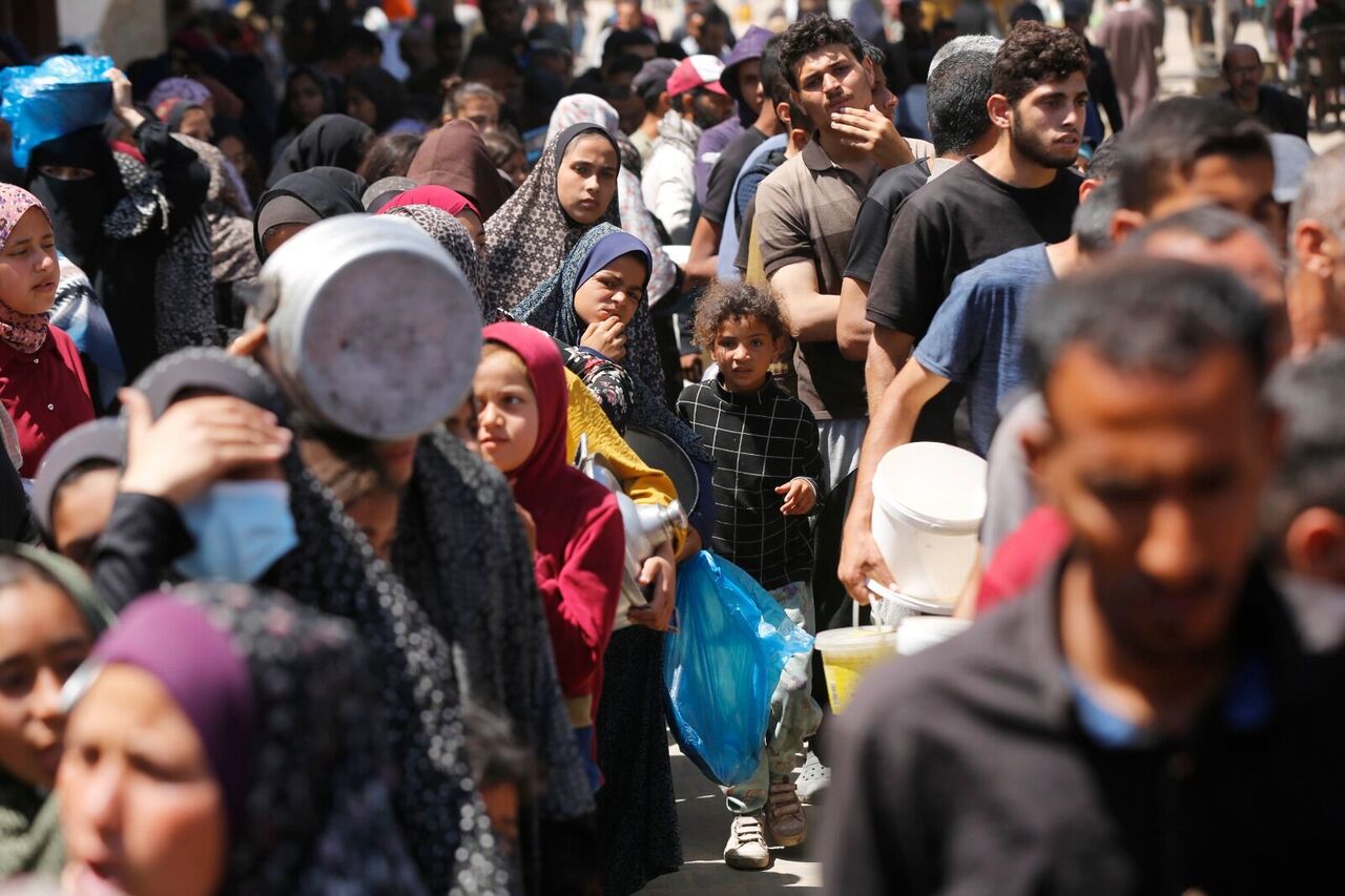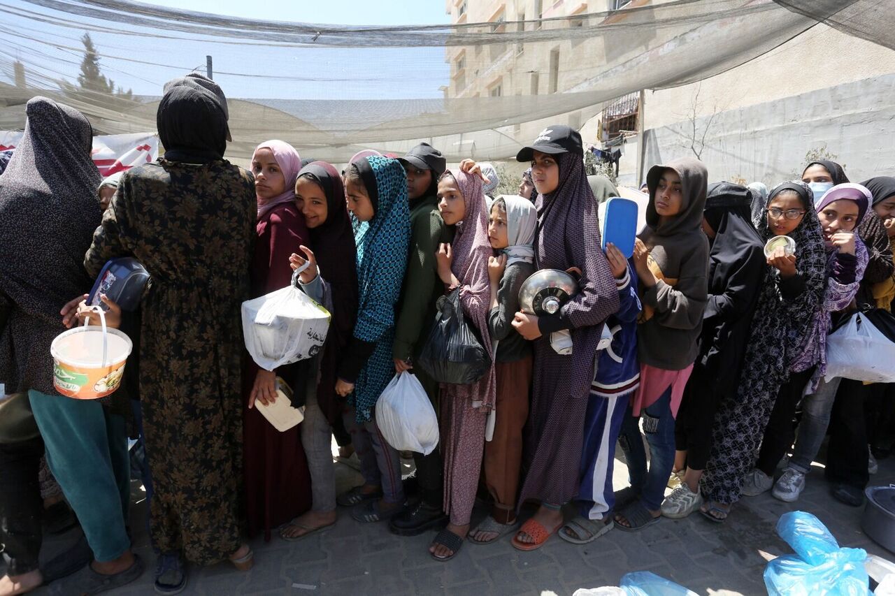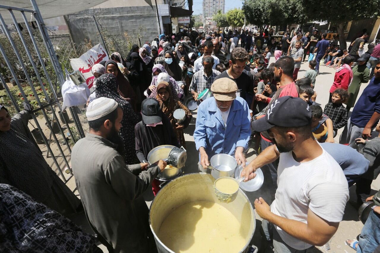 Filistinliler bir kap sıcak yemek için kuyrukta bekliyor
