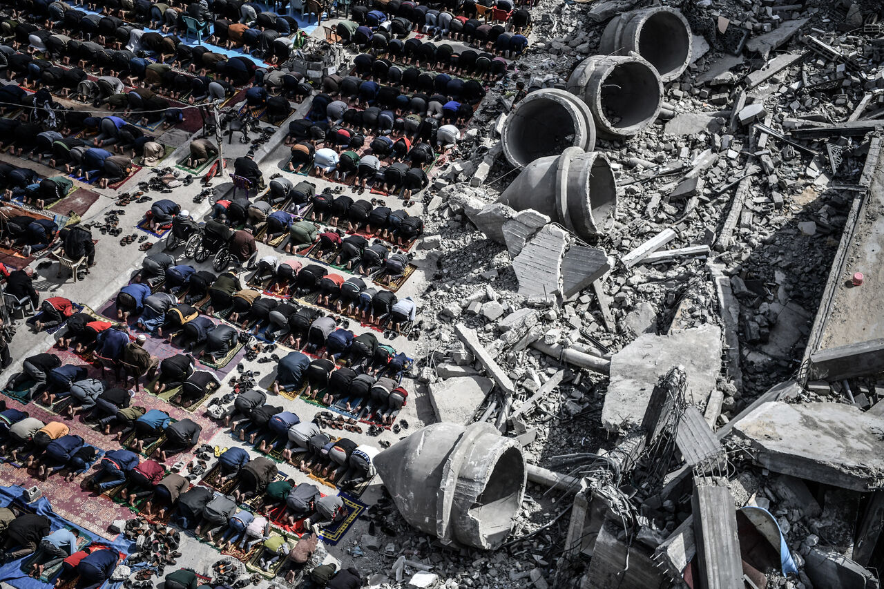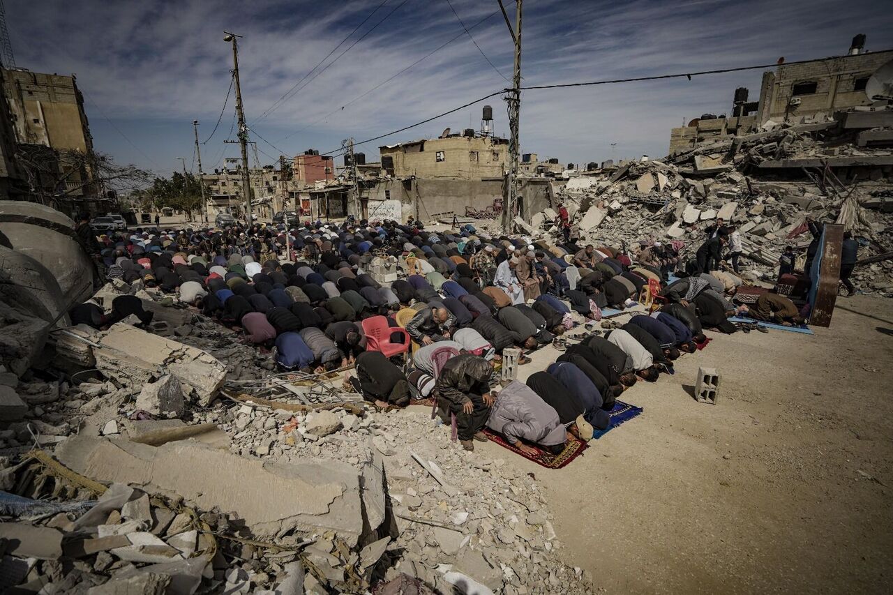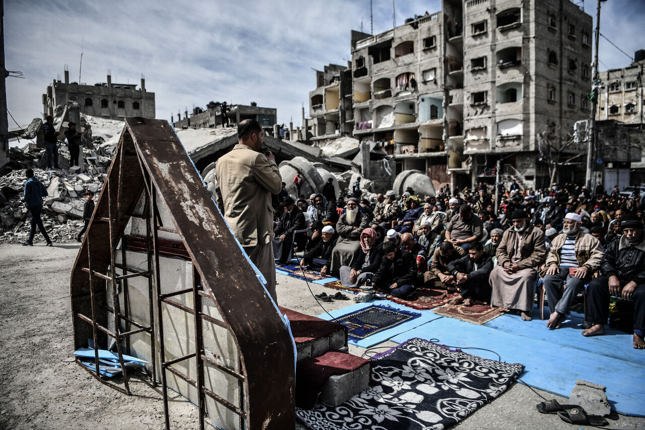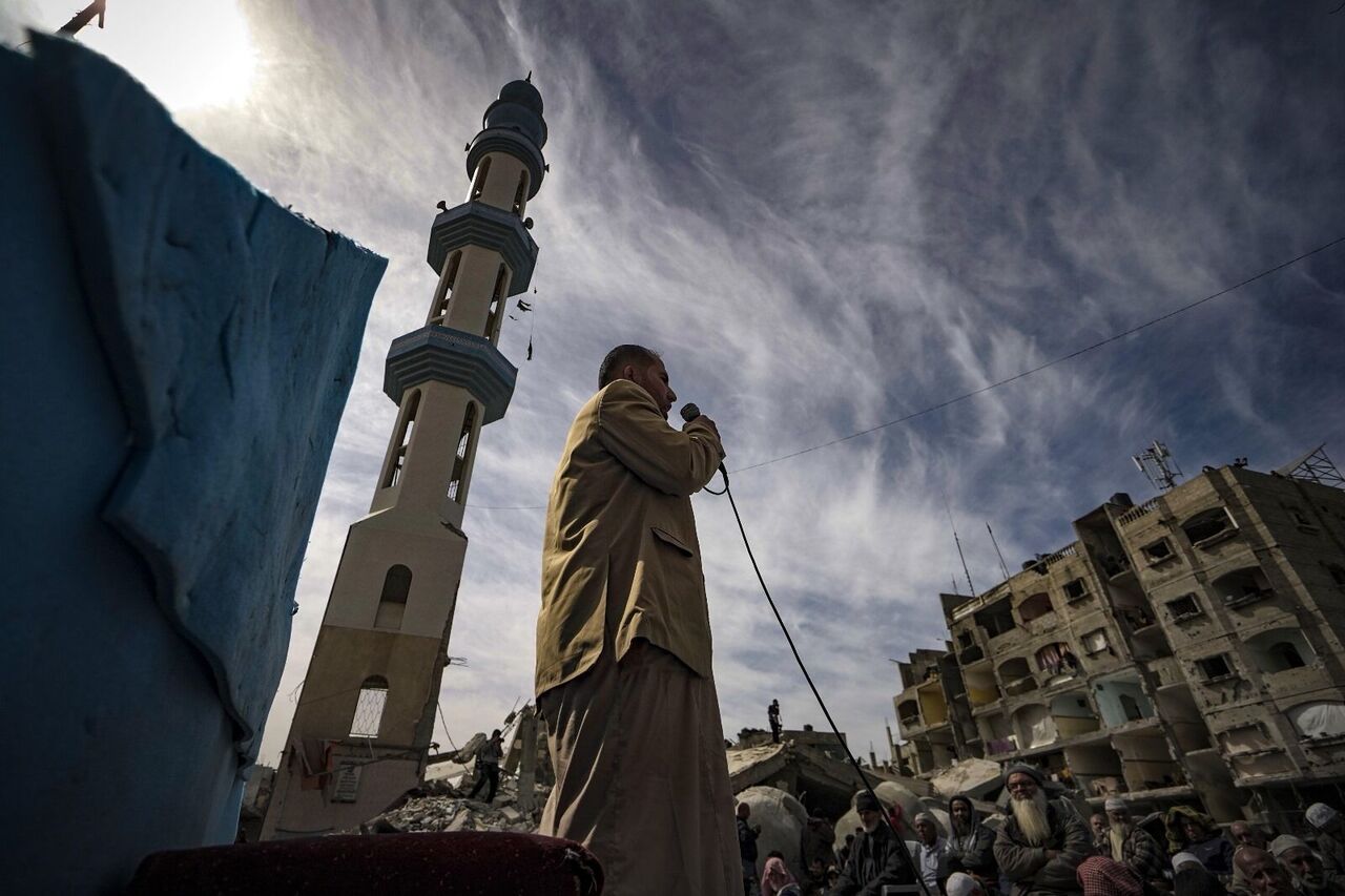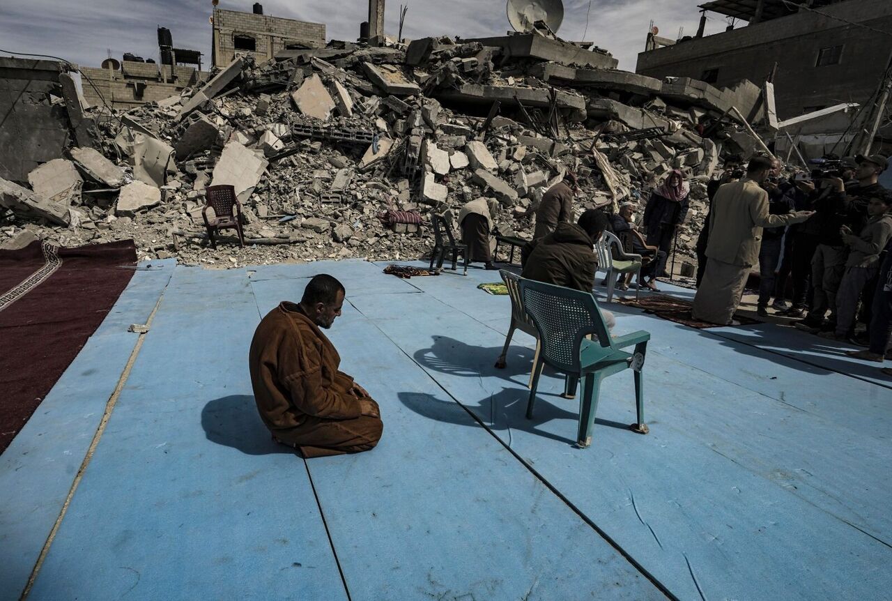 Gazze'nin Refah kentindeki Filistinliler, cuma namazını İsrail saldırısında yıkılan Faruk Camisi enkazında kıldı