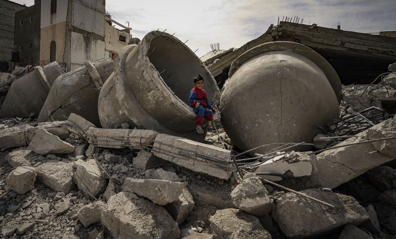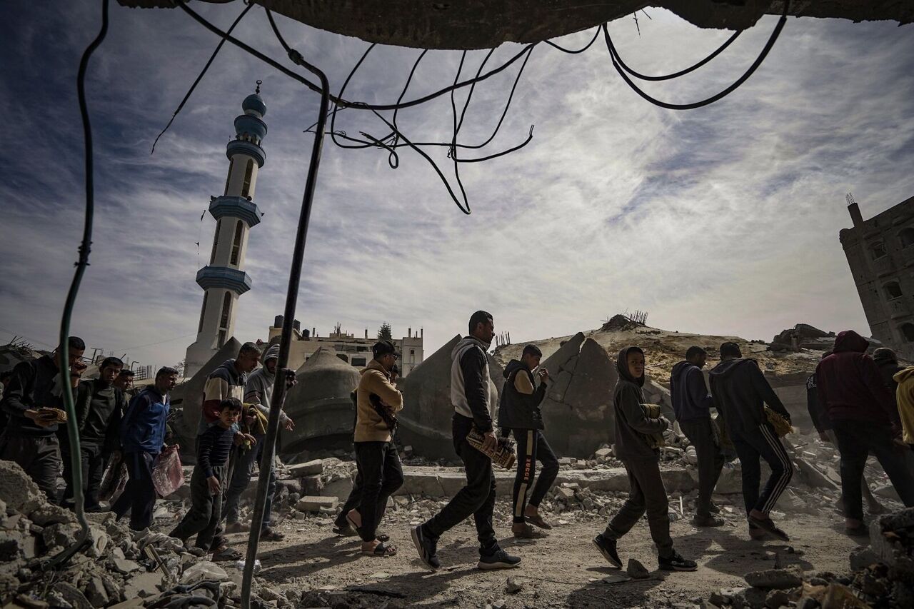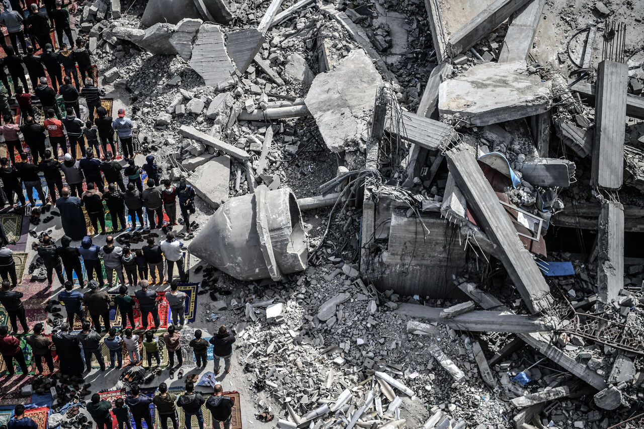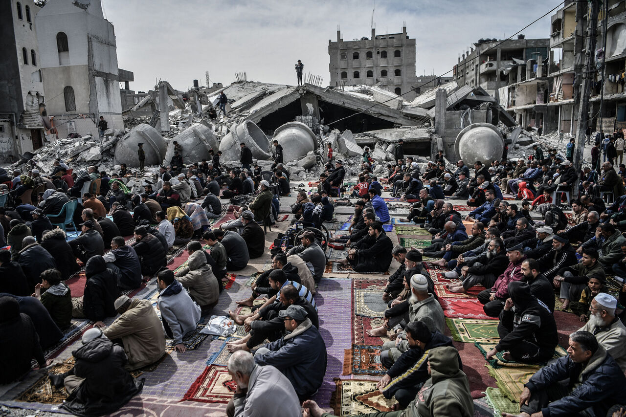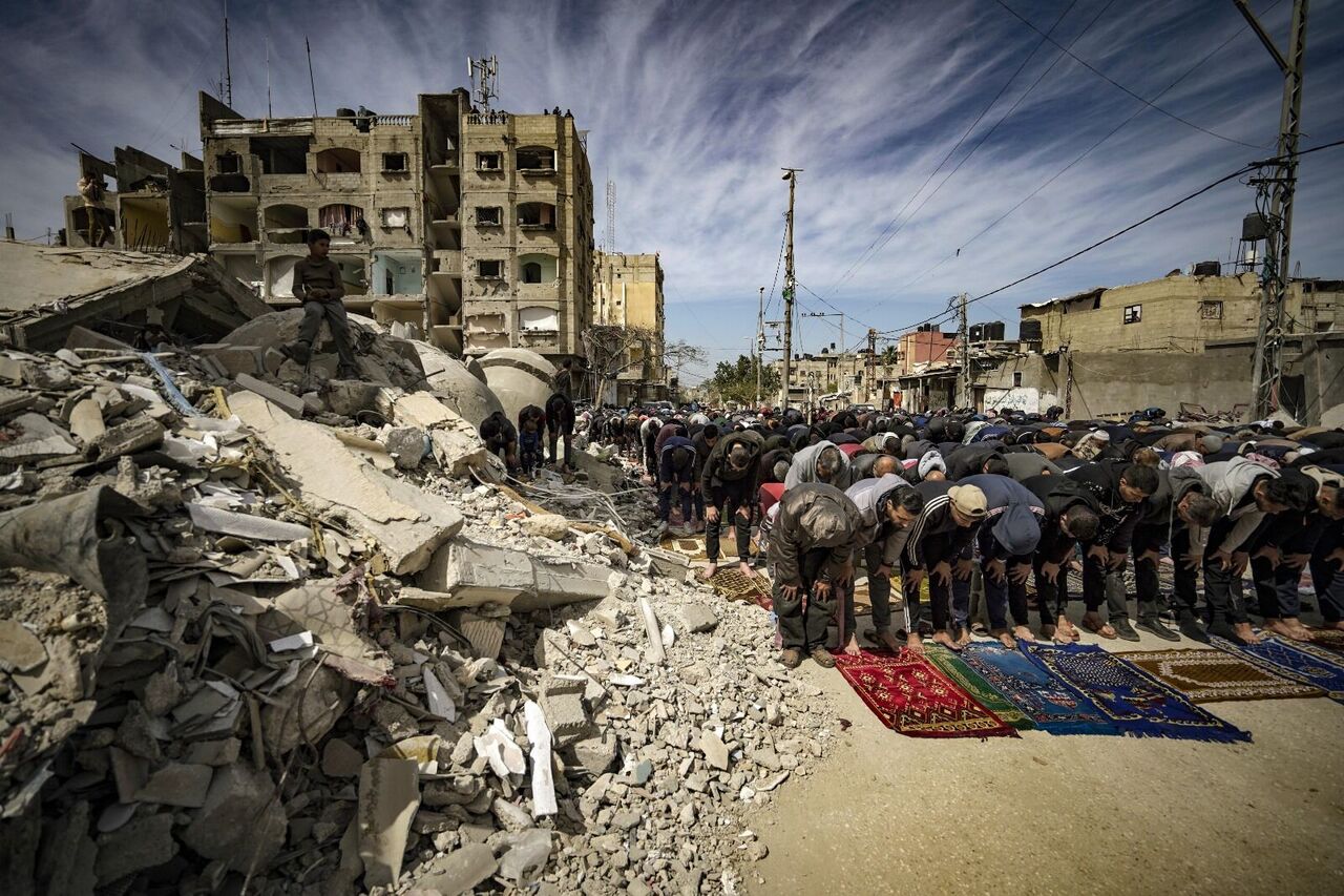 Gazze'nin Refah kentindeki Filistinliler, cuma namazını İsrail saldırısında yıkılan Faruk Camisi enkazında kıldı