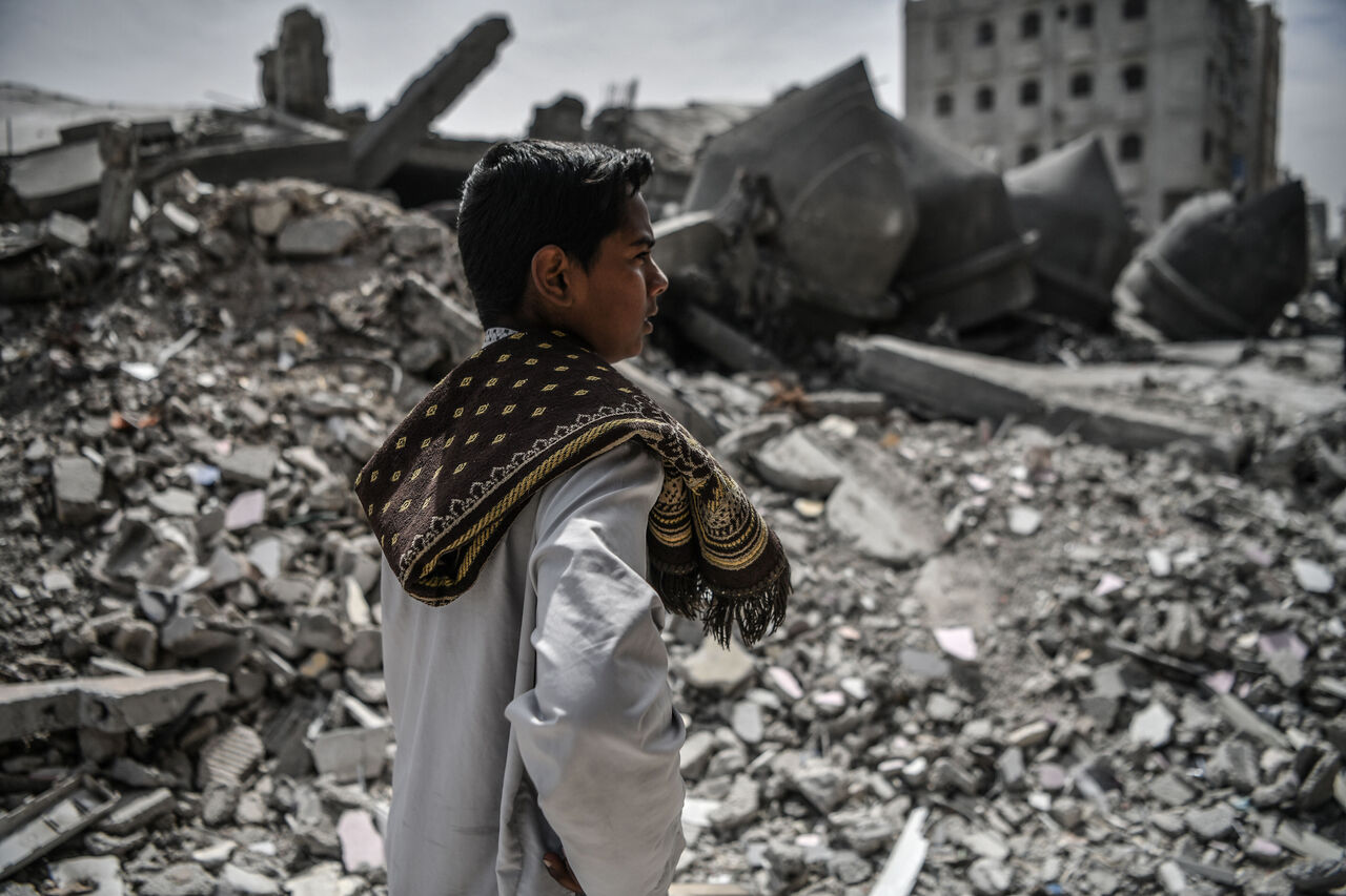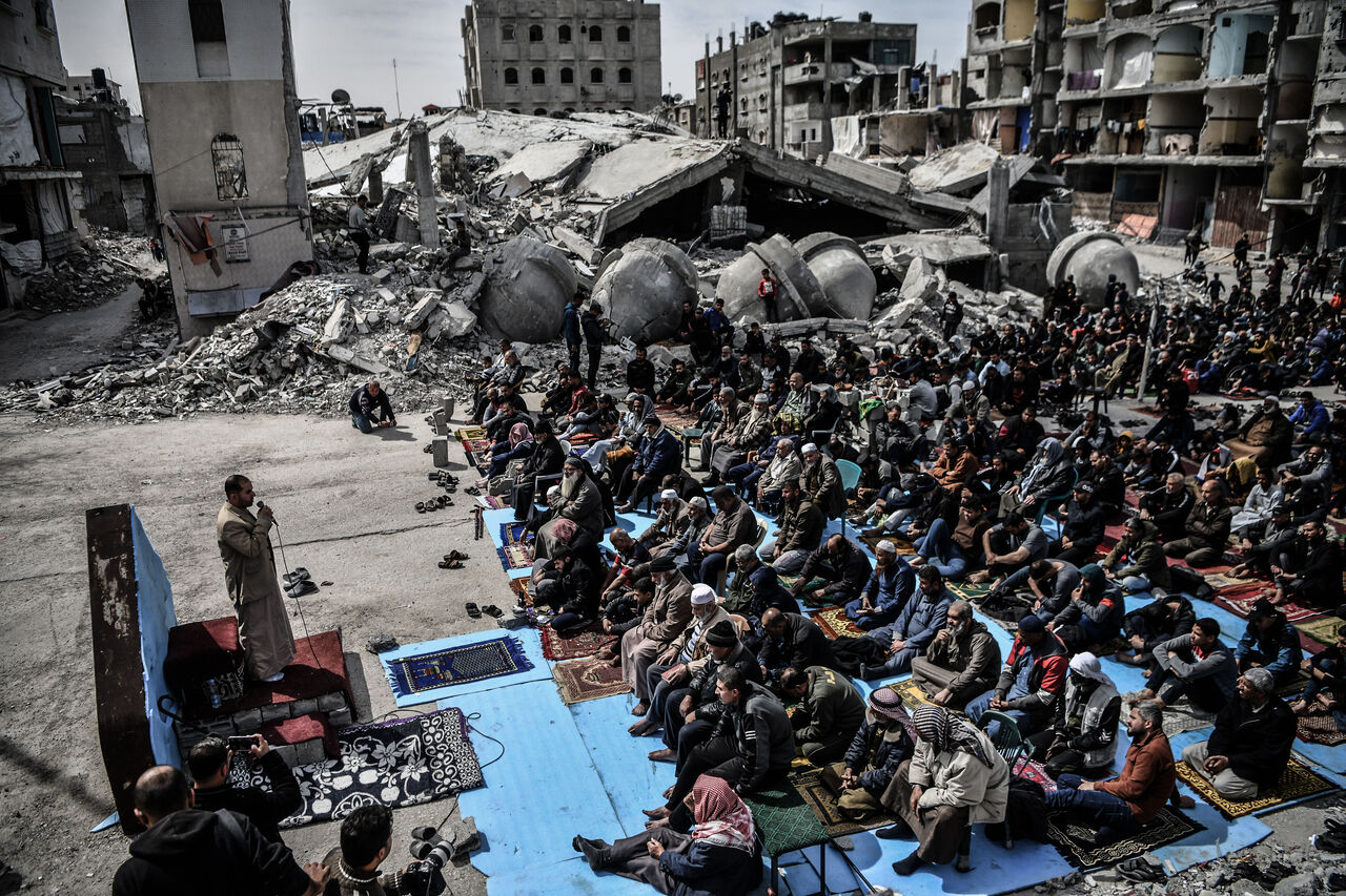 Filistinliler, cuma namazını İsrail saldırısında yıkılan caminin enkazında kıldı