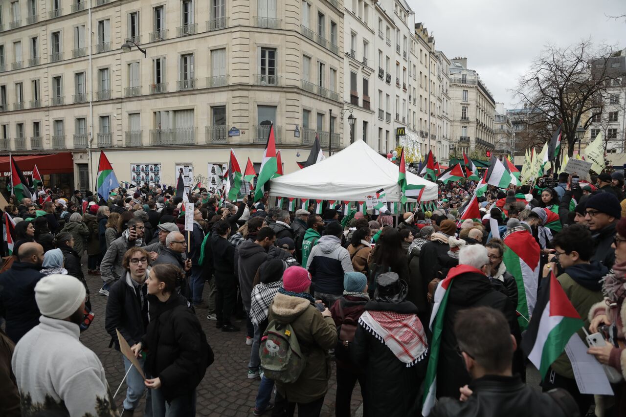 Paris'te bir araya gelen yüzlerce kişi destek gösterisi düzenledi. Ellerinde Filistin bayrakları taşıyan göstericiler destek sloganları attı.