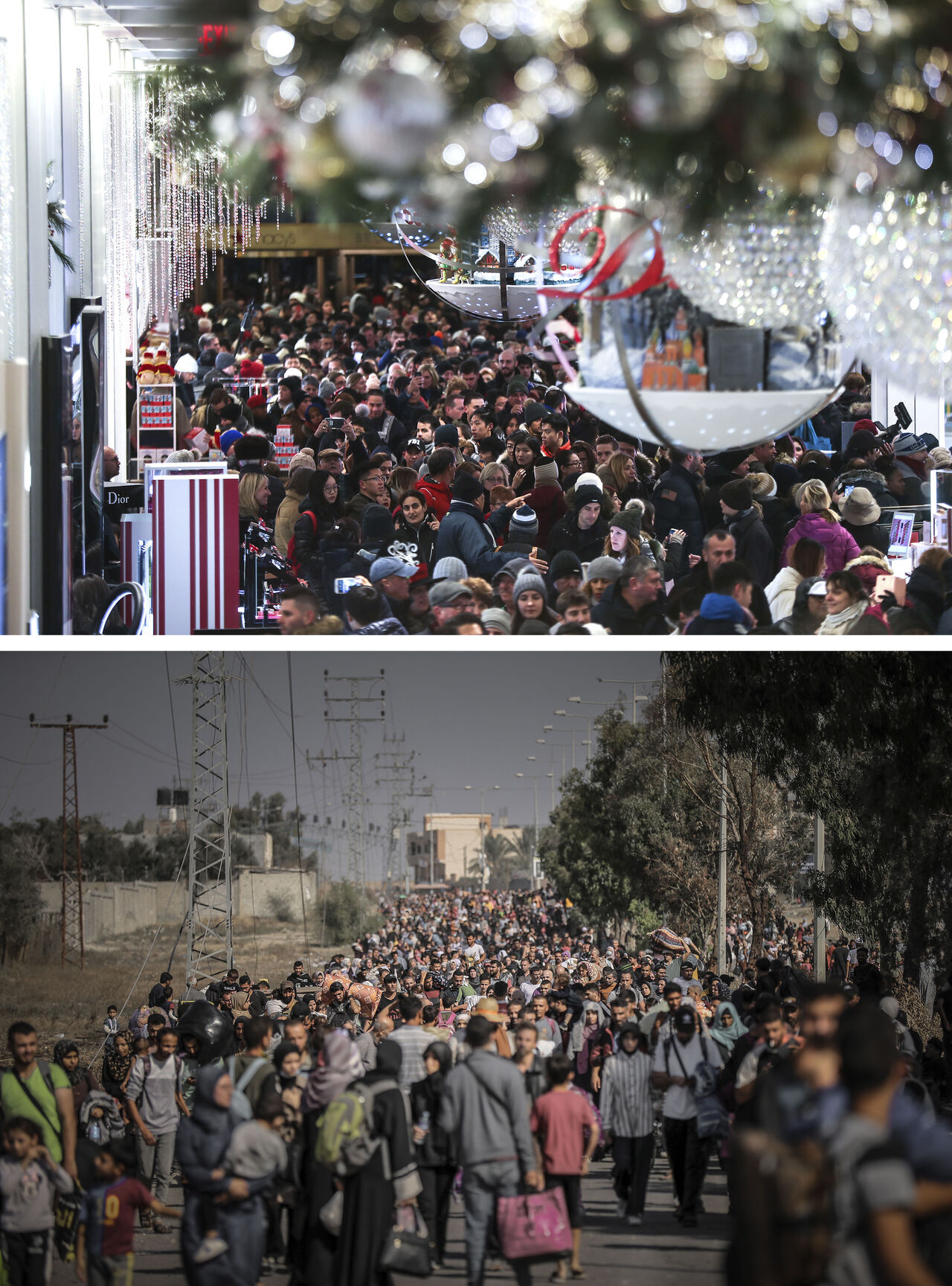 Başta Batı ülkeleri olmak üzere Dünya genelinde hayat normal akışında devam ederken, İsrail'in saldırılarının sürdüğü Gazze'deki yıkım ve insanların yaşadığı dram, bir ikilem olarak fotoğraf karelerine yansıyor.