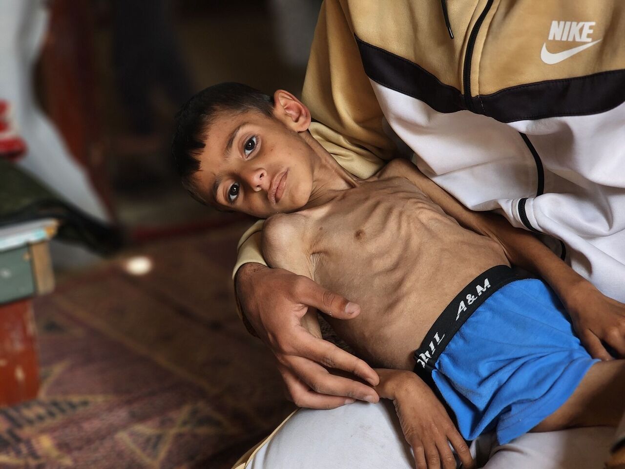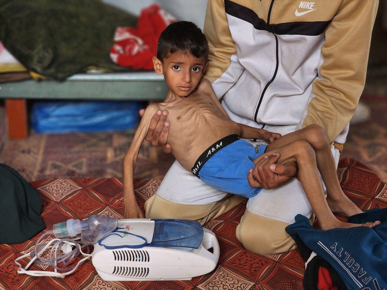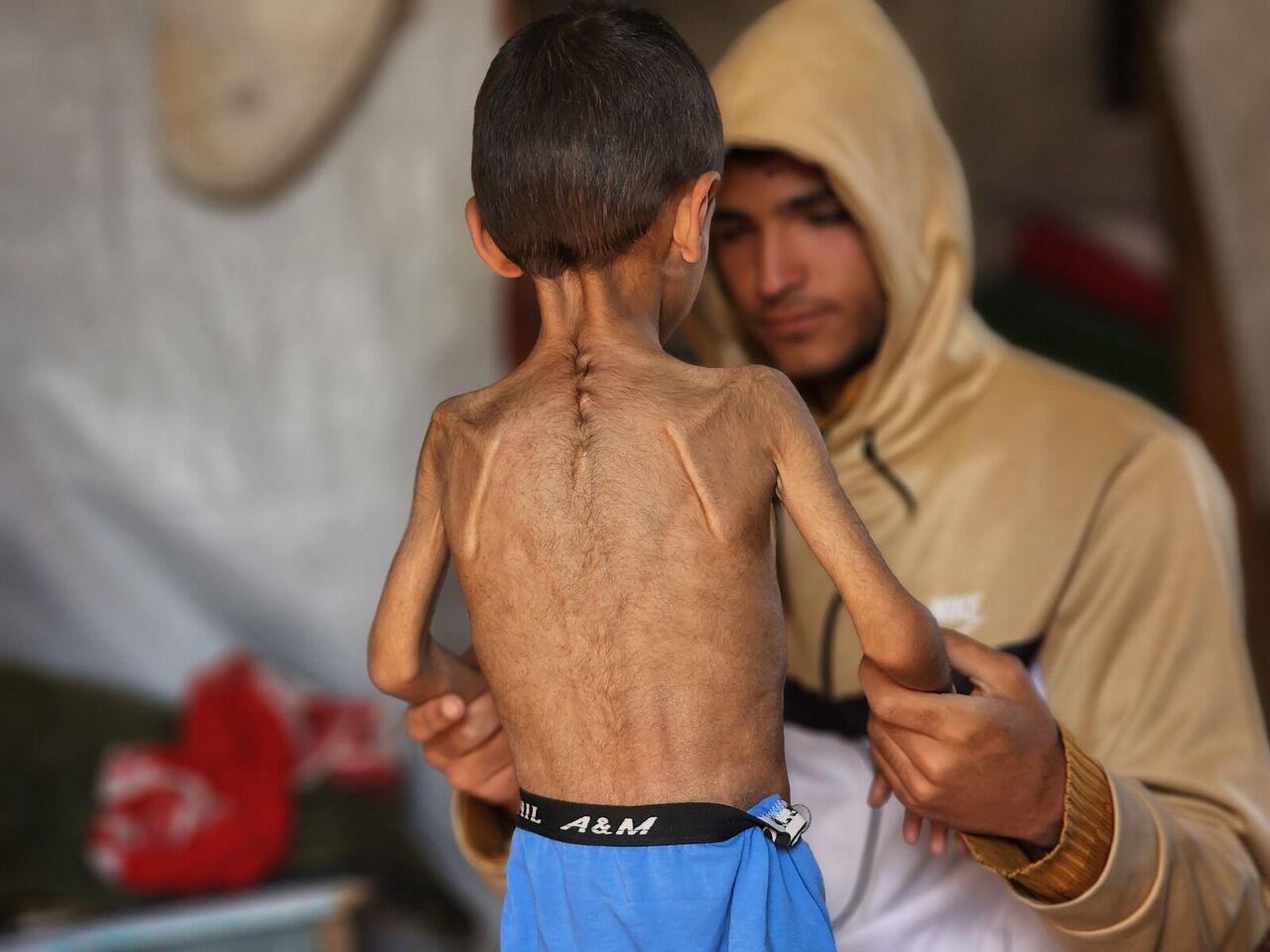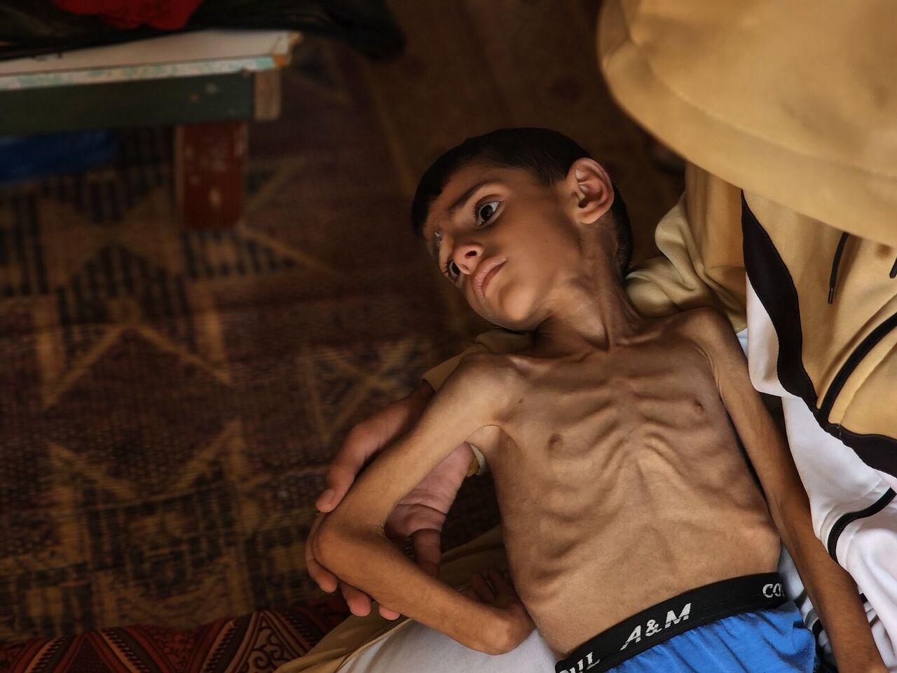Osama Kamal El Rakab adli Filistinli çocuk, yetersiz beslenmeye bağlı vücut zayıflığı sorunlarıyla Gazze kentinin güneyinde yer alan Han Yunus kentinin doğusundaki Beni Suheyl beldesinde yaşam mücadelesi veriyor.