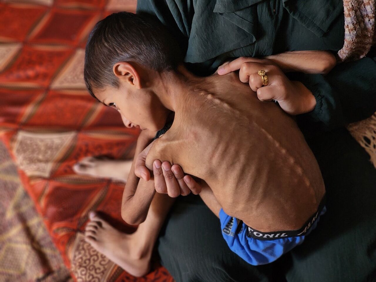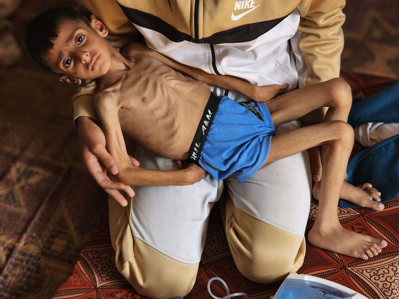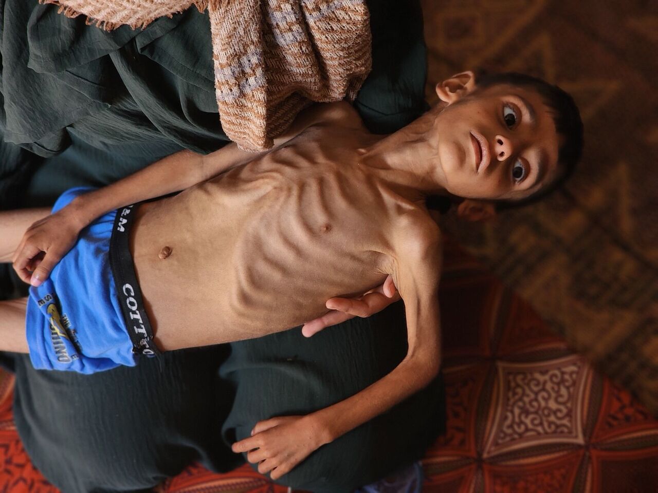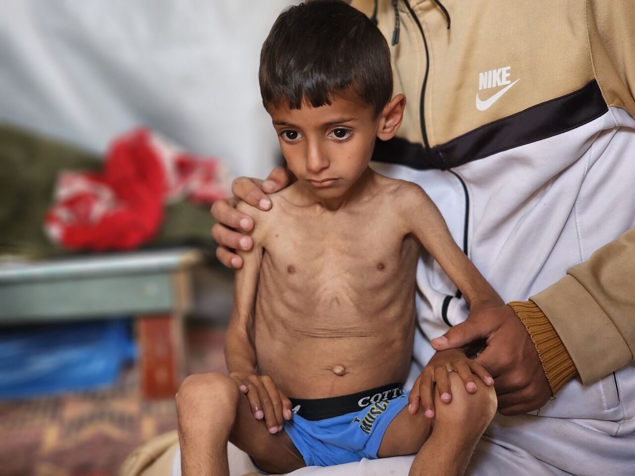 Osama Kamal El Rakab adli Filistinli çocuk, yetersiz beslenmeye bağlı vücut zayıflığı sorunlarıyla Gazze kentinin güneyinde yer alan Han Yunus kentinin doğusundaki Beni Suheyl beldesinde yaşam mücadelesi veriyor.