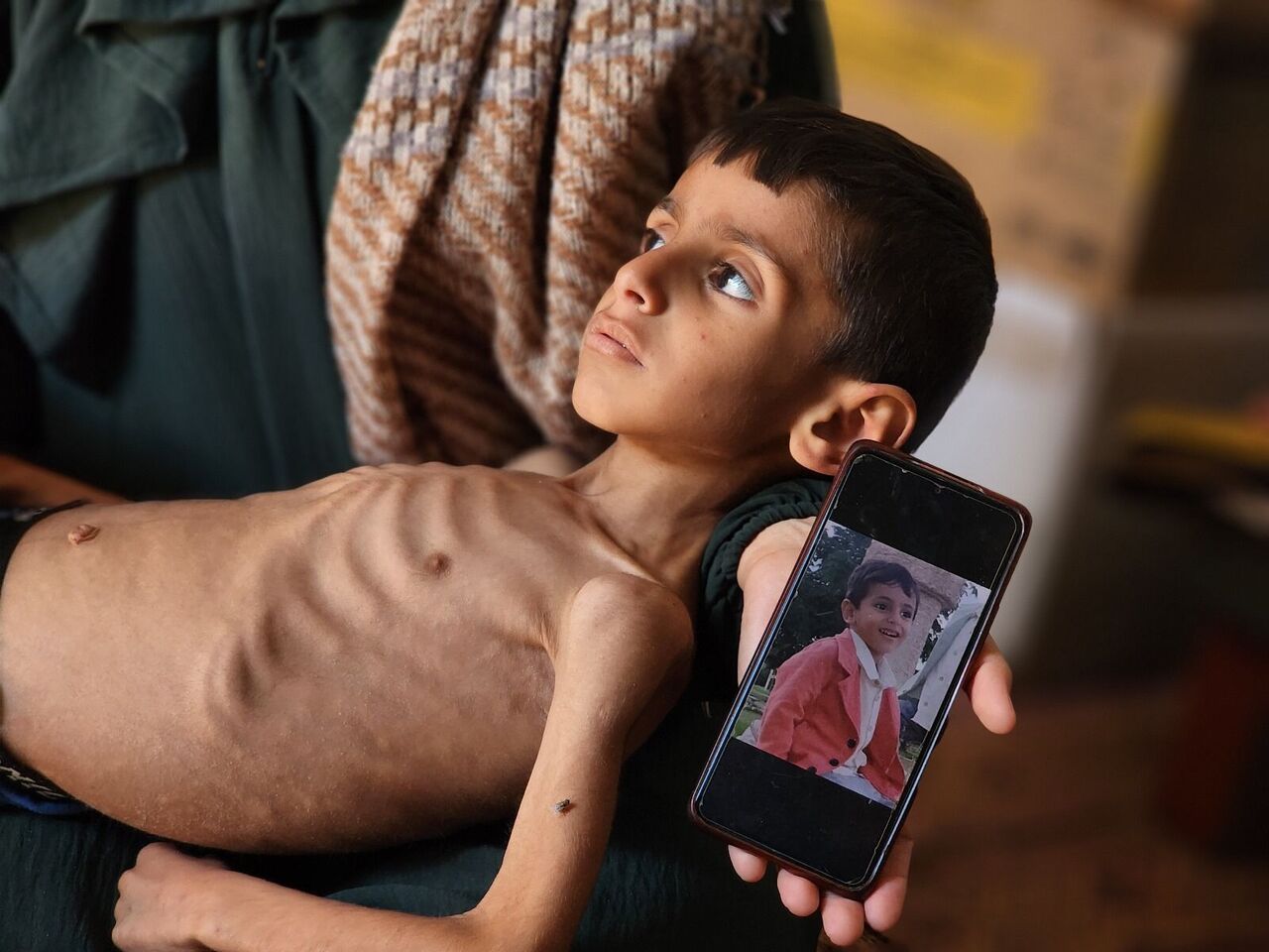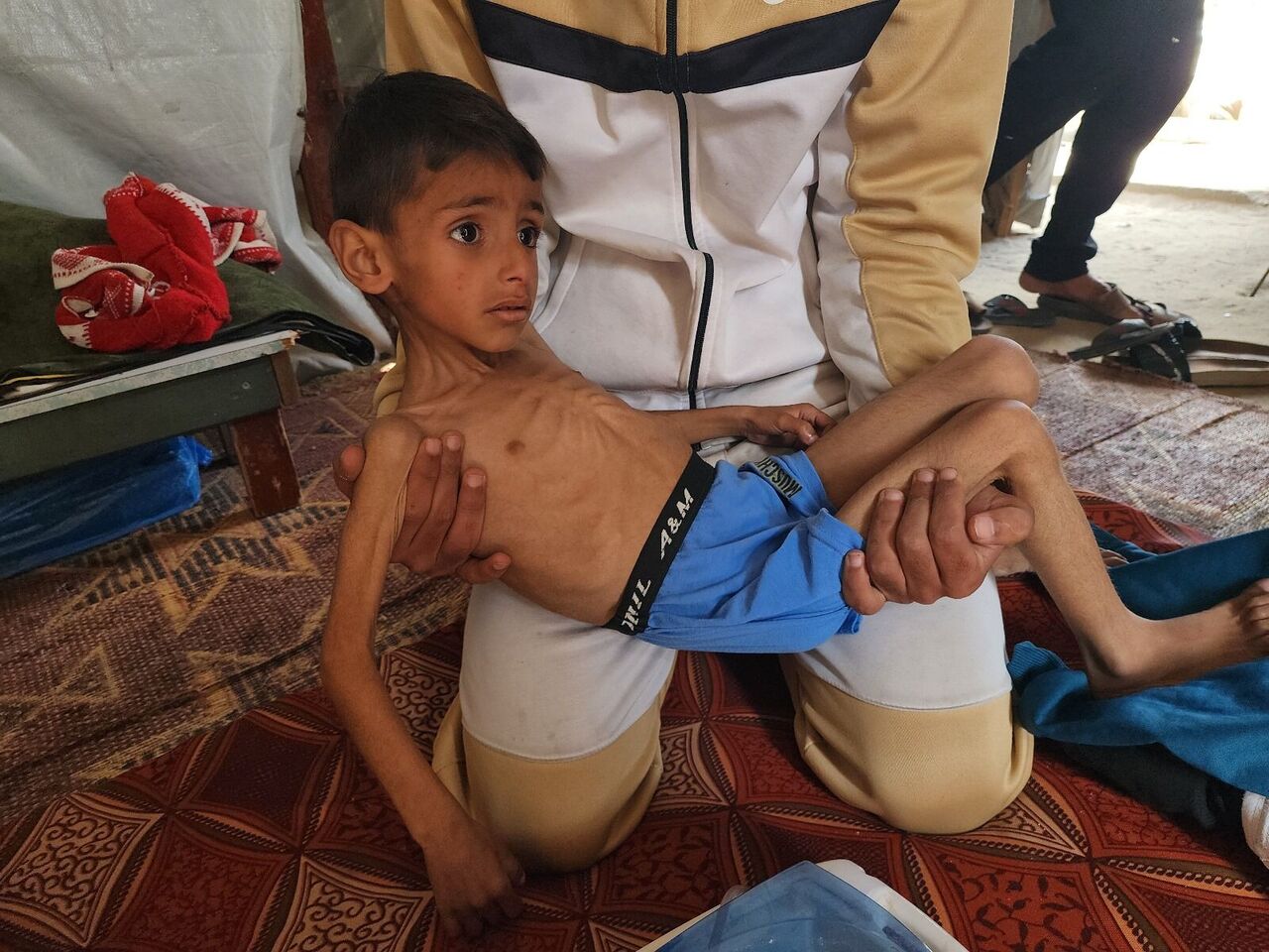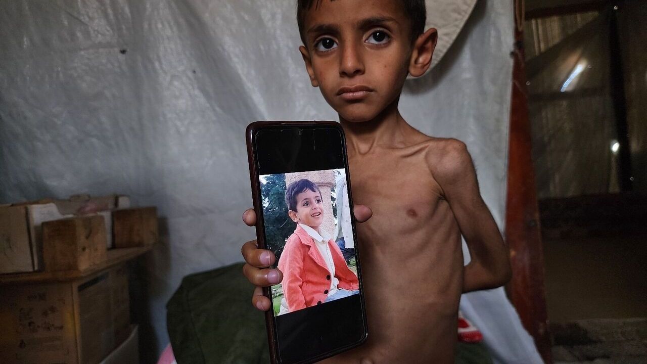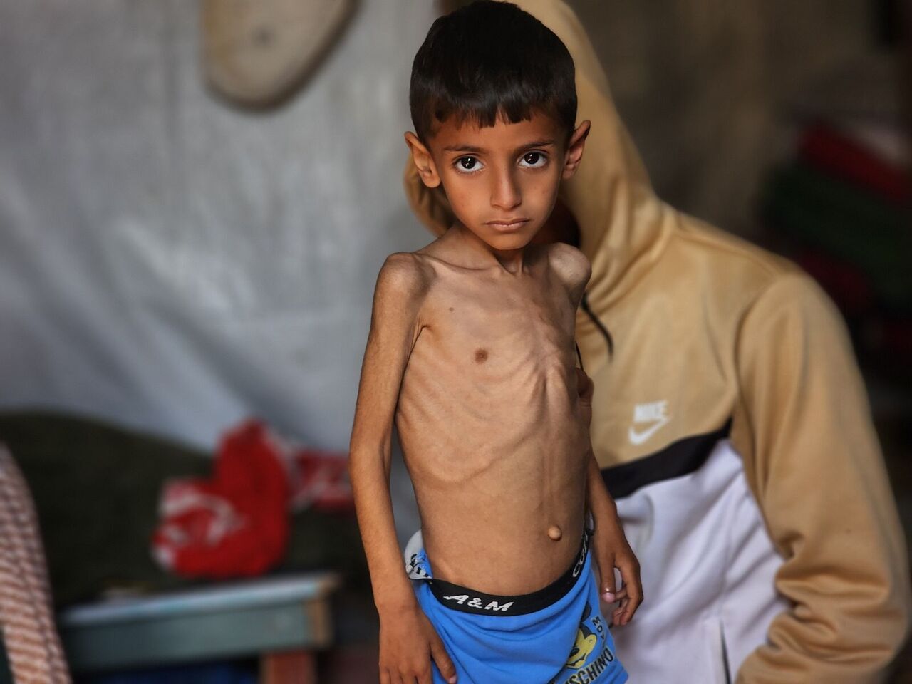 Osama Kamal El Rakab adli Filistinli çocuk, yetersiz beslenmeye bağlı vücut zayıflığı sorunlarıyla Gazze kentinin güneyinde yer alan Han Yunus kentinin doğusundaki Beni Suheyl beldesinde yaşam mücadelesi veriyor.