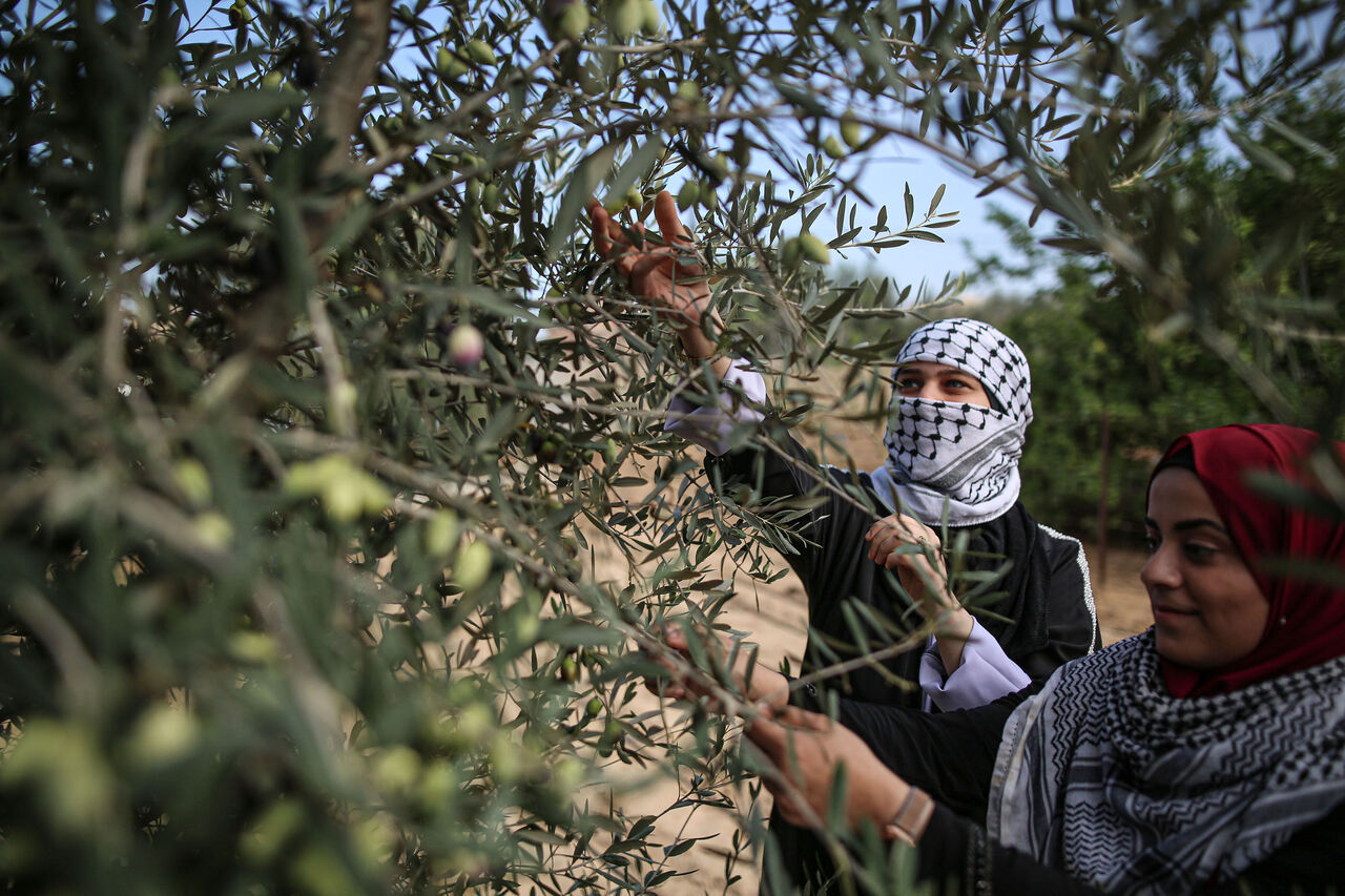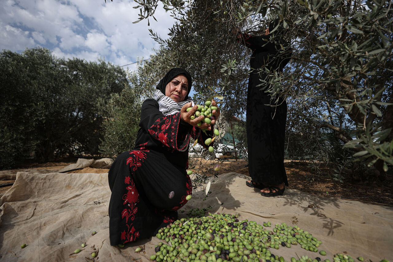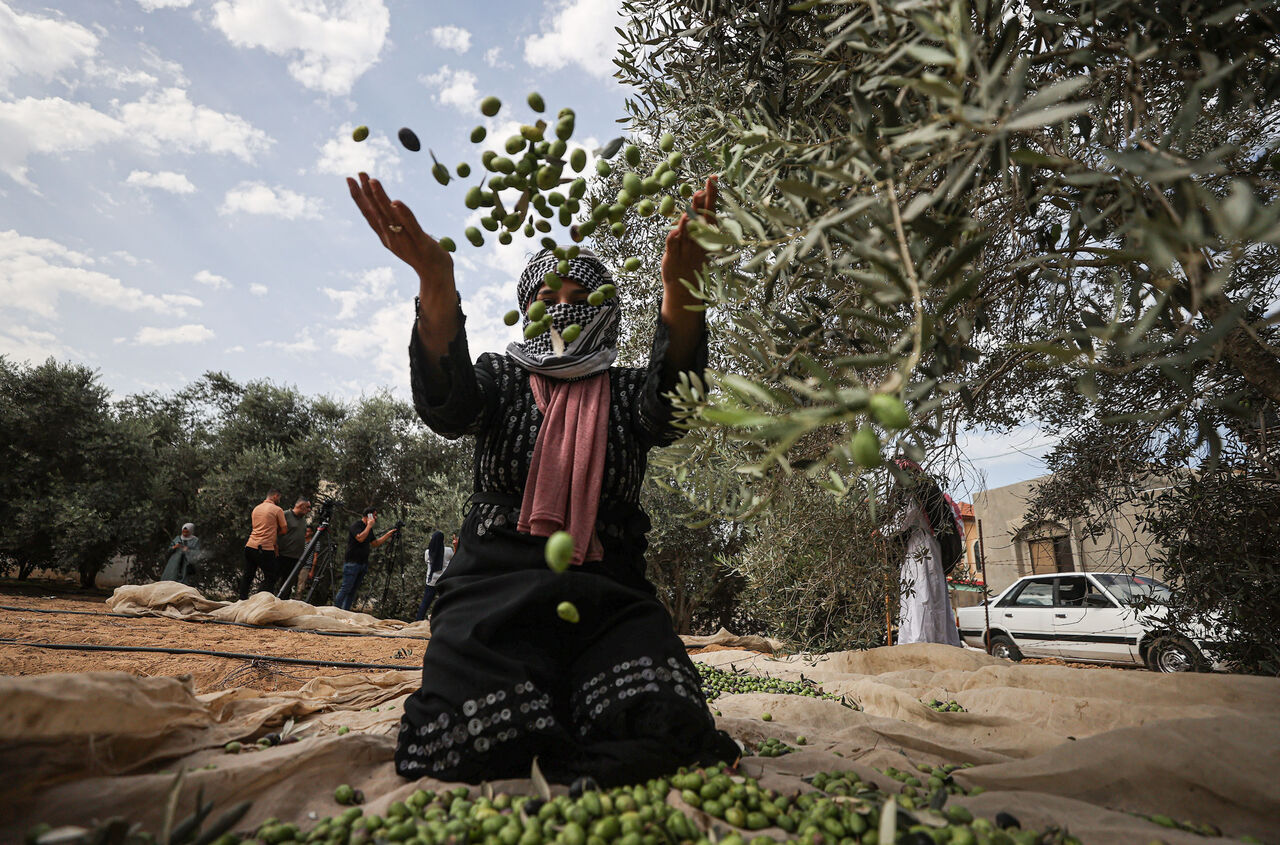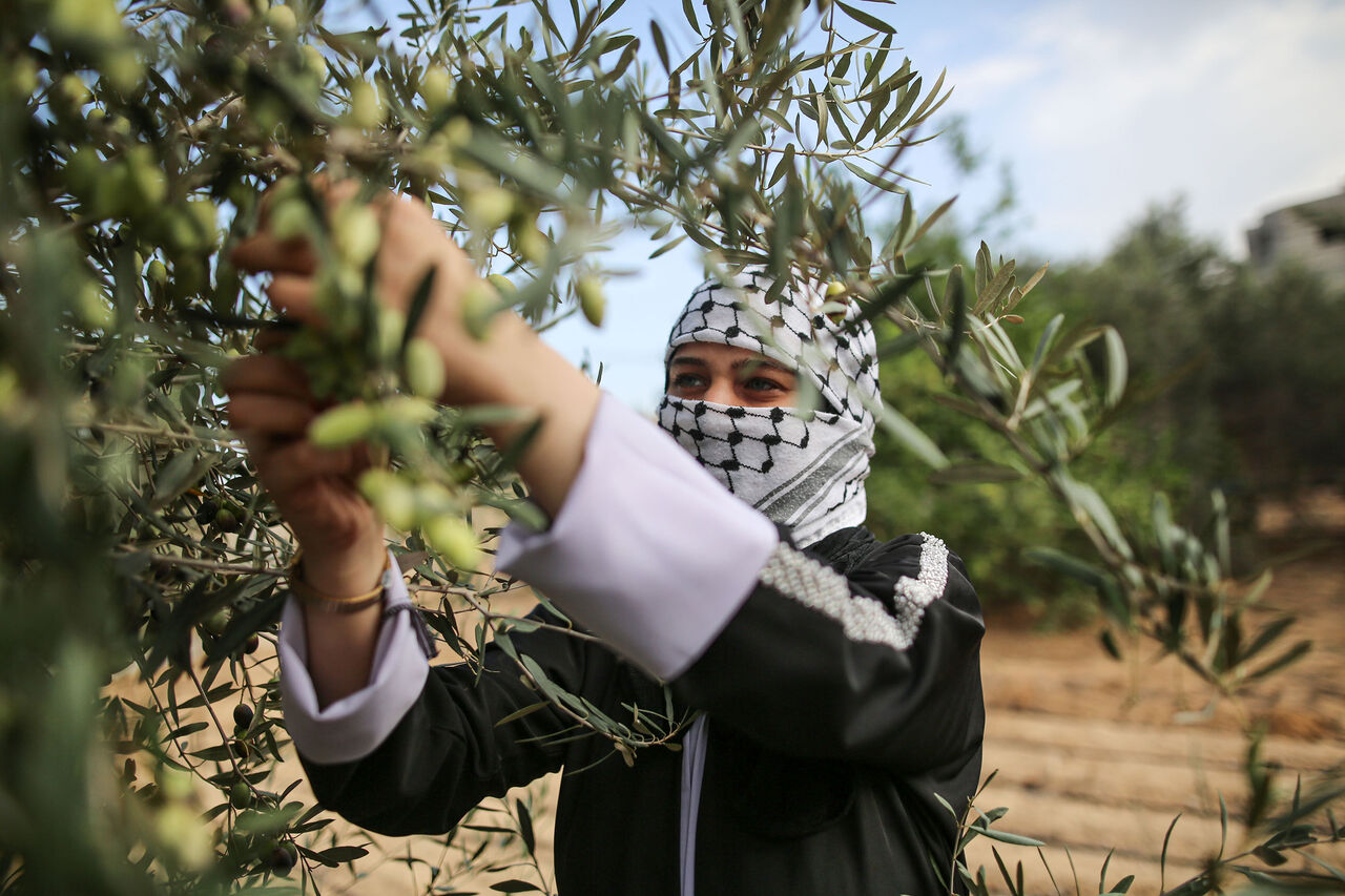 Gazze Şeridi'nde zeytin hasadının başlamasıyla Han Yunus kentindeki Filistinliler, mahsullerini topladı.