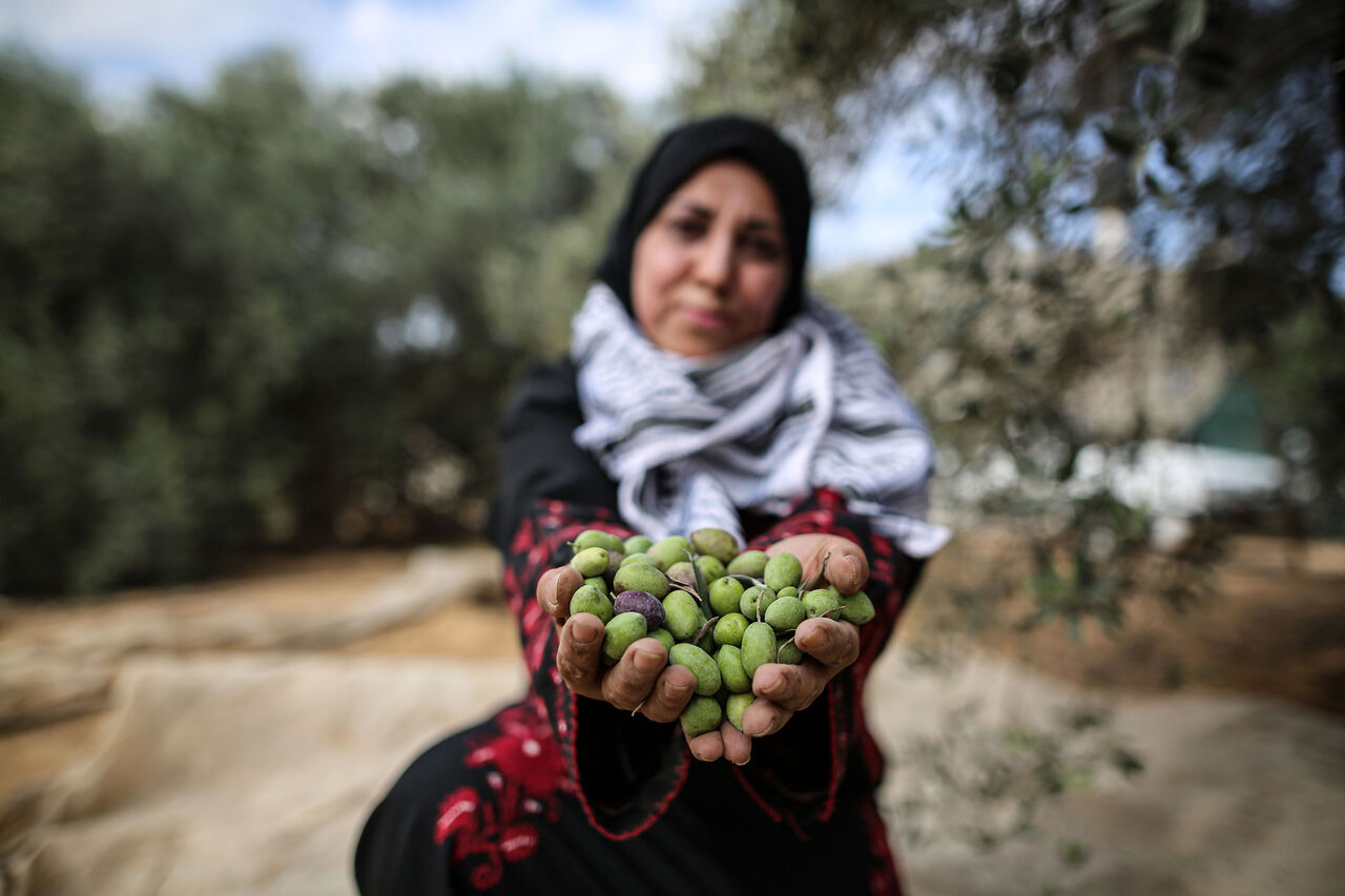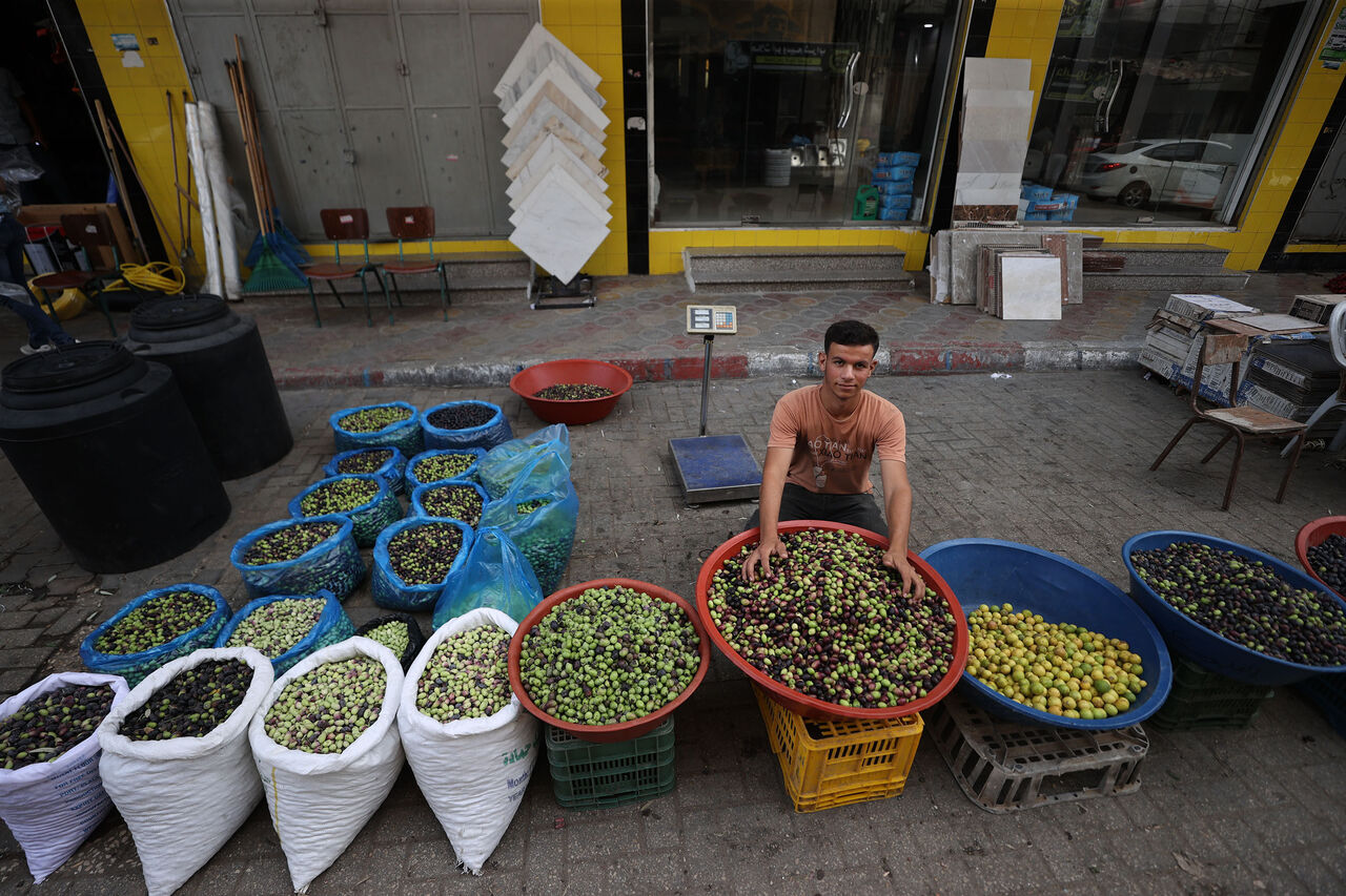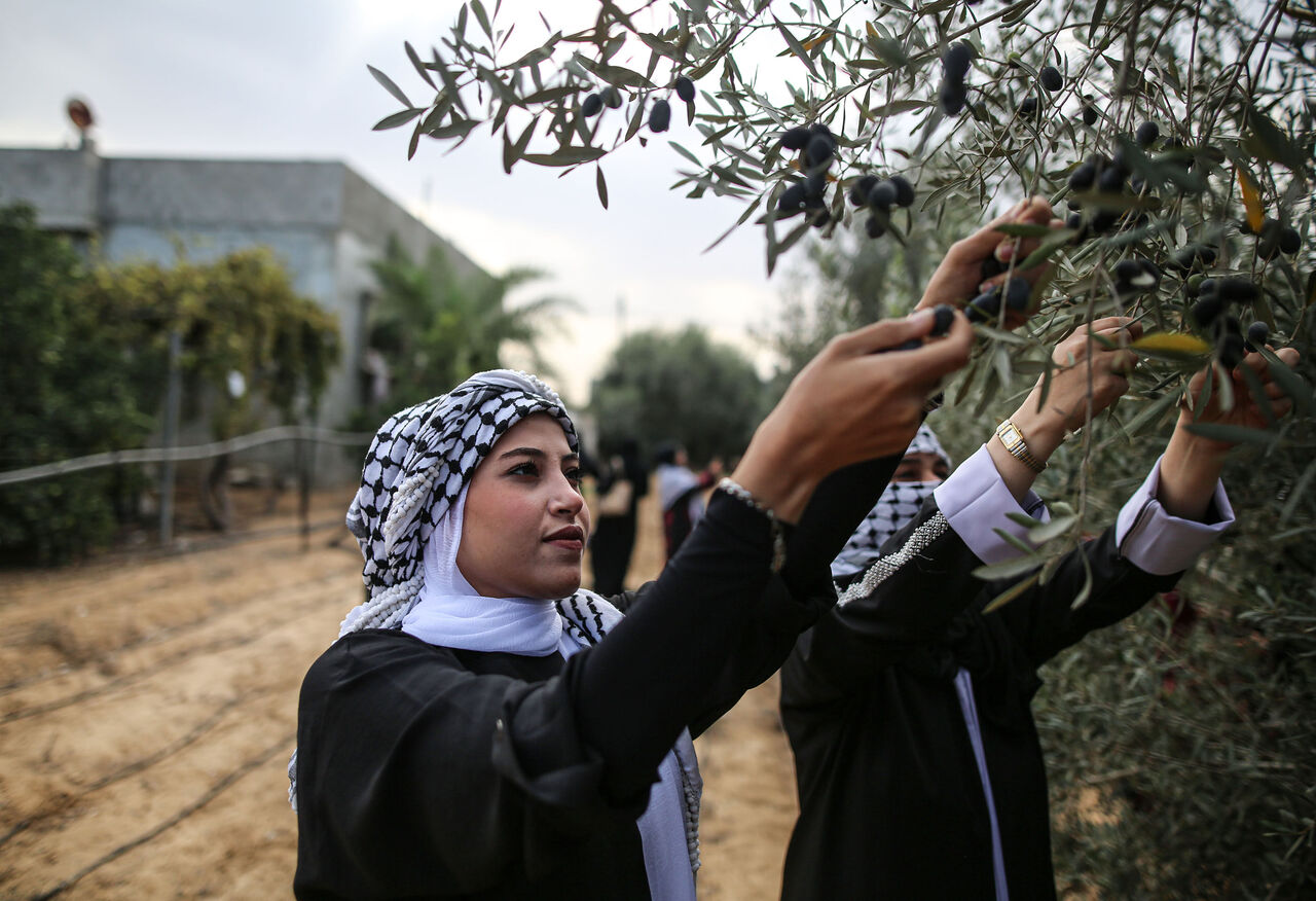 Gazze Şeridi'nde zeytin hasadının başlamasıyla Han Yunus kentindeki Filistinliler, mahsullerini topladı.