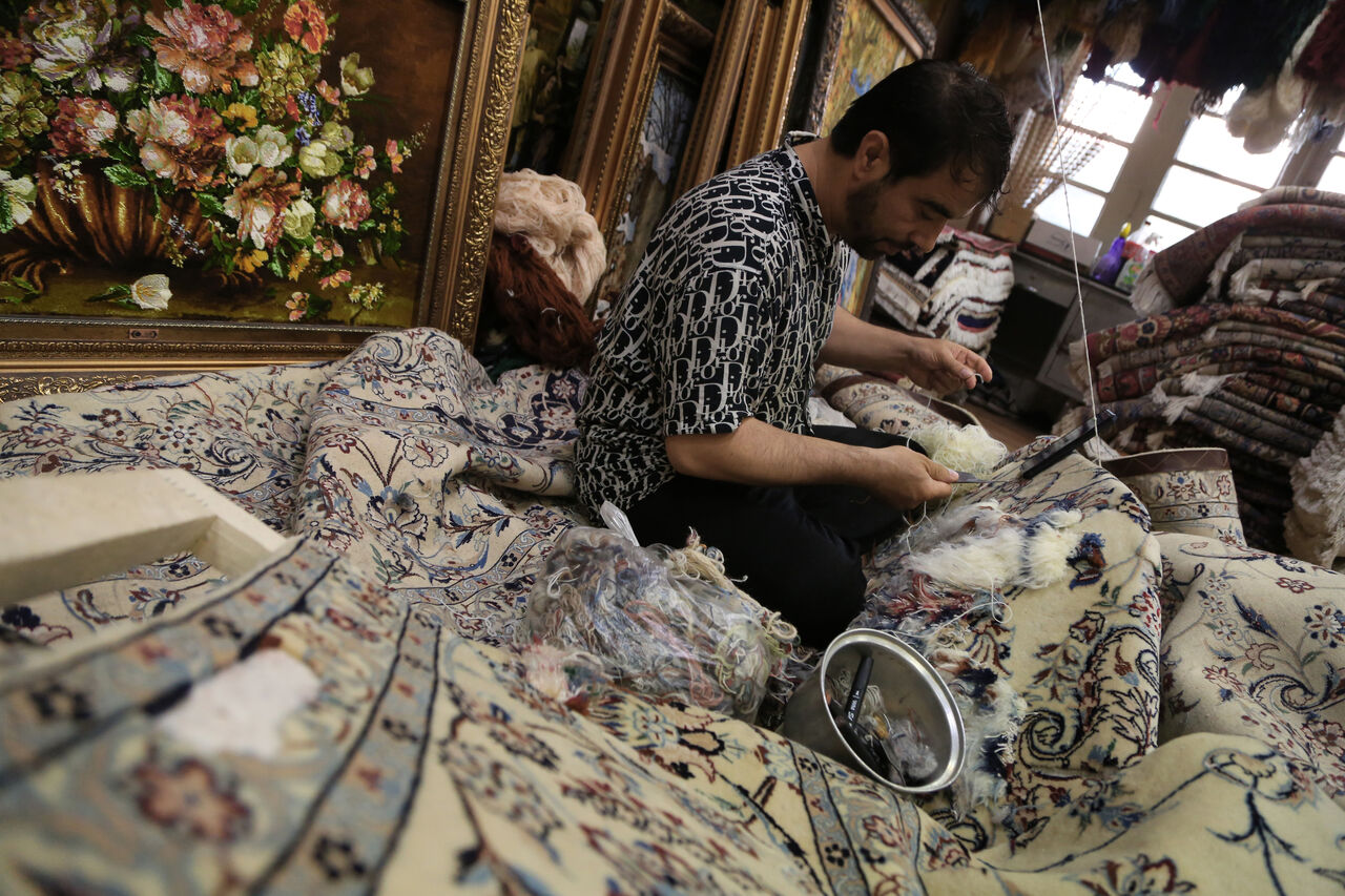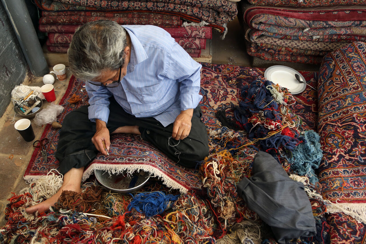 Başkent Tahran’daki Büyük Çarşı’nın labirentimsi arka sokaklarında bulunan iş hanlarında yer bulabilen halı tamircileri ise hem ekonomik kaybın önüne geçiyor hem bir hatıranın ömrüne ömür katıyor.