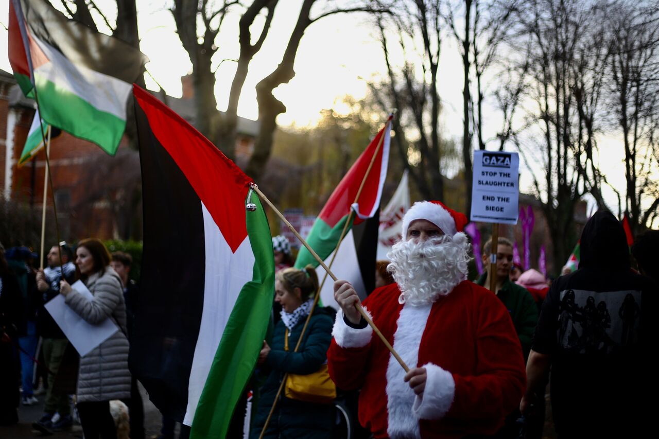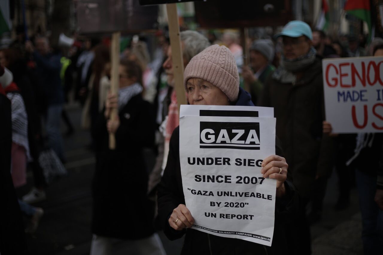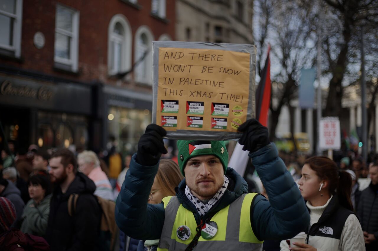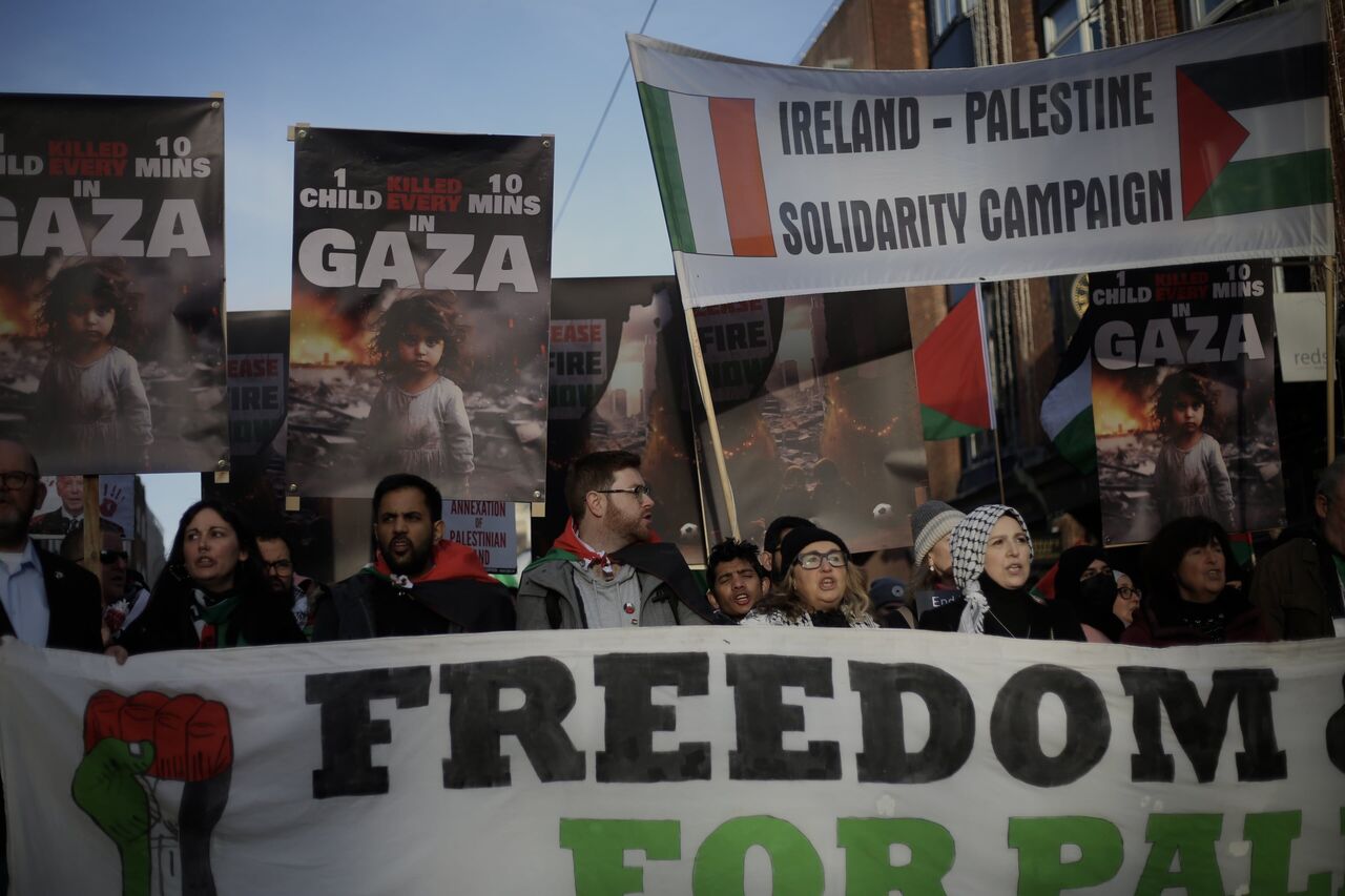 İrlanda'nın başkenti Dublin'de bir arayan gelen göstericiler, İsrail'in Gazze'ye yönelik saldırılarını protesto ederek Filistinliler için destek gösterisi düzenledi. Kent merkezinden ABD büyükelçilik binasına yürüyüş düzenleyen göstericiler ateşkes çağrısında bulundu.