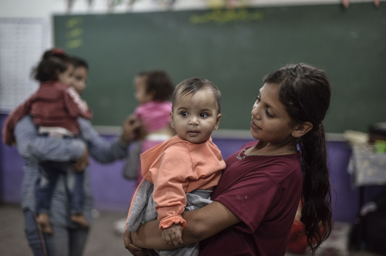 İsrail ordusunun saldırılardan kaçarak Gazze Şeridi'nin Han Yunus kentindeki Birleşmiş Milletler Filistinli Mültecilere Yardım Ajansı'na (UNRWA) bağlı bir okula sığınan Filistinliler, zor şartlar altında hayatlarını sürdürüyor. Sığınacak güvenli bir yer arayan Filistinli ailelerin okuldaki sayıları gittikçe artıyor.