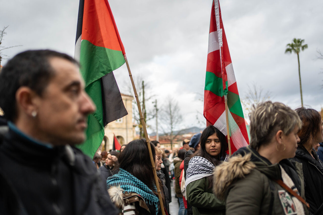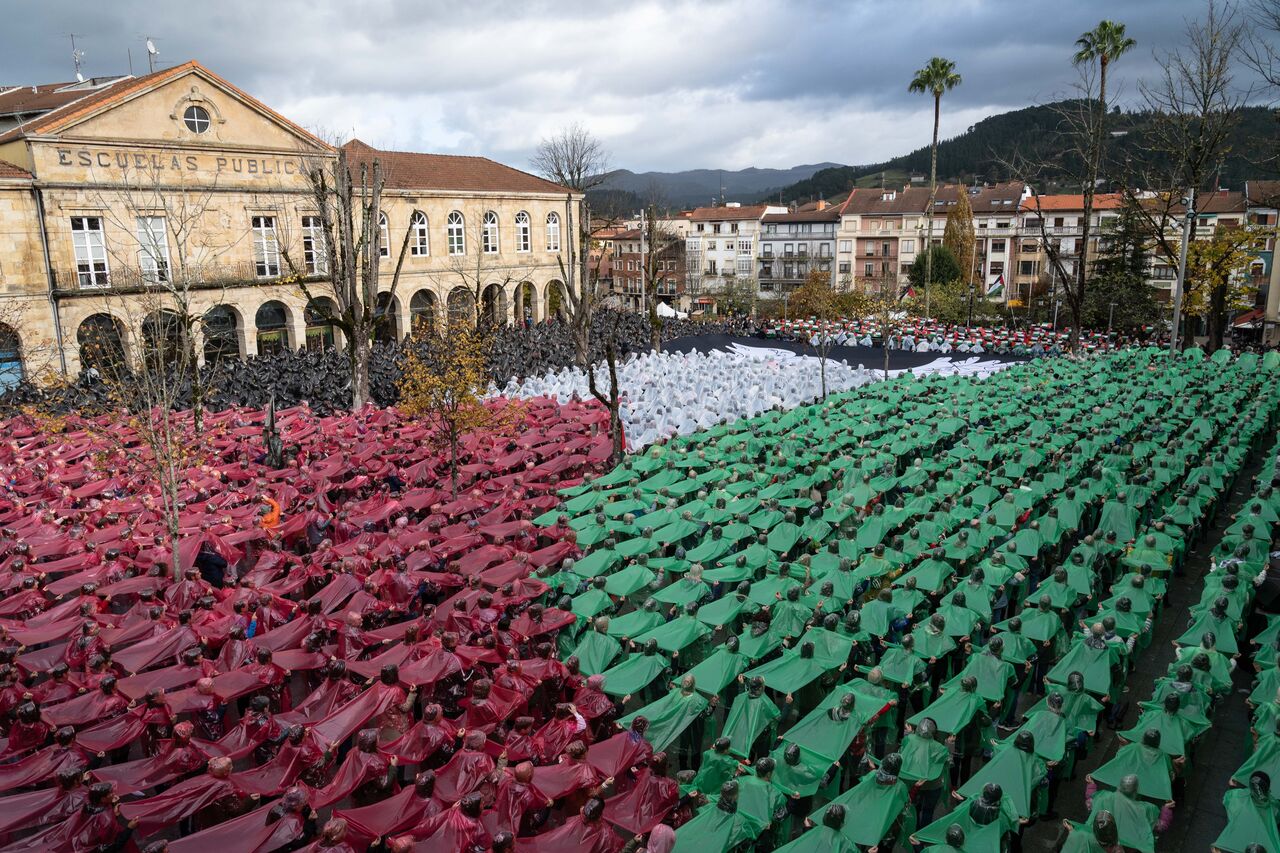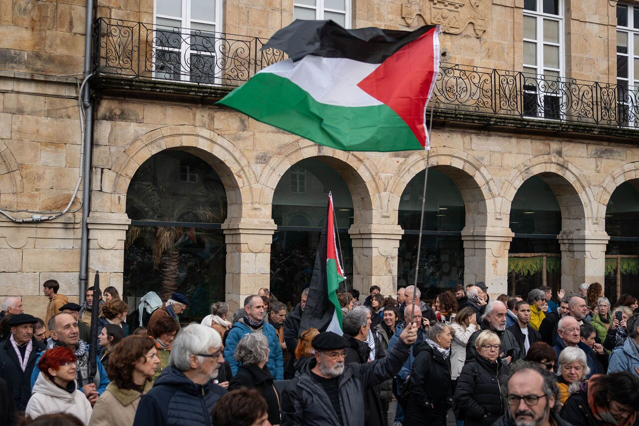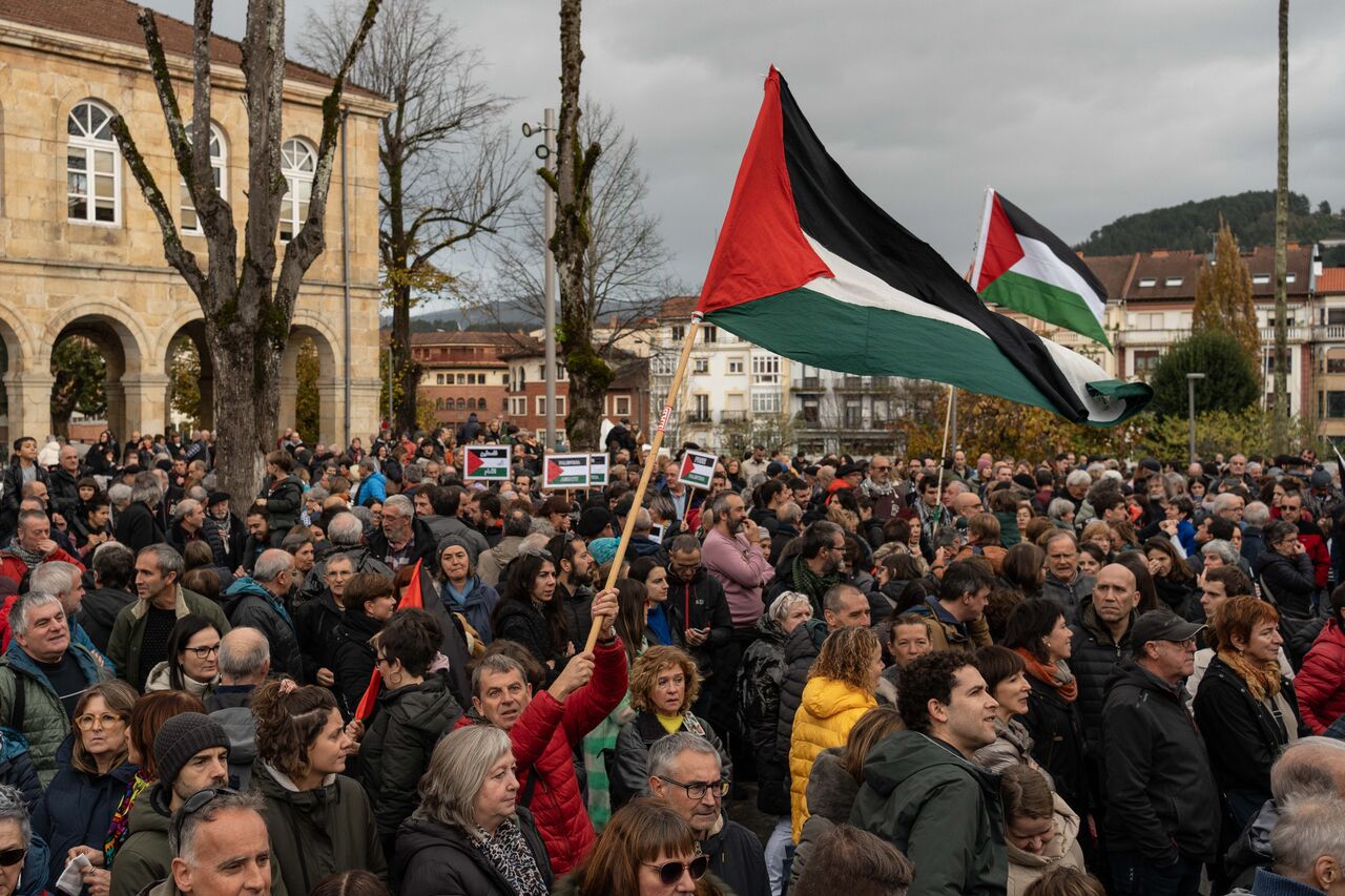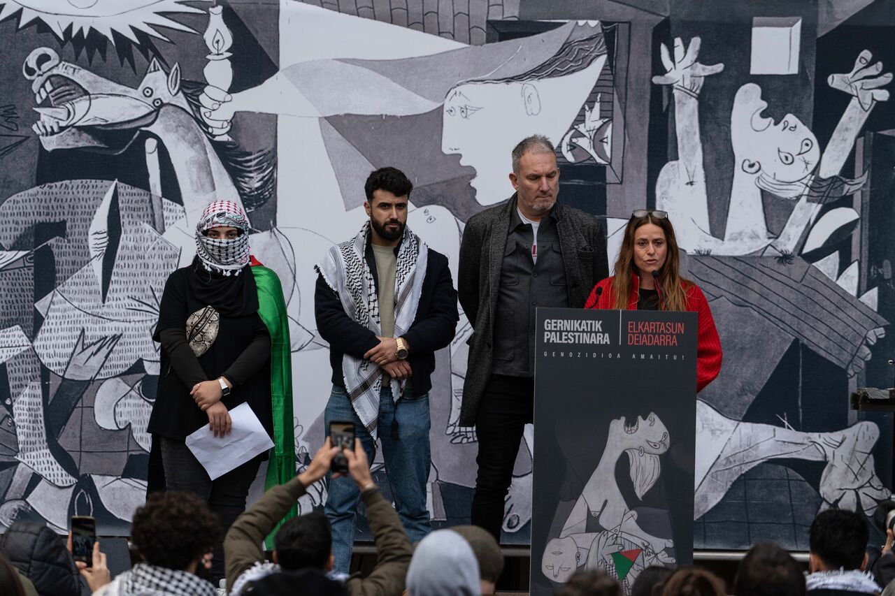 İspanya İç Savaşı sırasında pek çok sivilin ölümüne sebep olan bombardımanın gerçekleştiği Guernica kasabasında toplanan yüzlerce vatandaş Filistin'e destek vermek amacıyla bir araya gelerek Filistin bayrağı figürü oluşturdu. Filistin'e desteklerini gösteren göstericiler İsrail'in Gazze'ye saldırılarını protesto etti.