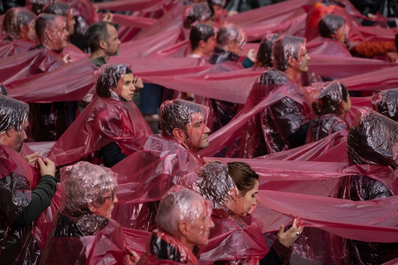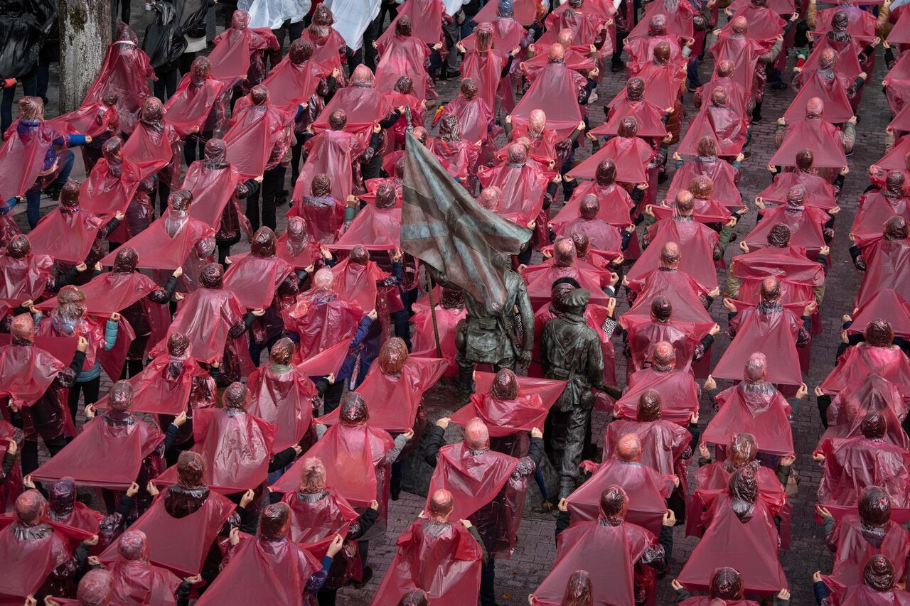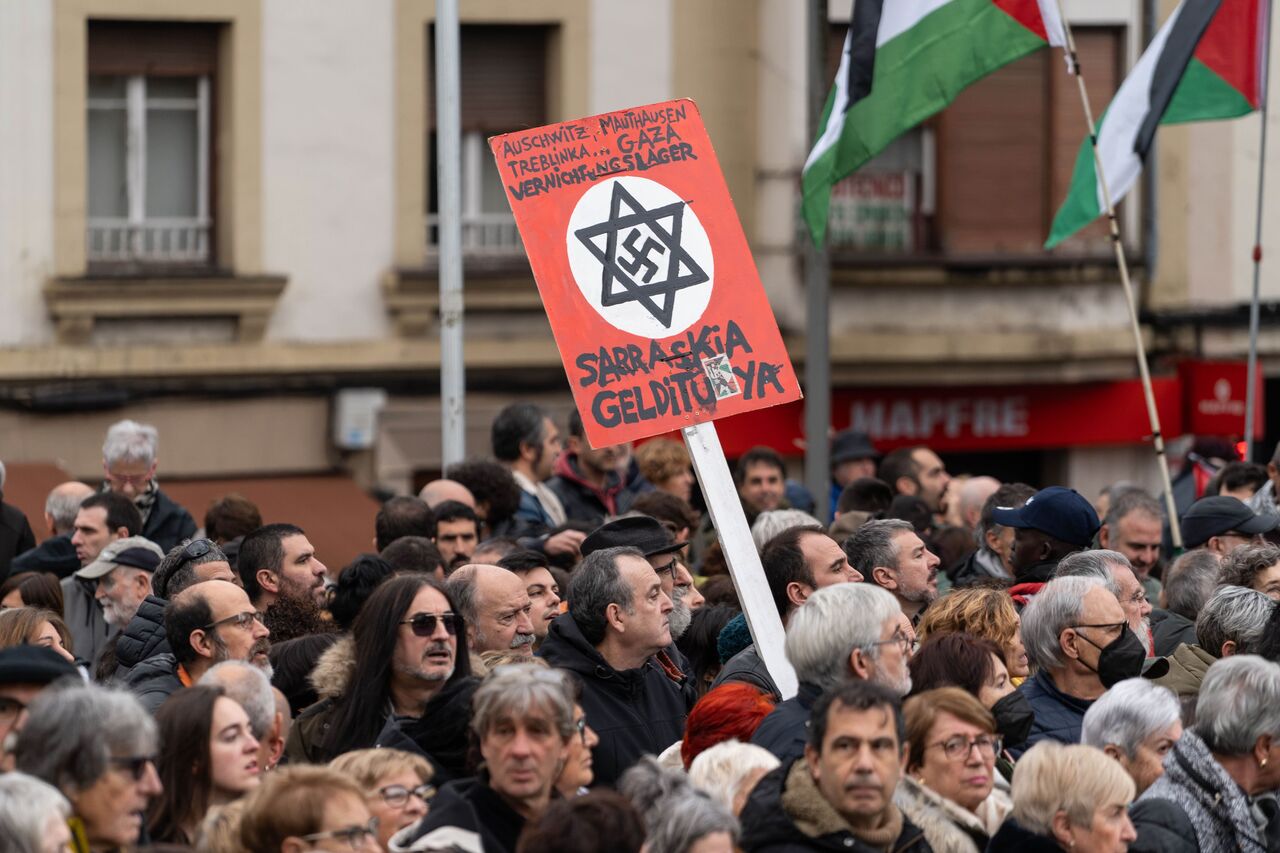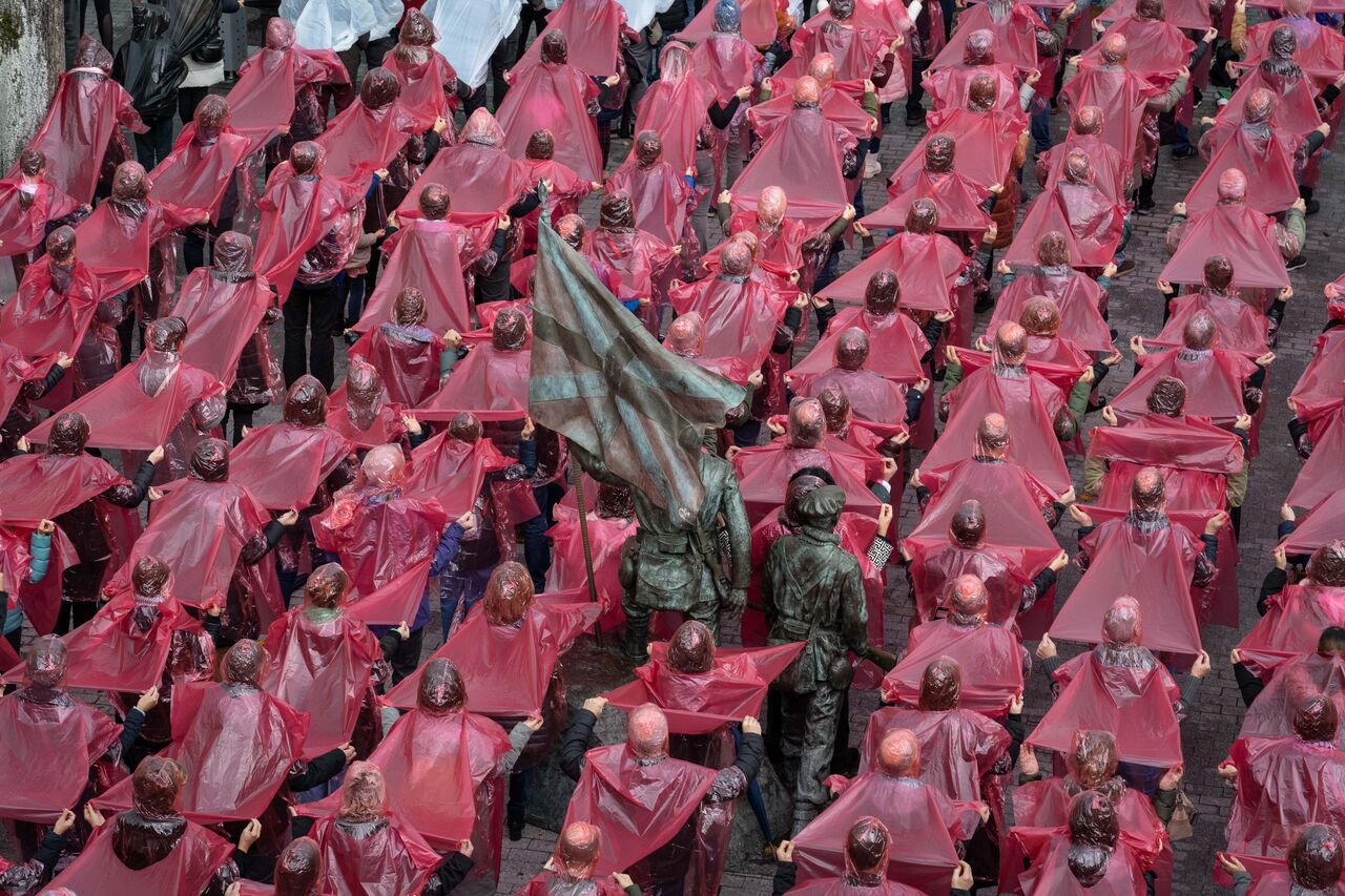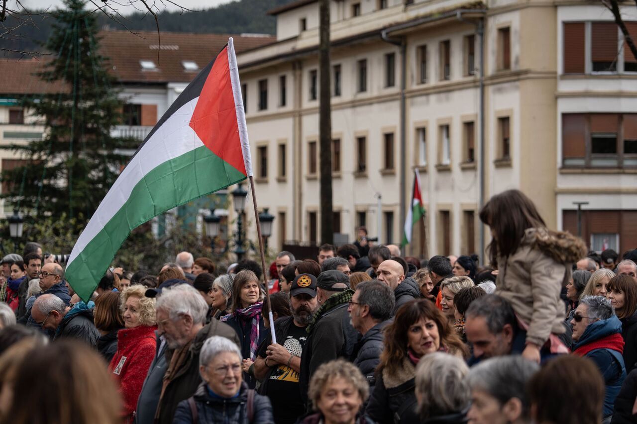 İspanya İç Savaşı sırasında pek çok sivilin ölümüne sebep olan bombardımanın gerçekleştiği Guernica kasabasında toplanan yüzlerce vatandaş Filistin'e destek vermek amacıyla bir araya gelerek Filistin bayrağı figürü oluşturdu. Filistin'e desteklerini gösteren göstericiler İsrail'in Gazze'ye saldırılarını protesto etti.