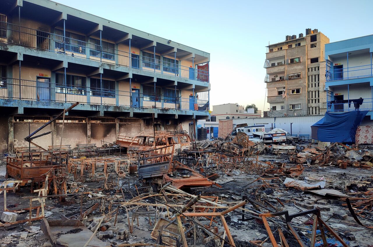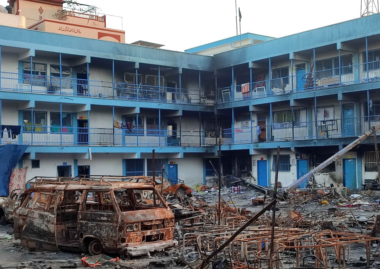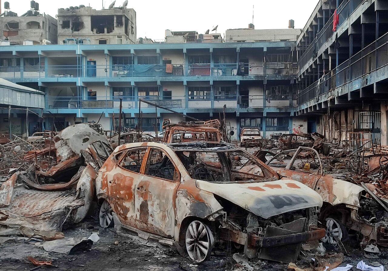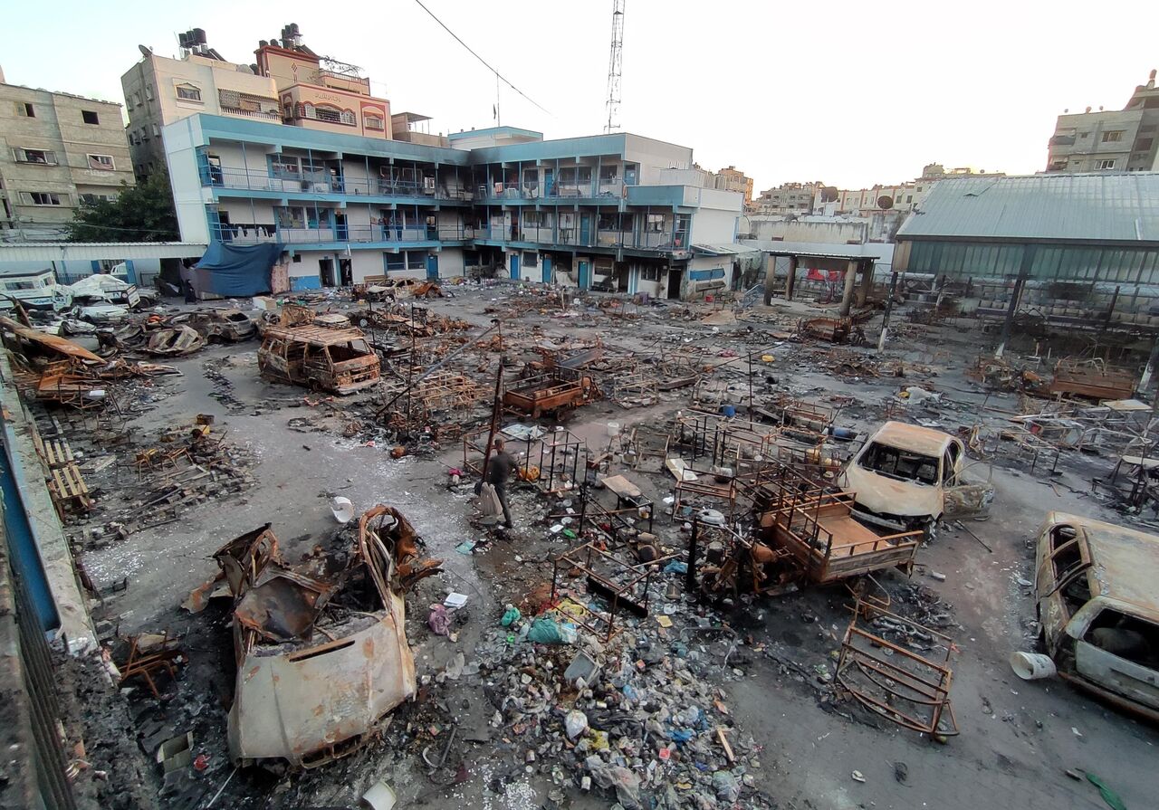İsrail askerlerinin abluka altındaki Gazze Şeridi'nin kuzeyinde bulunan Beyt Lahiya'daki Halife Bin Zayed Okulu'na düzenlediği baskın sonucu oluşan yıkım görüntülendi.