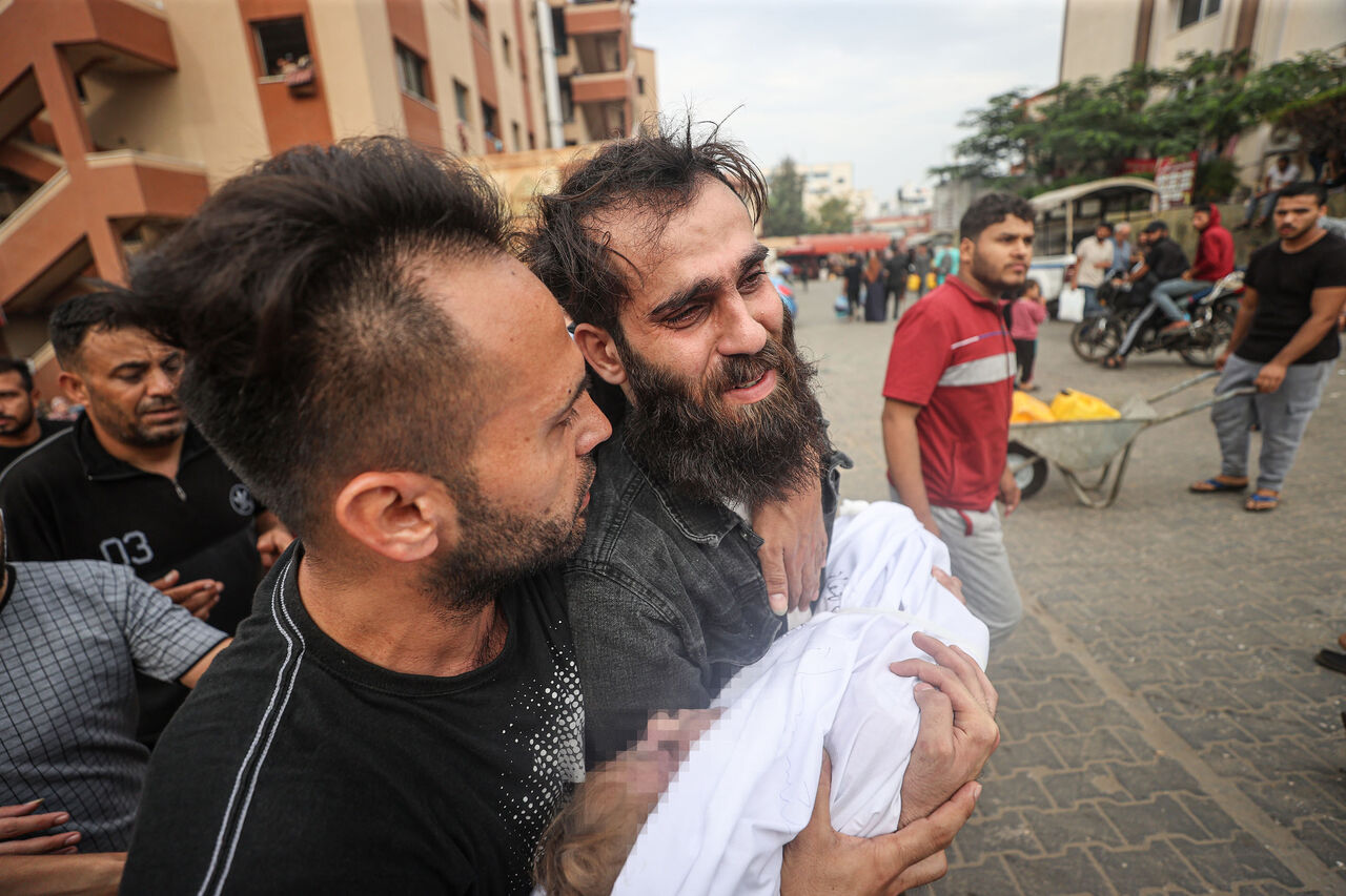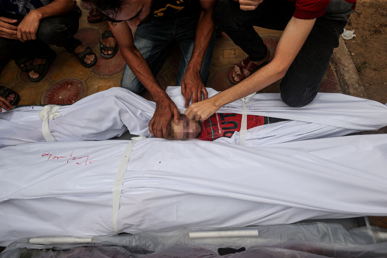 Saldırılarda hayatını kaybedenlerin naaşları, yakınları tarafından cenaze namazı kılınıp toprağa verilmek üzere Han Yunus kentindeki Nasır Hastanesi morgundan alındı.