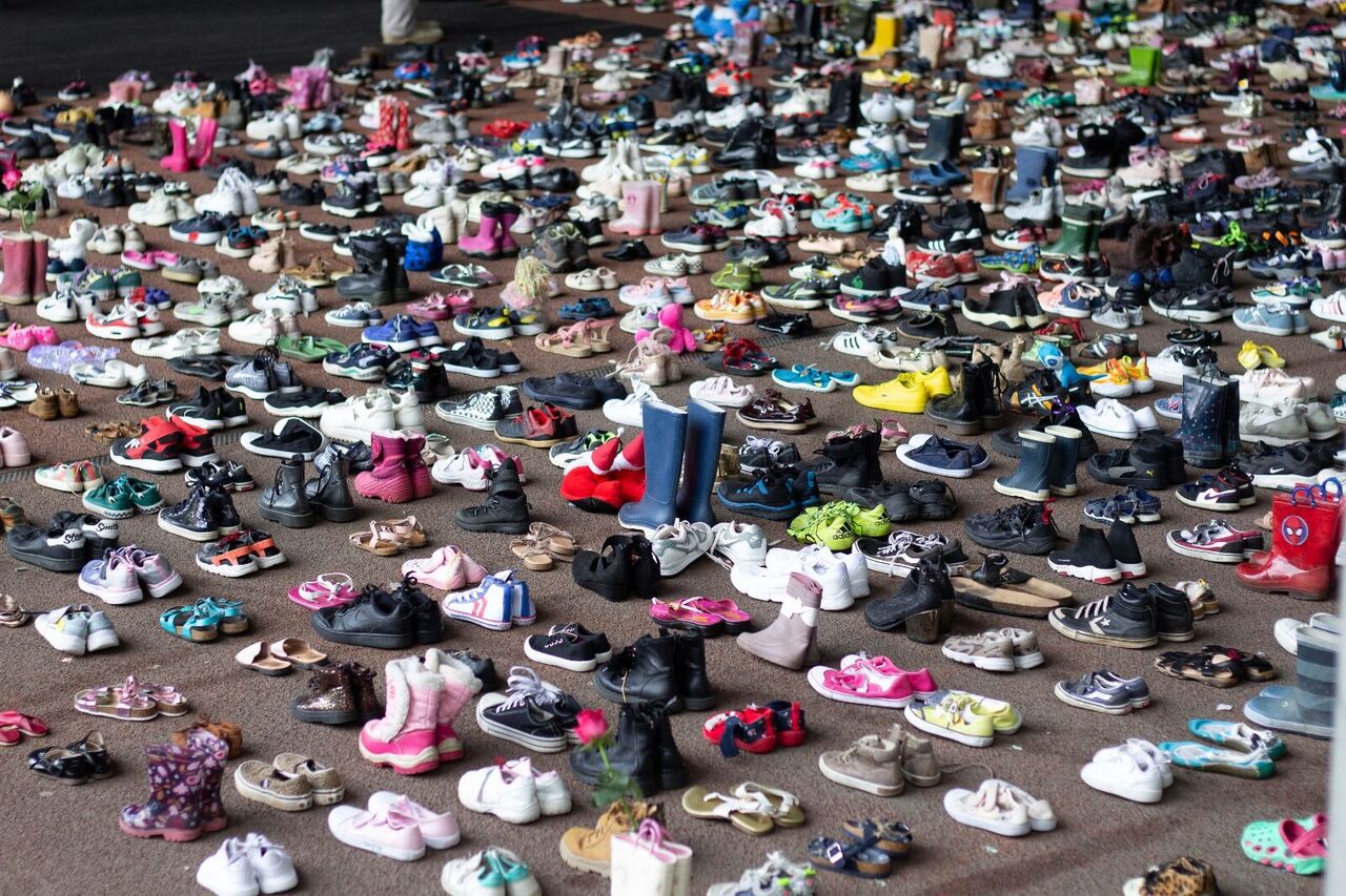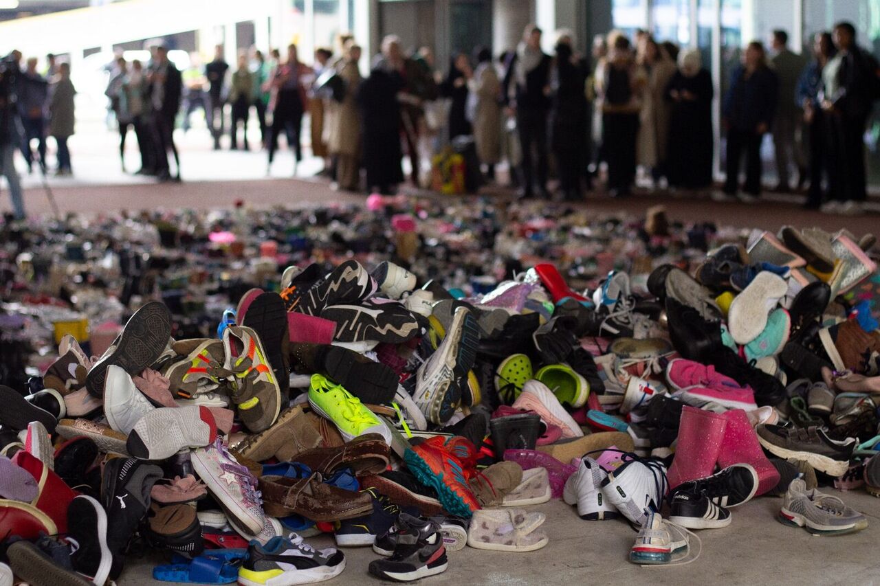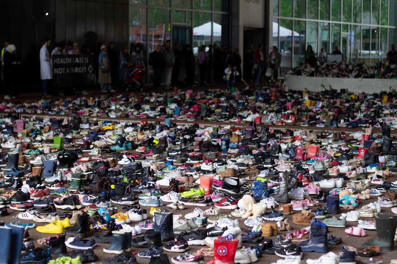 İsrail saldırılarında ölen Filistinli çocuklar için binlerce çift ayakkabı bırakıldı