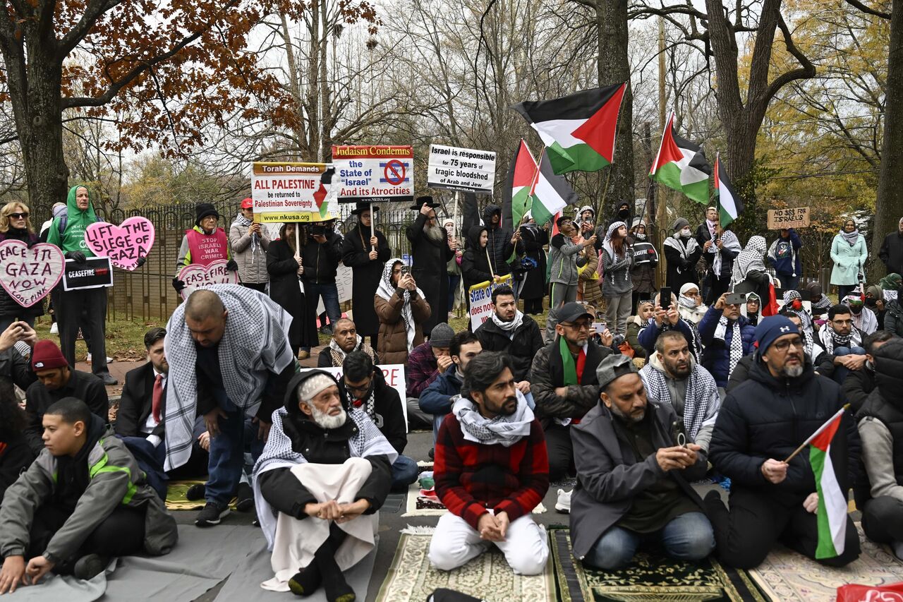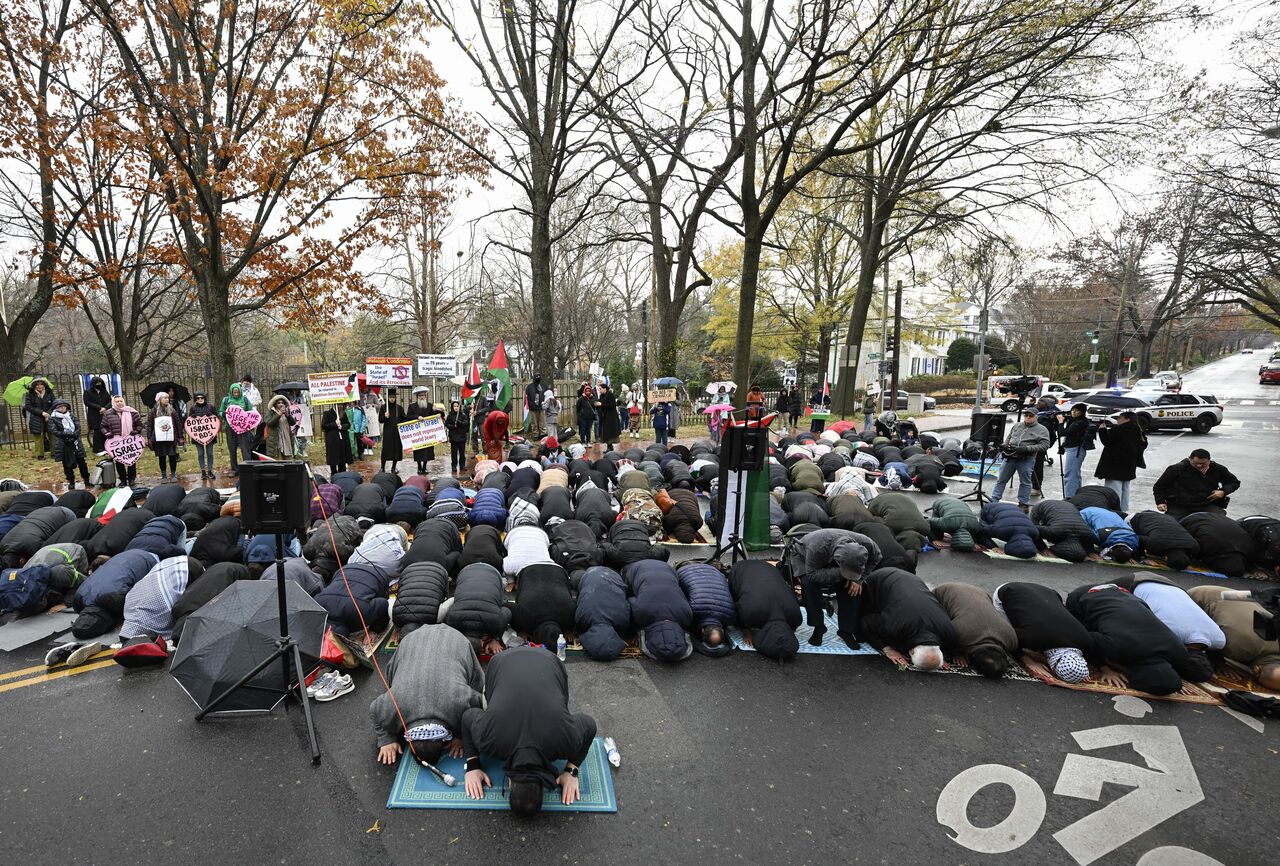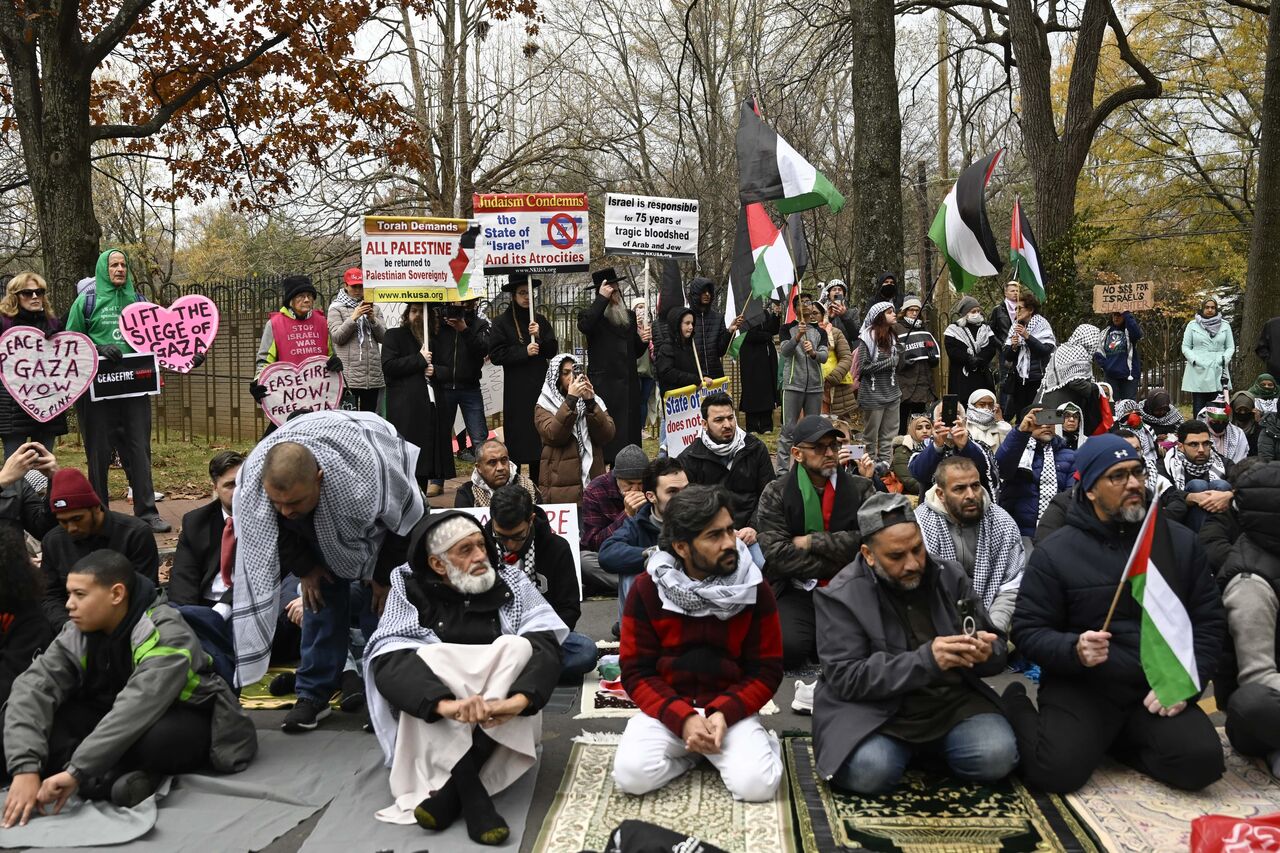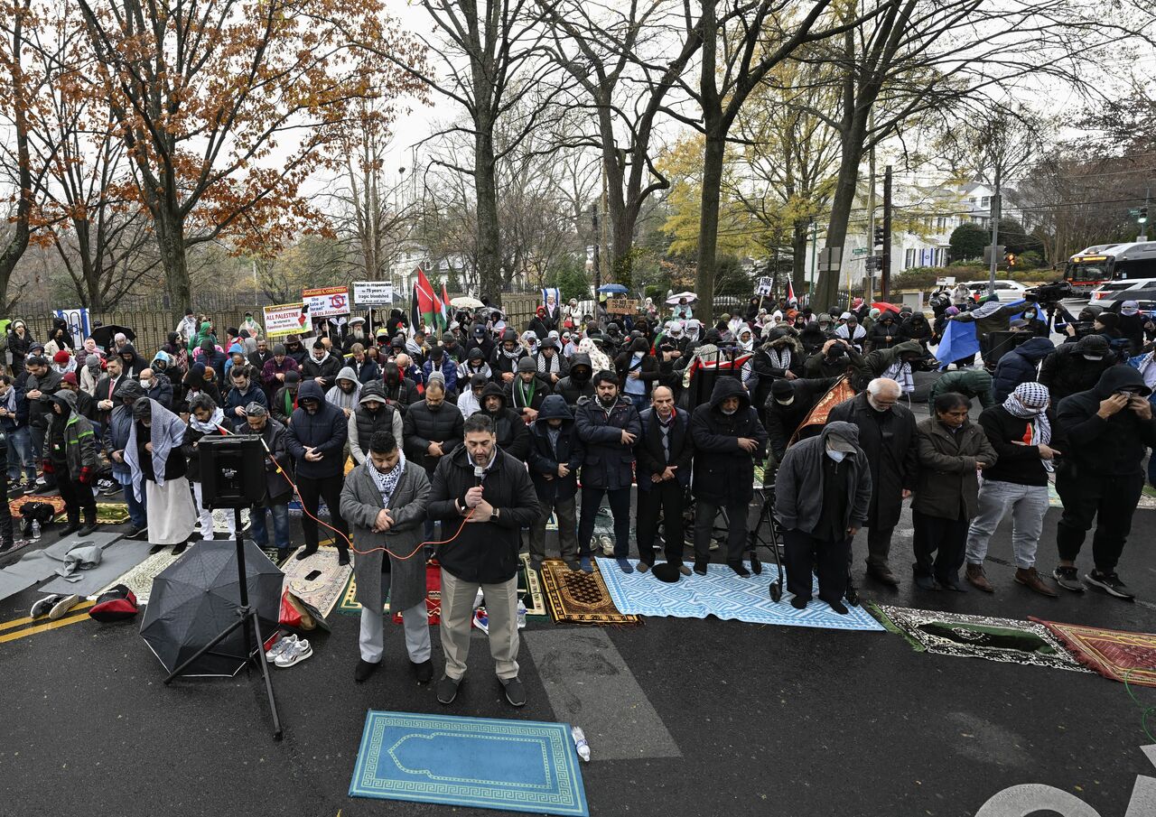 ABD'nin başkenti Washington'da bulunan İsrail Büyükelçiliği önünde, Filistin'e destek vermek ve bölgede ateşkes sağlanması talebiyle bir araya gelen bir grup gösterici, büyükelçilik binasının önünde toplandı. Bu göstericiler, Filistin halkının yaşadığı zorluklara dikkat çekmek amacıyla, büyükelçilik binası önünde sembolik bir eylem gerçekleştirerek cuma namazını kıldılar. Bu etkinlik, hem Filistin'e desteklerini ifade etmek hem de bölgede barışçıl çözümler bulunması çağrısında bulunmak için düzenlendi.