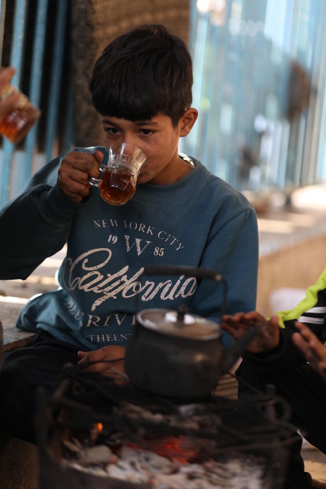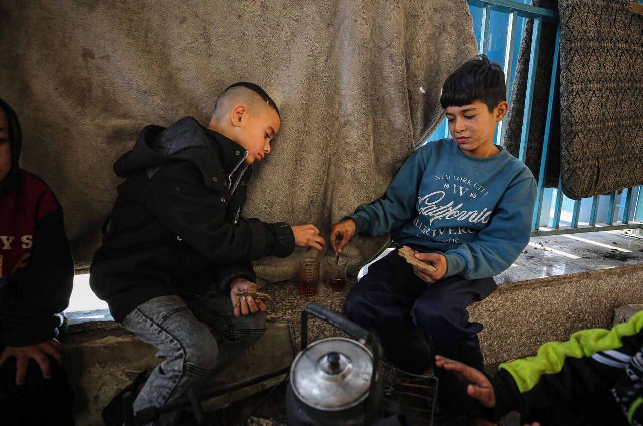 İsrail ordusunun Gazze'ye aylardır düzenlediği saldırılar nedeniyle bölgede yaşanan insani kriz giderek derinleşiyor. Gazze kentindeki bir barınma merkezine aileleriyle birlikte sığınan Filistinli çocuklar zor şartlar altında yaşamlarını sürdürüyor. Her şeyden habersiz çocuklar odun ateşinde hazırlanan çay ve ekmekle karınlarını doyurmaya çalışıyor.