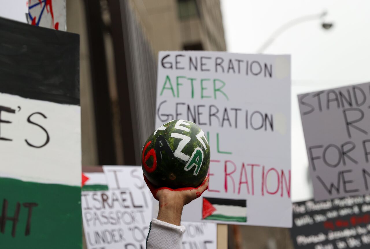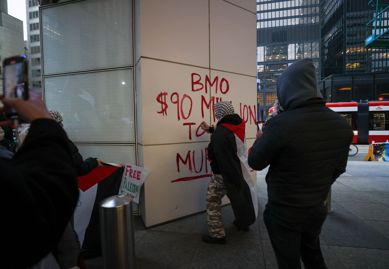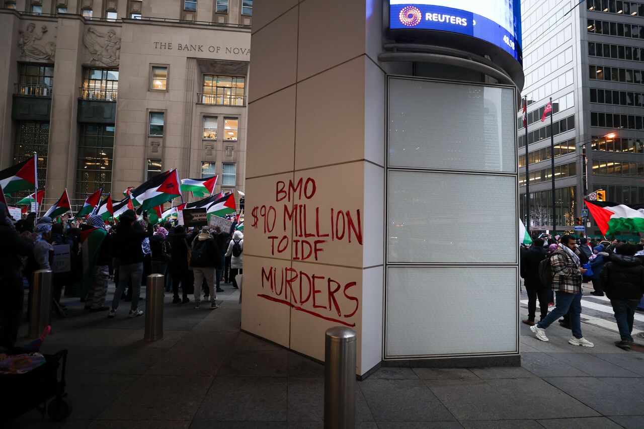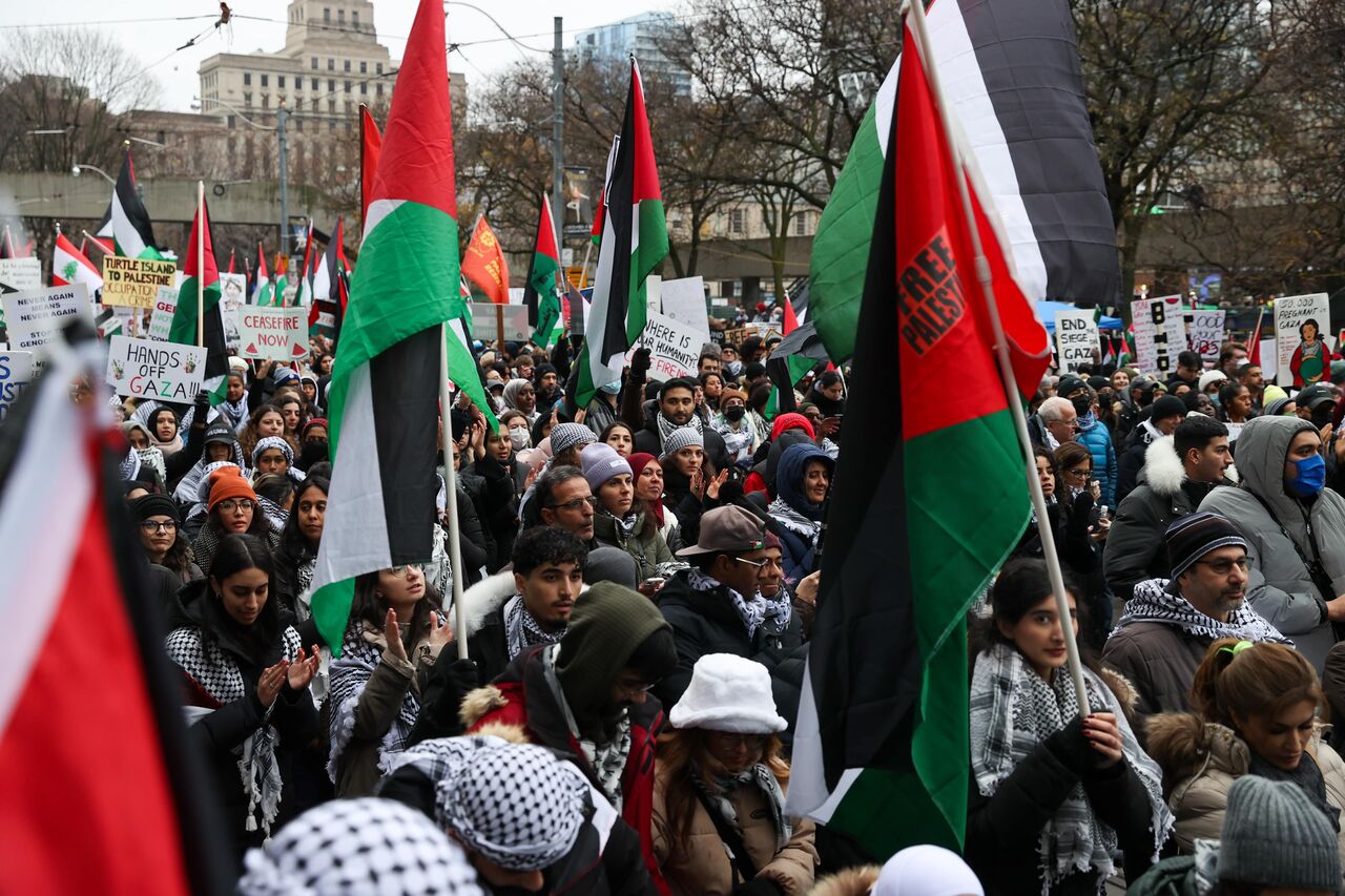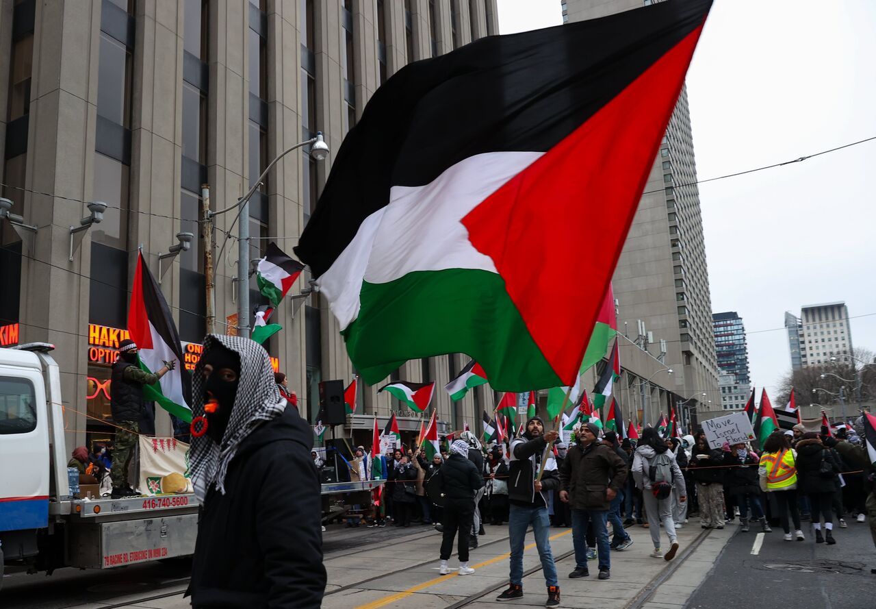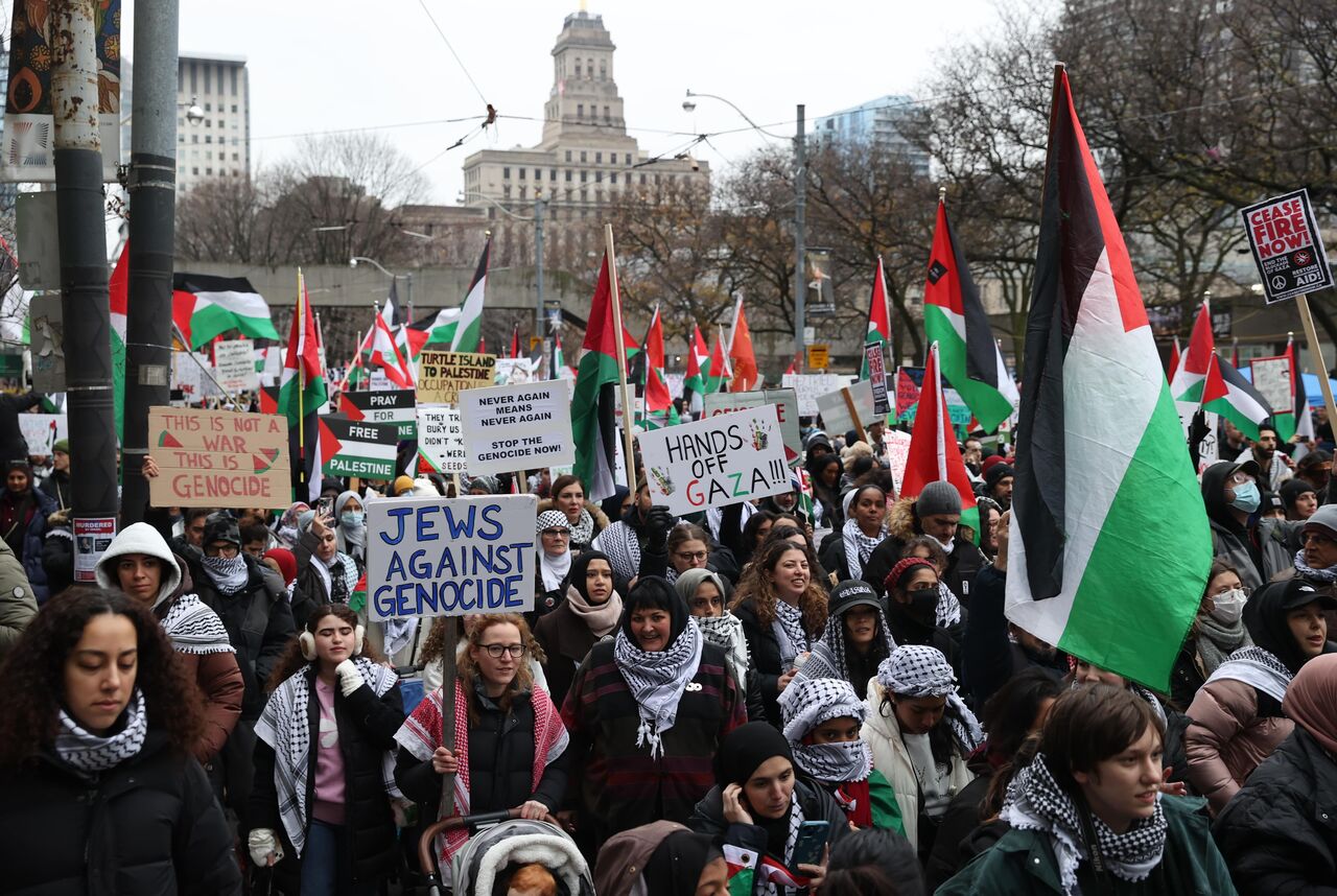 İsrail'in Gazze'ye yönelik saldırılarını protesto eden göstericiler, ellerinde pankart ve Filistin bayrakları taşıyarak Nathan Phillips Meydanı'ndan başlayarak, Toronto şehir merkezinde yürüdü.