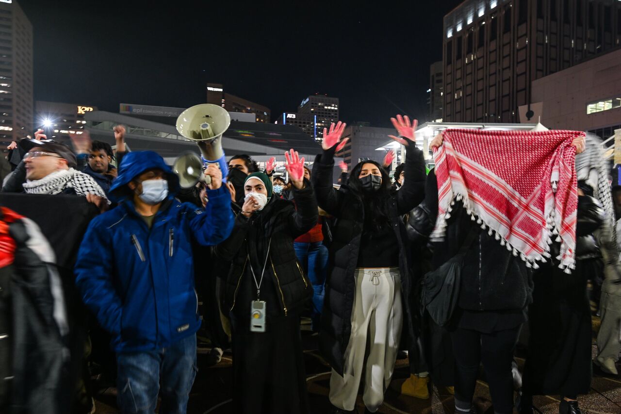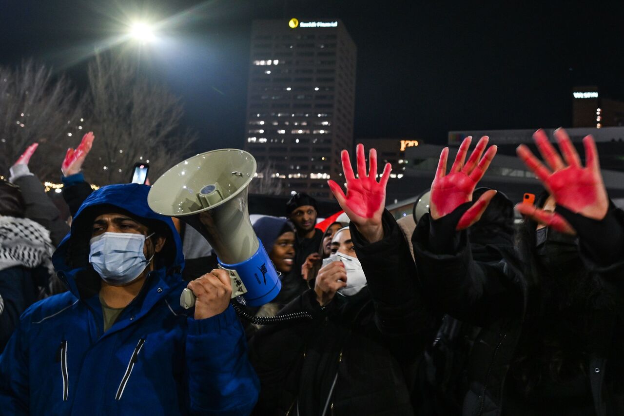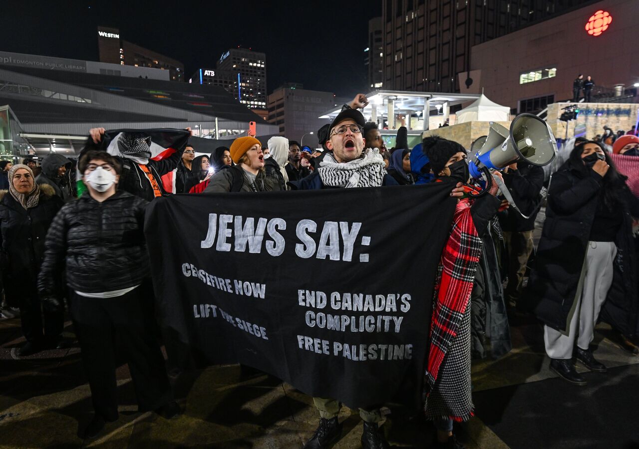 Yılın son gününde Kanada'nın Edmonton kentinde bulunan Whyte Bulvarı'nda bir araya gelen yüzlerce kişi yeni yıla girerken Filistin'e destek gösterisi düzenledi. Filistin bayrakları ve pankartlar taşıyan göstericiler ateşkes talep etti, İsrail karşıtı slogan attı.