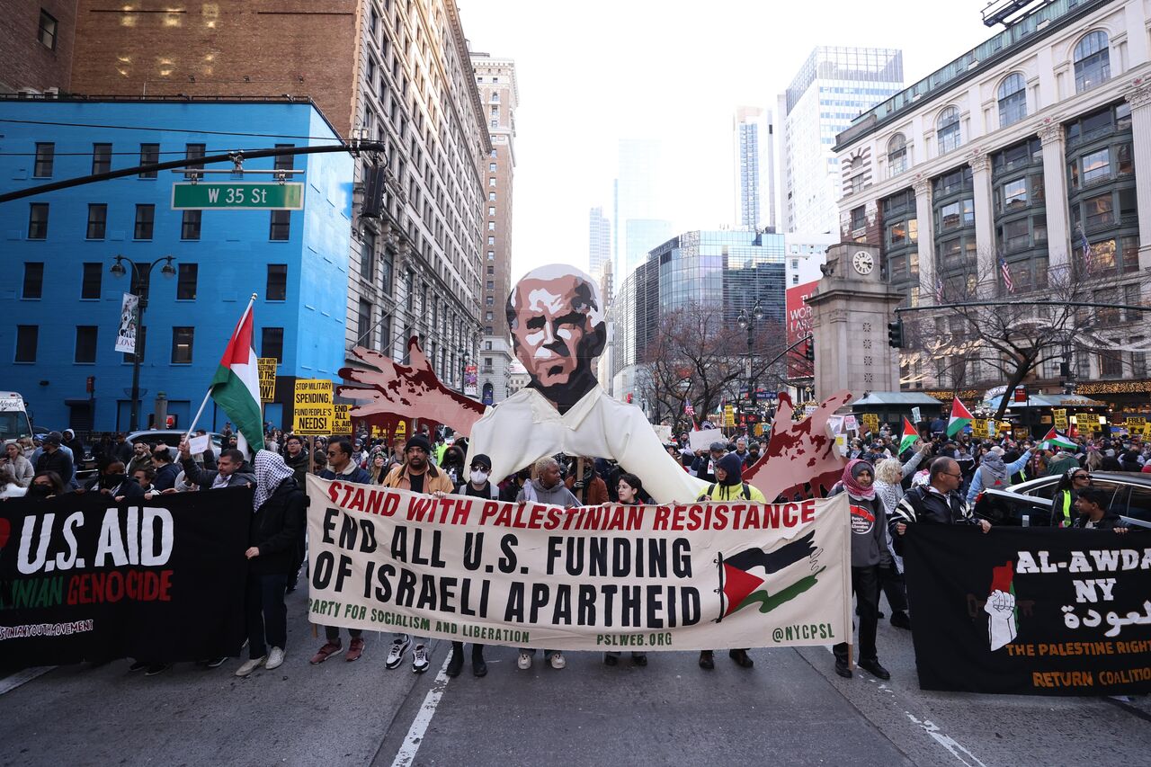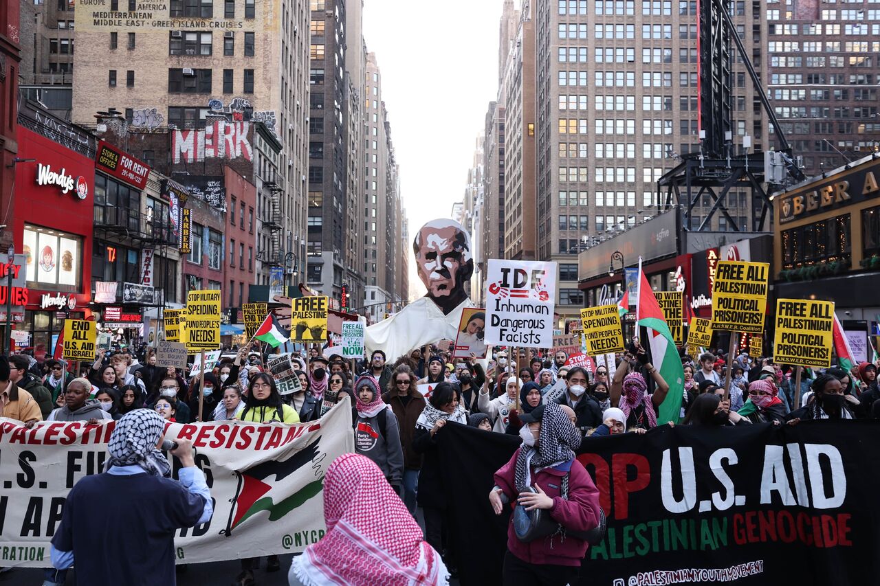 ABD'nin New York kentindeki Manhattan bölgesinde bir araya gelen binlerce kişi, Filistin’e destek gösterisi düzenlendi. İsrail'in Gazze'ye yönelik saldırılarını protesto eden göstericiler, ellerinde Filistin bayrakları ve pankartlar taşıdı.