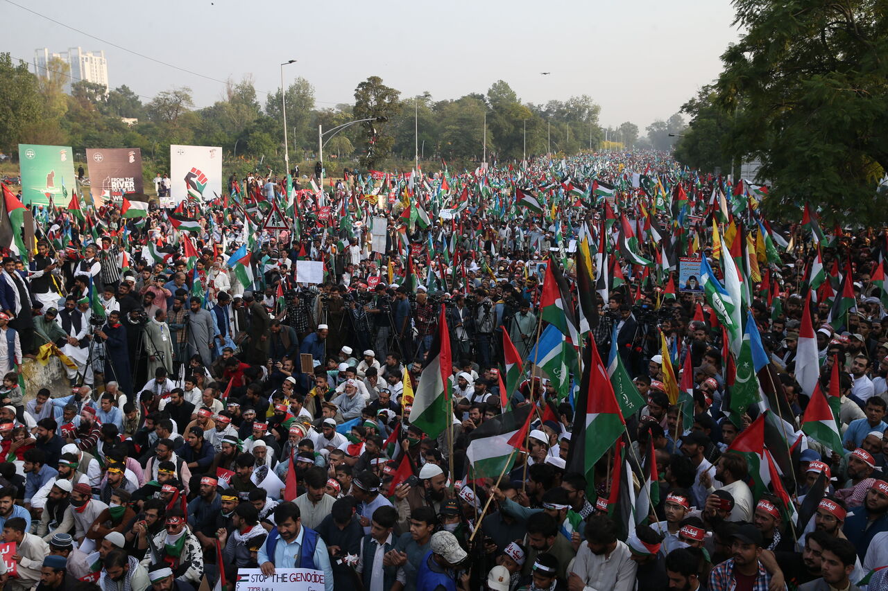 Pakistan Cemaat-i İslami Partisi tarafından düzenlenen yürüyüşe binlerce kişi katıldı.