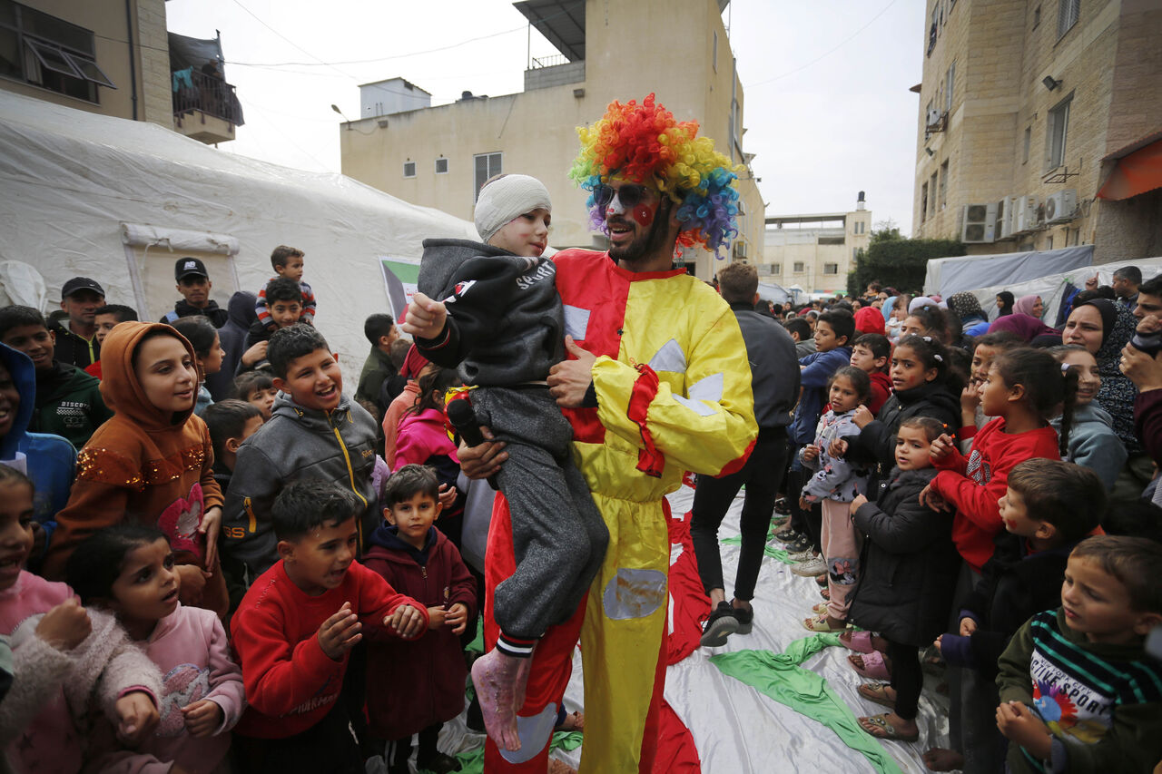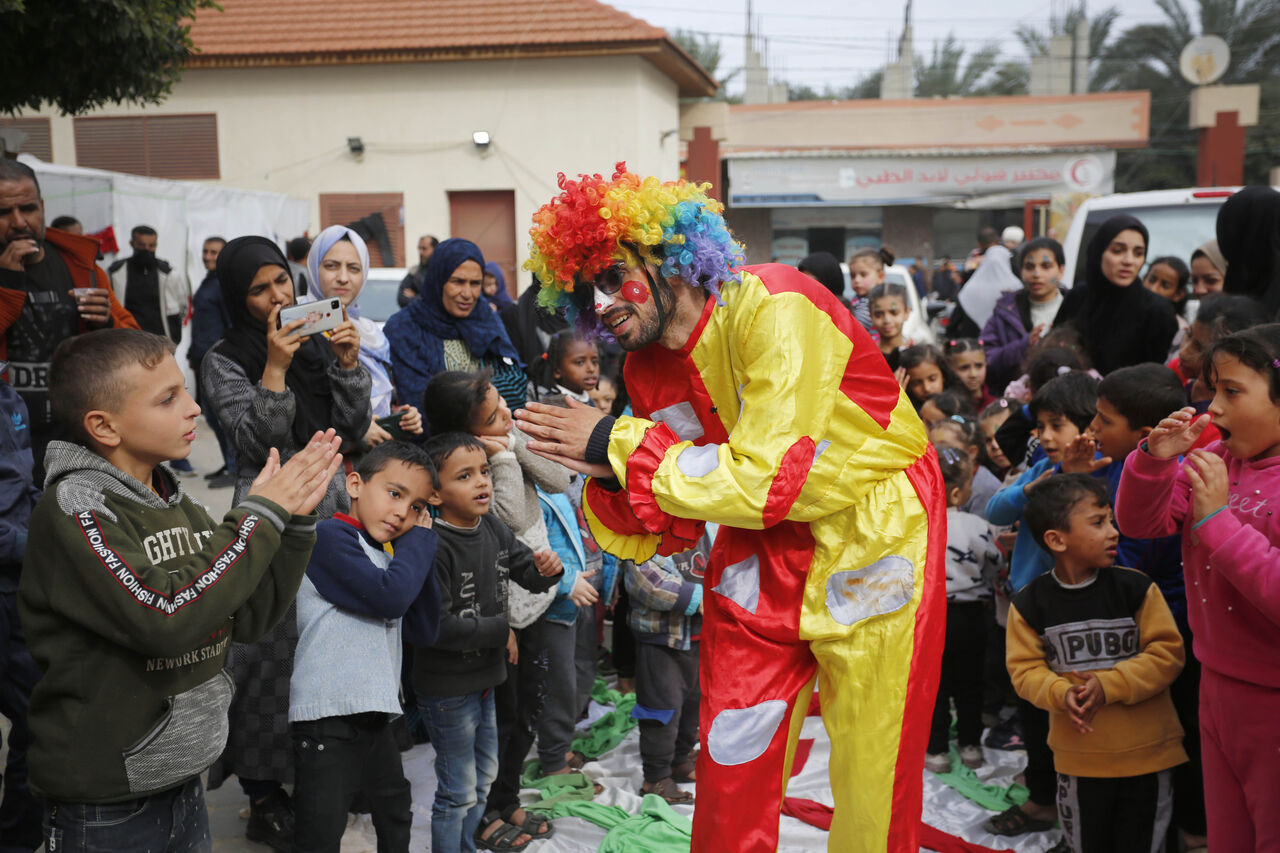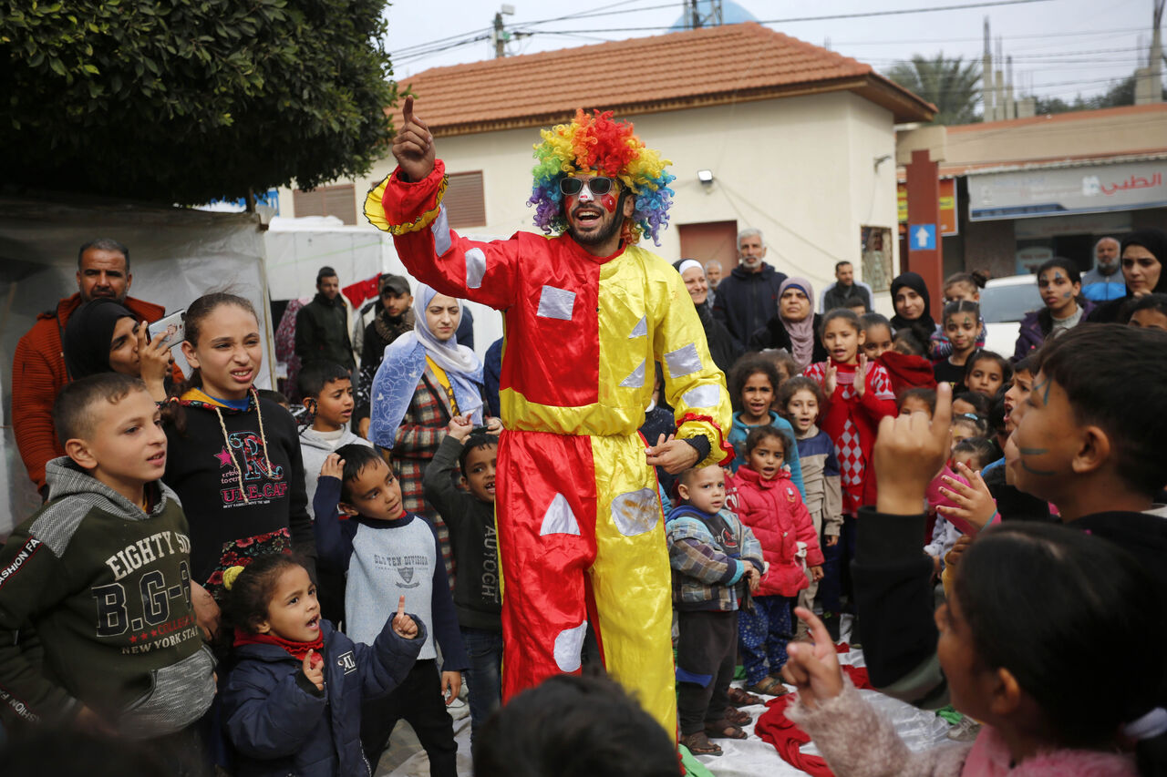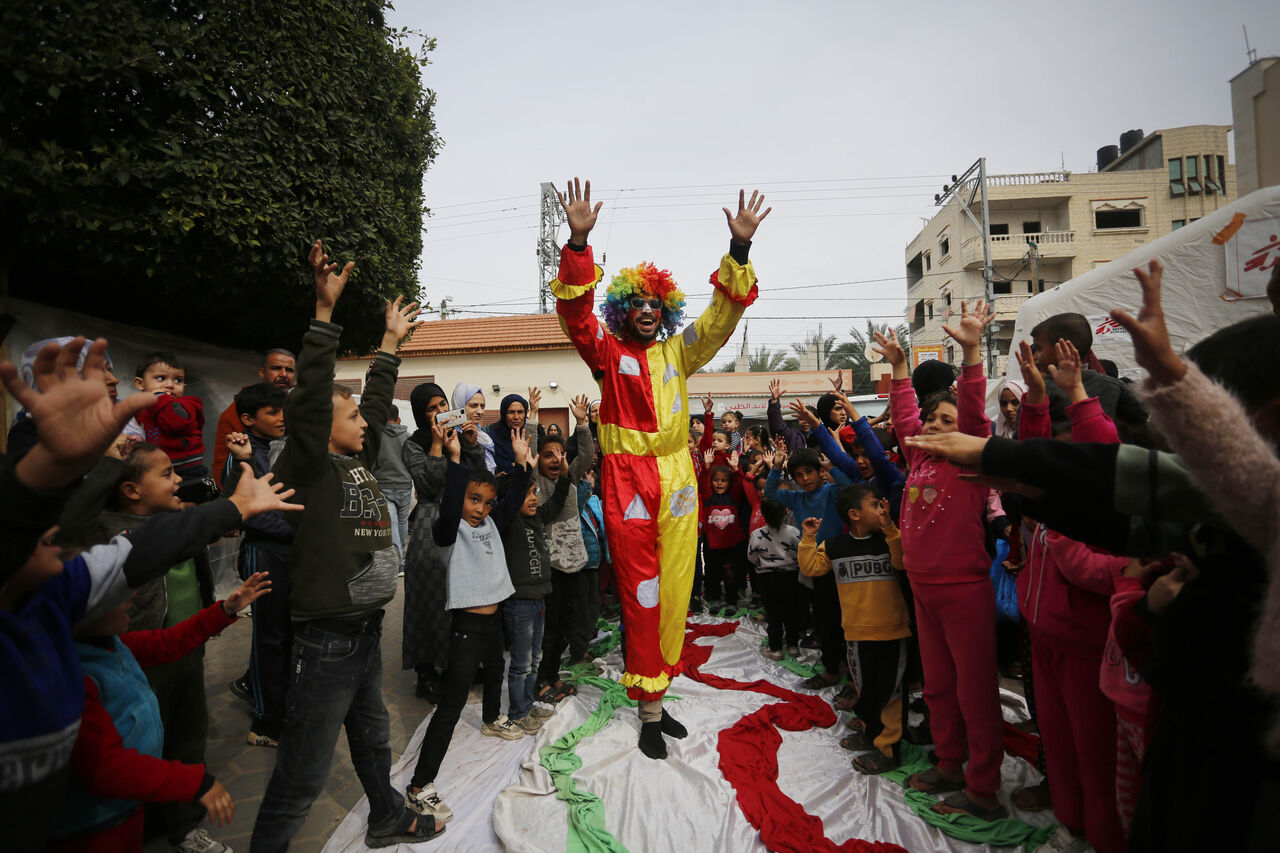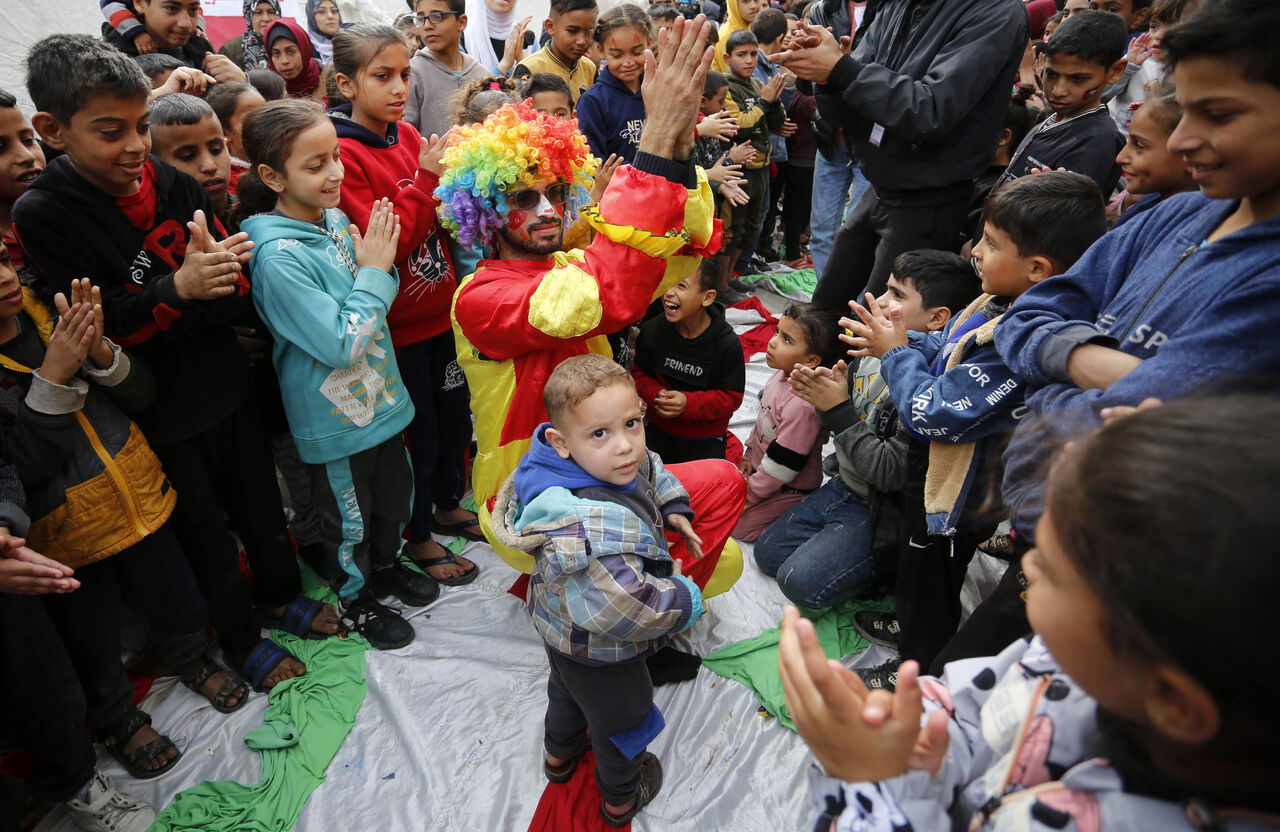 İsrail saldırıları altındaki Gazze Şeridi'nde evlerinden olan ve aileleriyle Deyr Balah kentindeki El Aksa Şehitleri Hastanesi’ne sığınan çocuklar için etkinlik düzenlendi. Palyaçolar, çocukları eğlendirmek için çeşitli etkinlikler sundu.