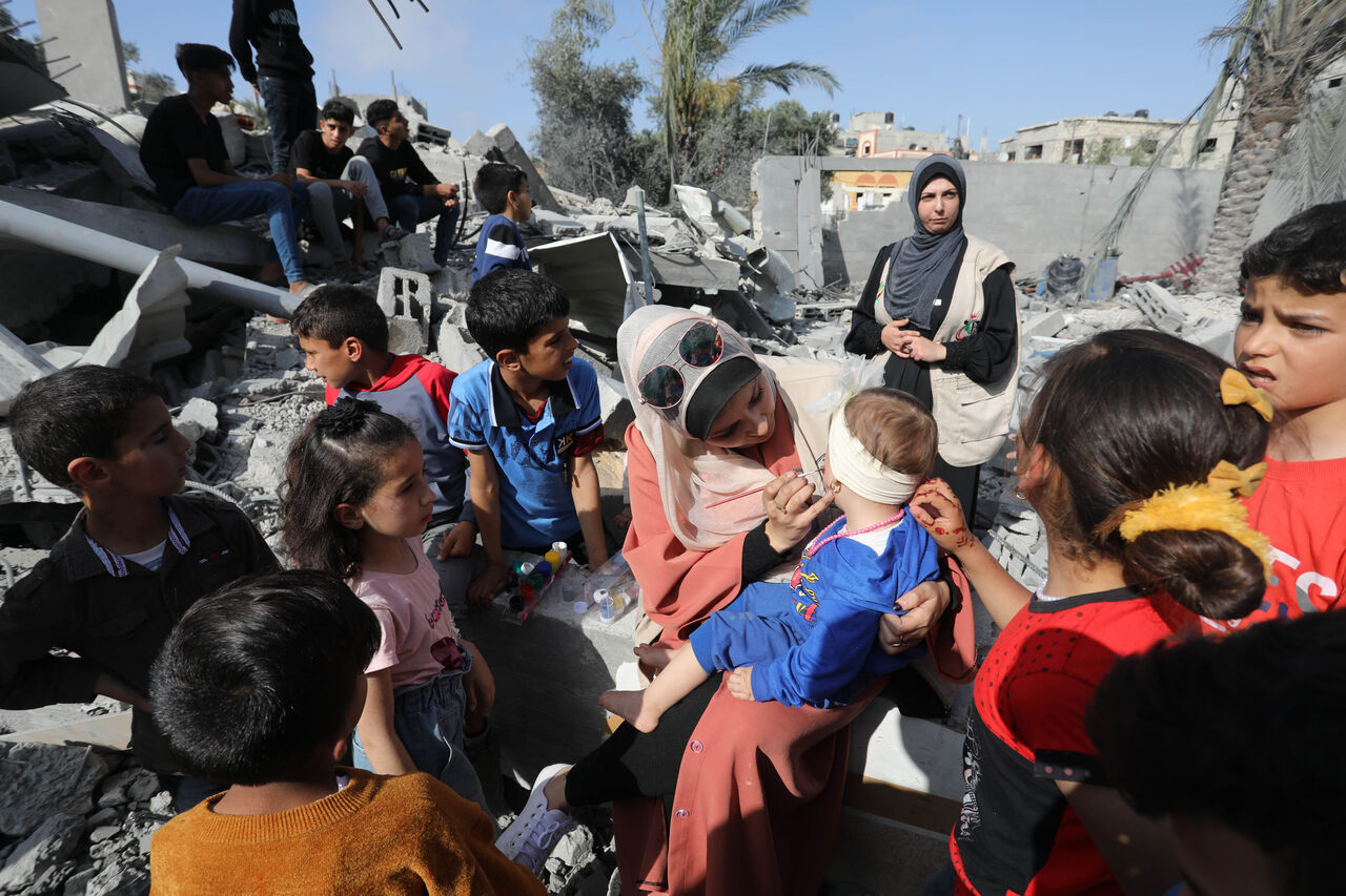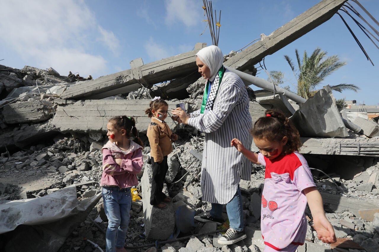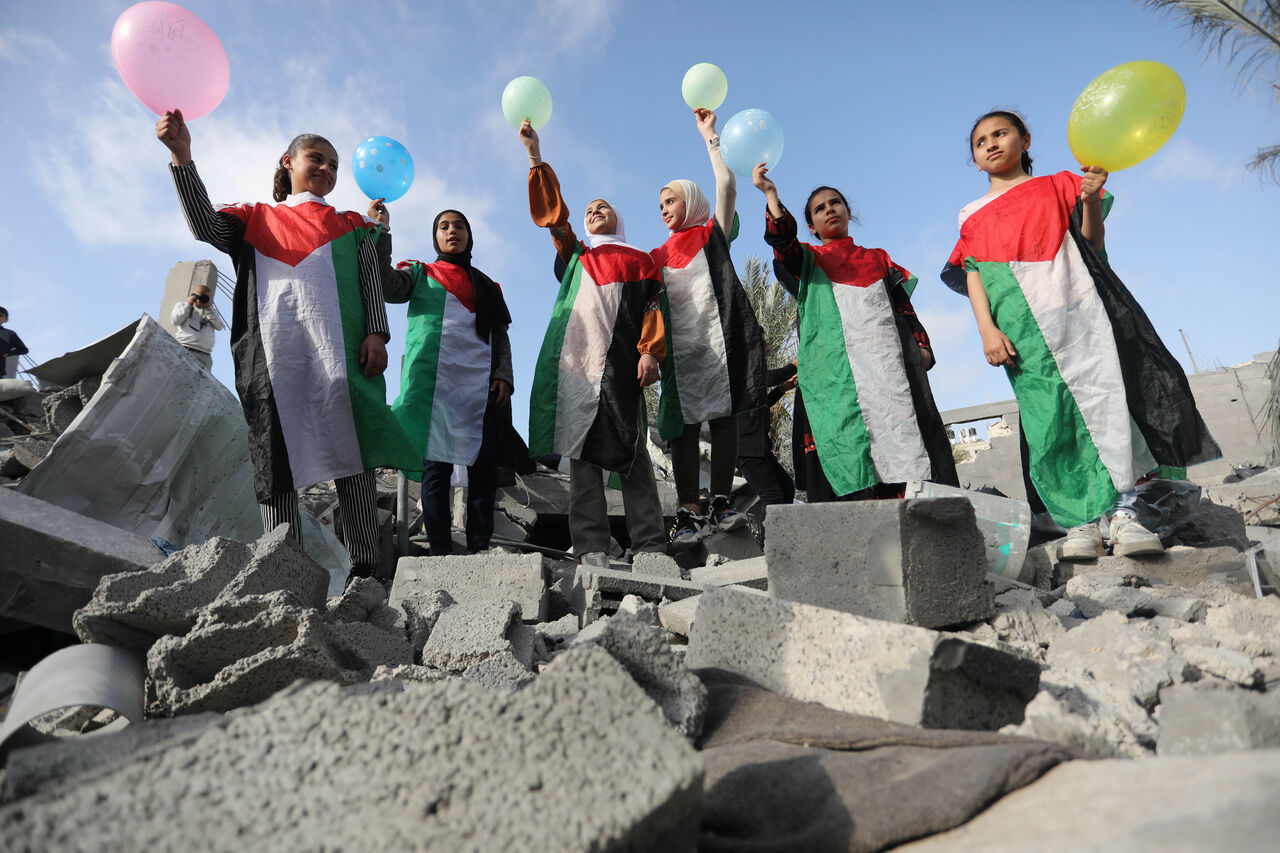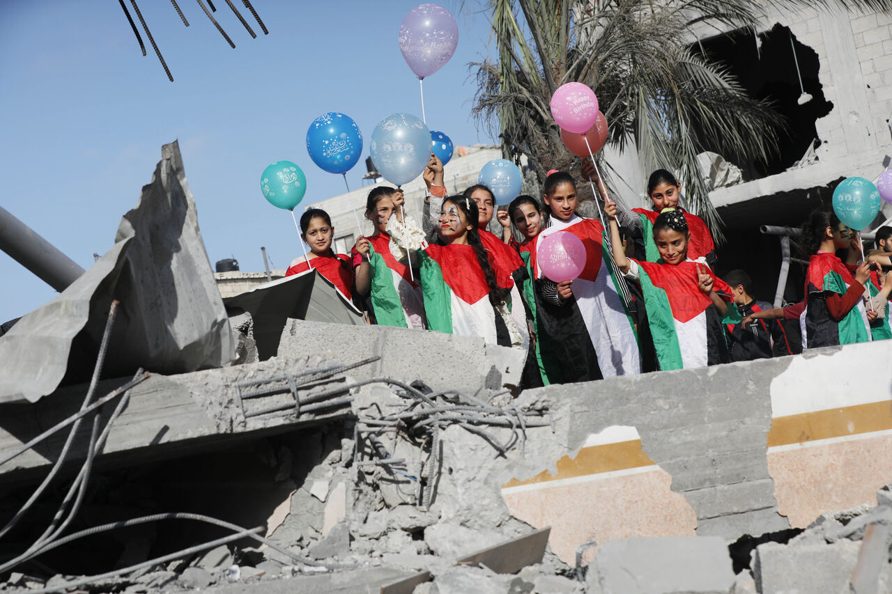 Filistinli gönüllü bir grup genç ve palyaçolar, Gazze Şeridi'nin Deyr Balah kentindeki çocukların yüzlerini güldürmek ve savaşın olumsuz izlerini bir nebze unutturmak için İsrail'in saldırıları sonuncu harabeye dönen bir binaların enkazı üzerinde eğlence etkinlikleri düzenledi. Gönüllü gençler, çocukların yüzünü güldürdü.