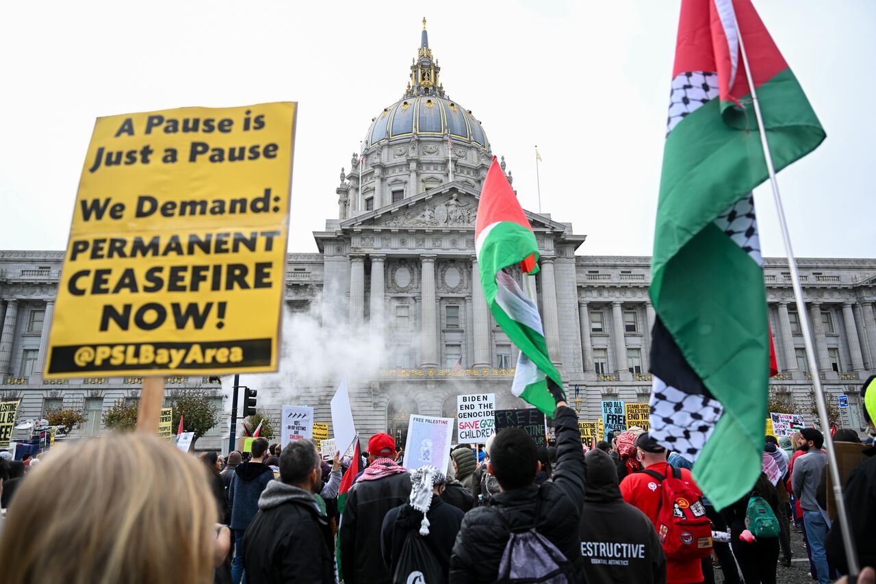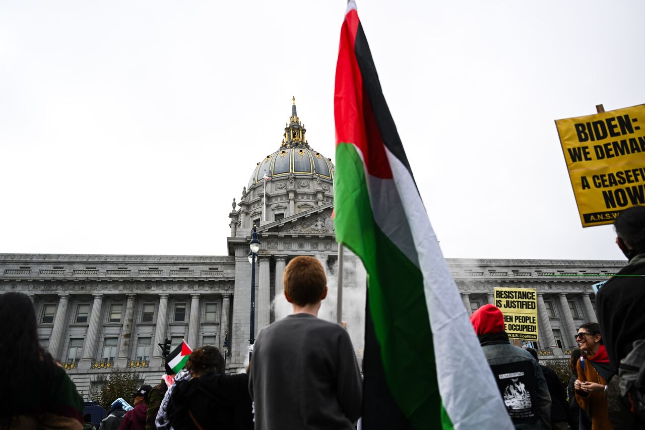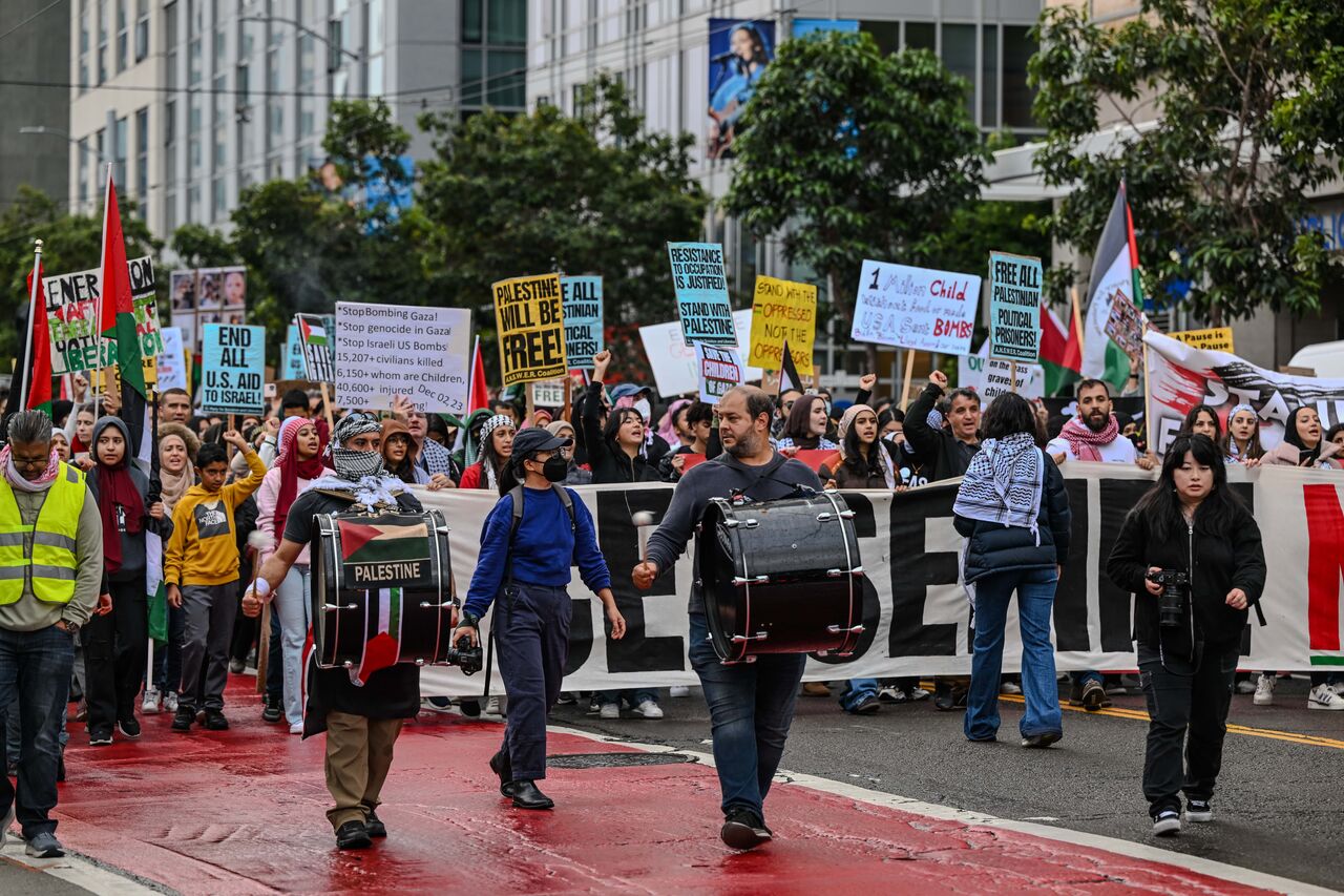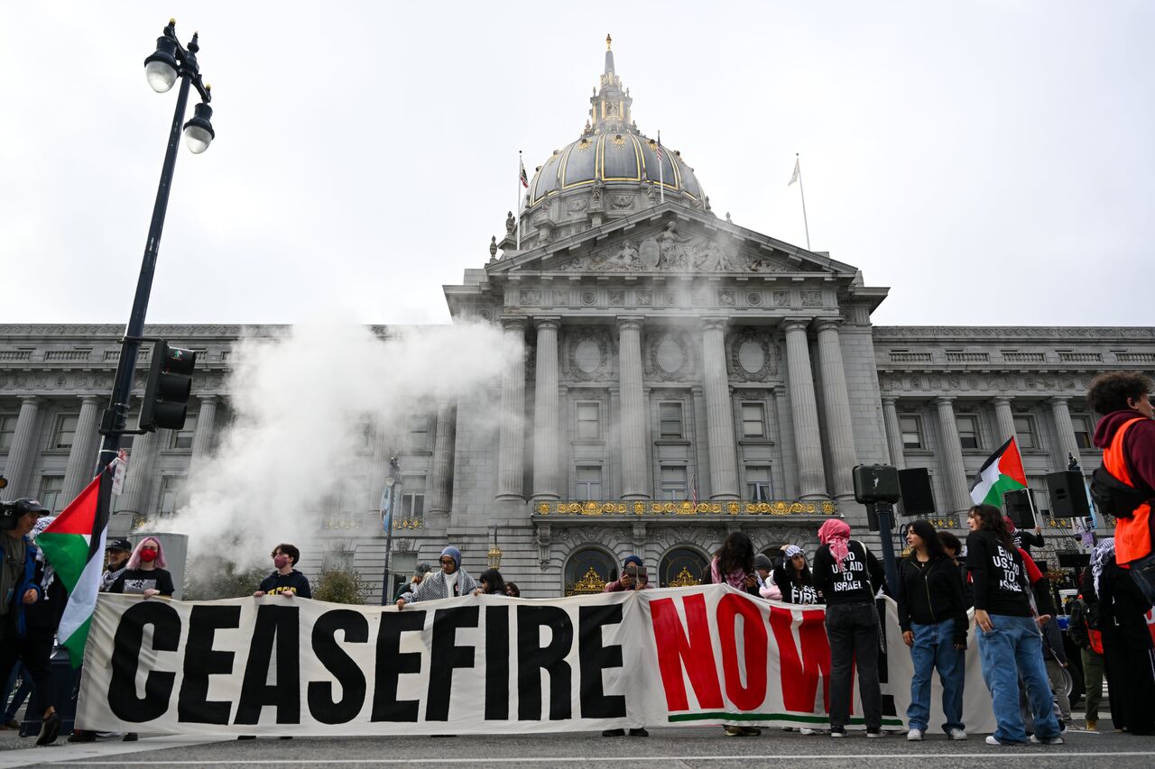 Belediye binası önünde toplanan yüzlerce gösterici, San Francisco Federal Binası'na doğru yürüdü.