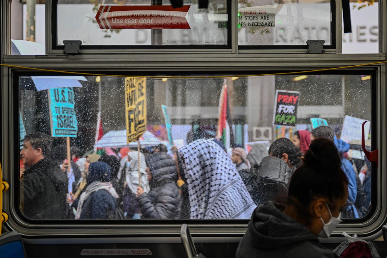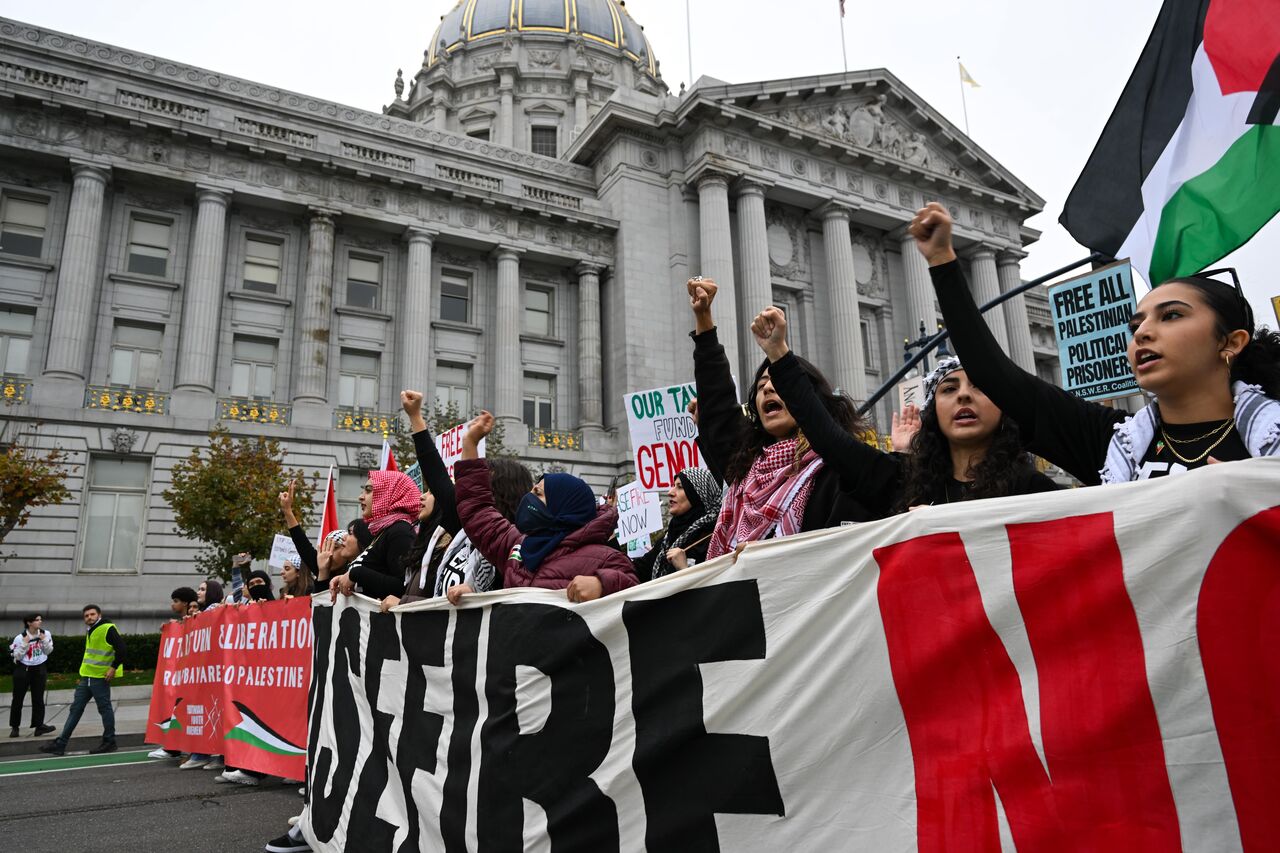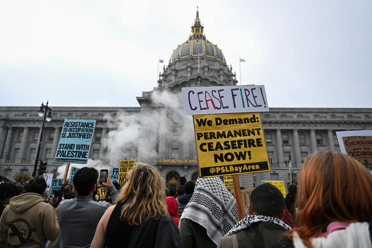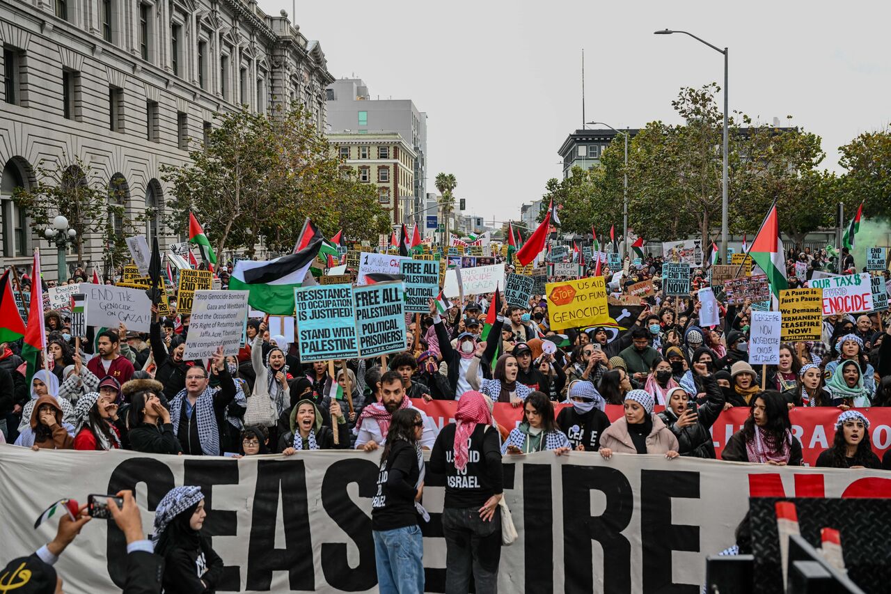 Belediye binası önünde toplanan yüzlerce gösterici, San Francisco Federal Binası'na doğru yürüdü.