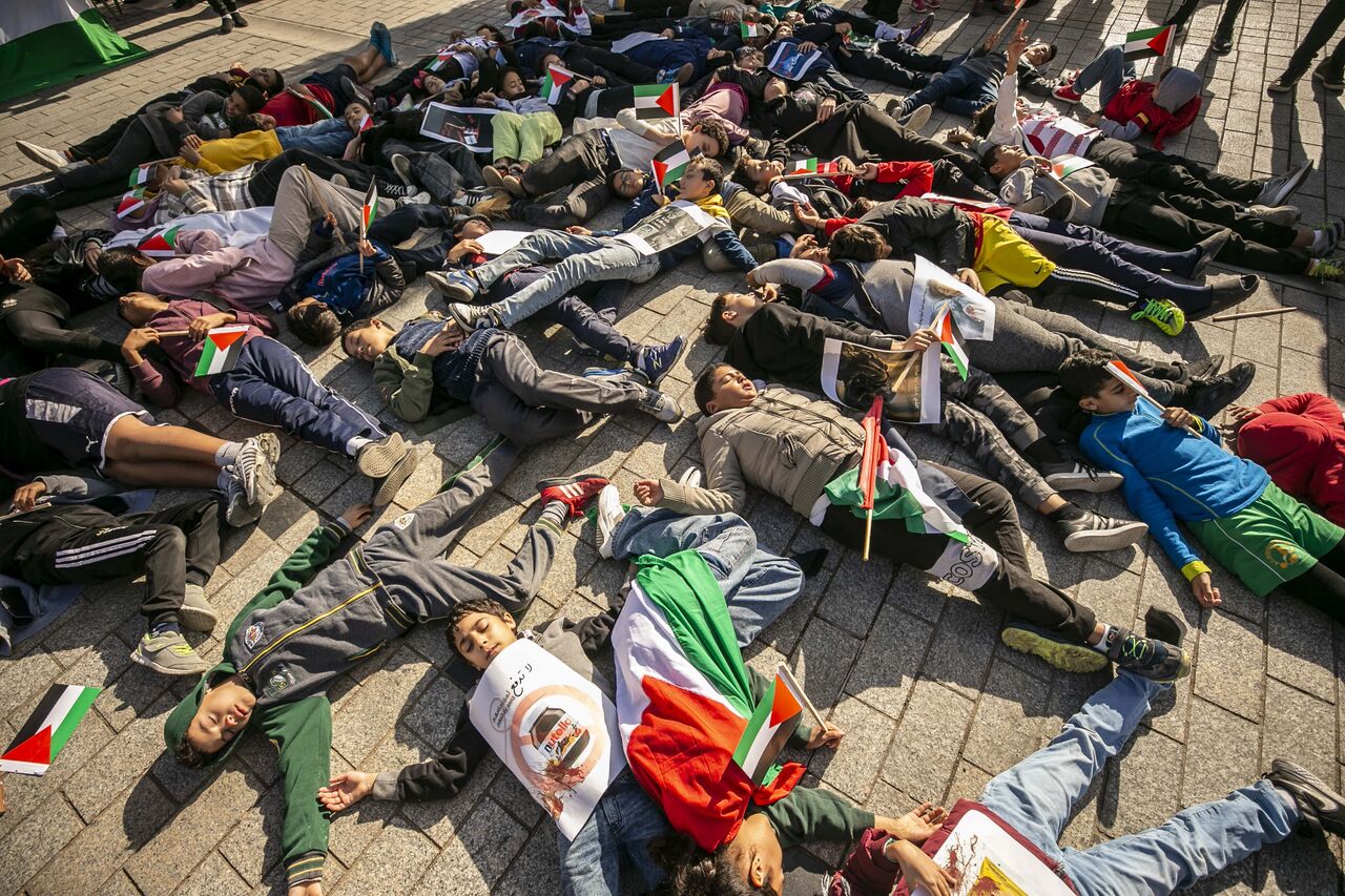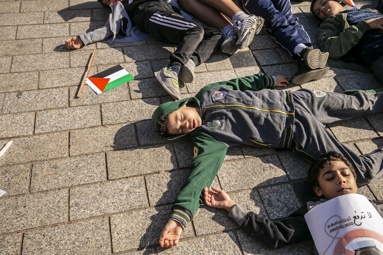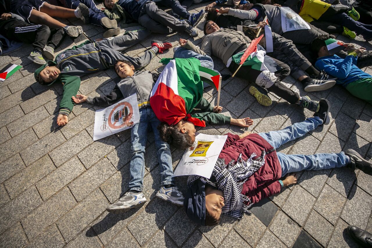 Göstericiler, ellerinde Filistin bayrakları ve İsrail'in Gazze saldırılarını protesto eden pankartlar taşıdı.