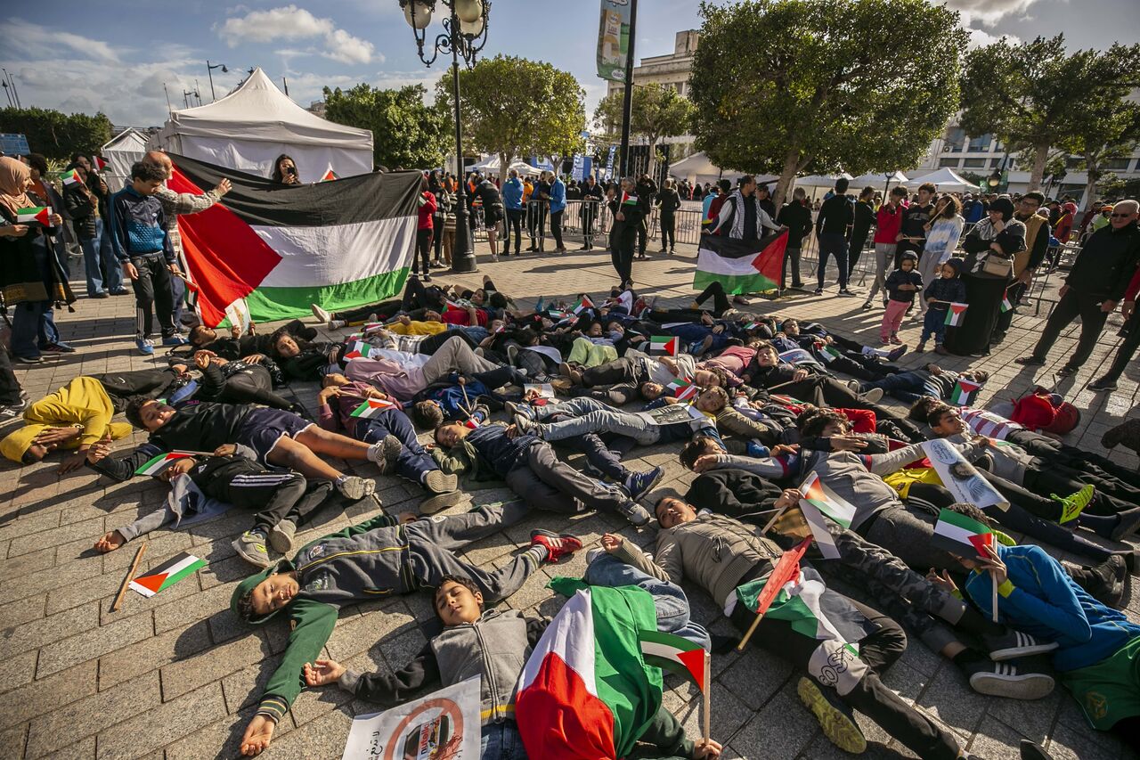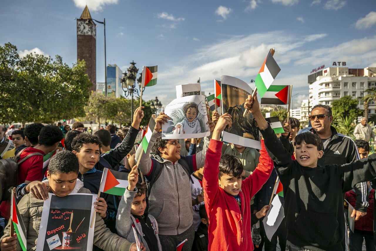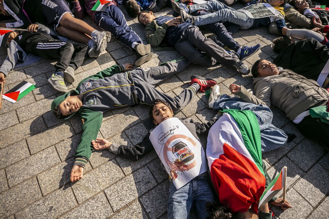 Göstericiler, ellerinde Filistin bayrakları ve İsrail'in Gazze saldırılarını protesto eden pankartlar taşıdı.