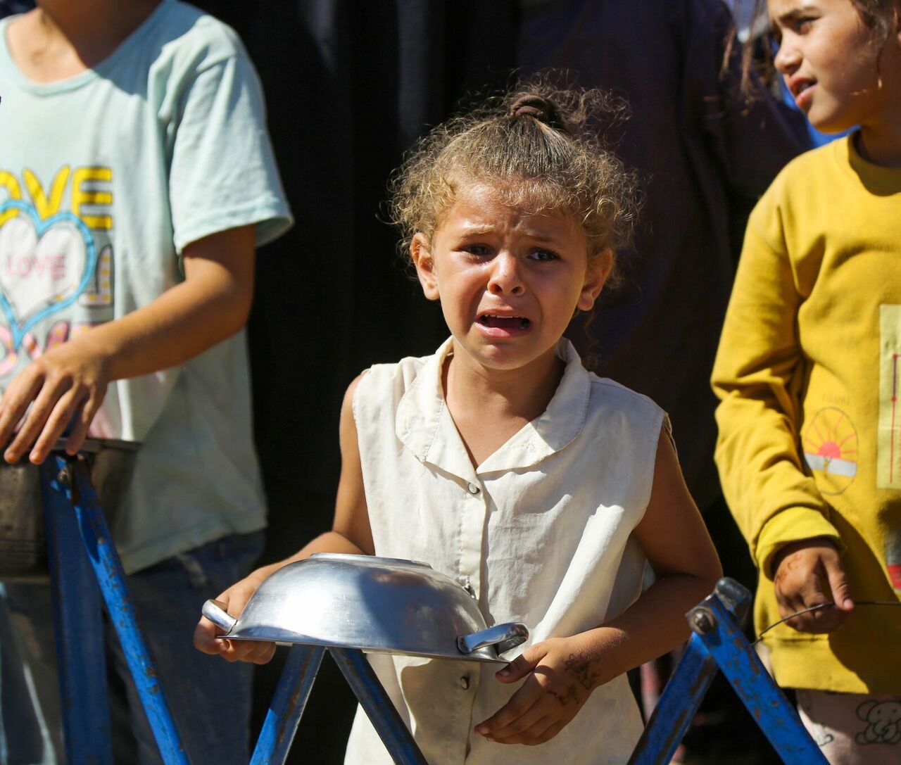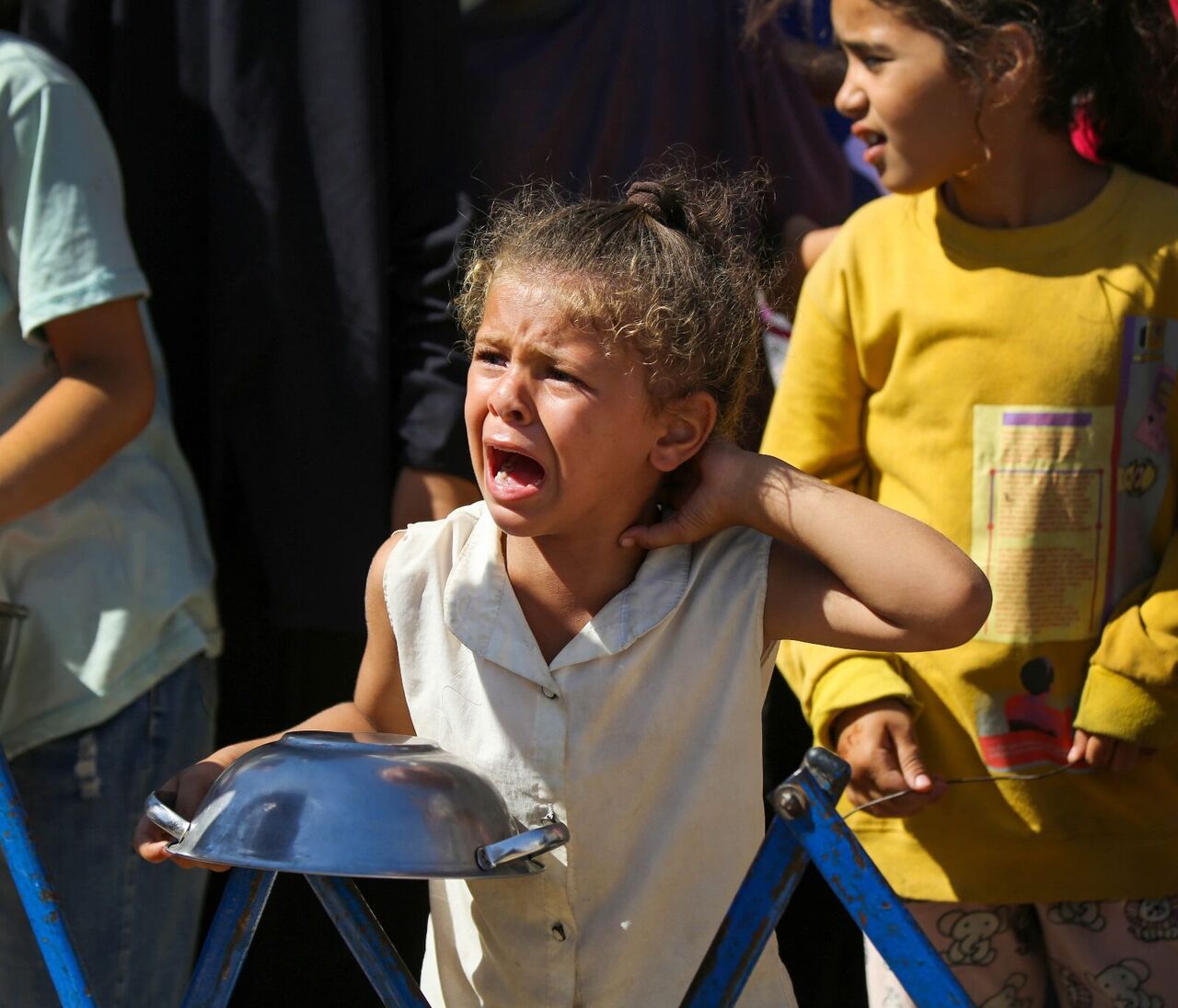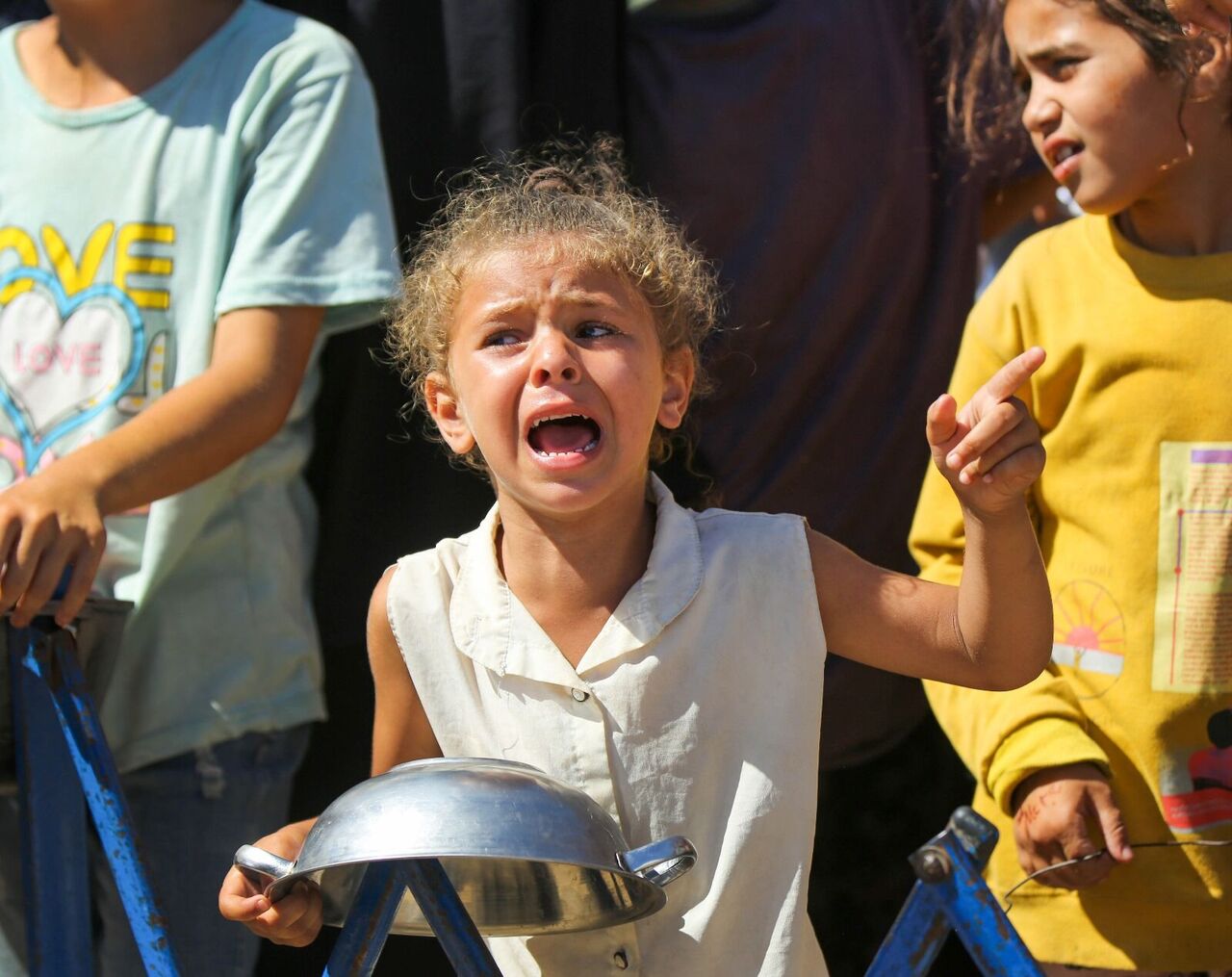 Deyr Belah kentindeki Filistinliler, hayır kurumlarının dağıttığı yemeklerden alabilmek için uzun süre kuyrukta bekledi. Kuyrukta bekleyen ve yemek alamayacağını düşünen Gazzeli bir kız çocuğun elinde boş tabağı taşıyarak ağlaması yürekleri burktu.