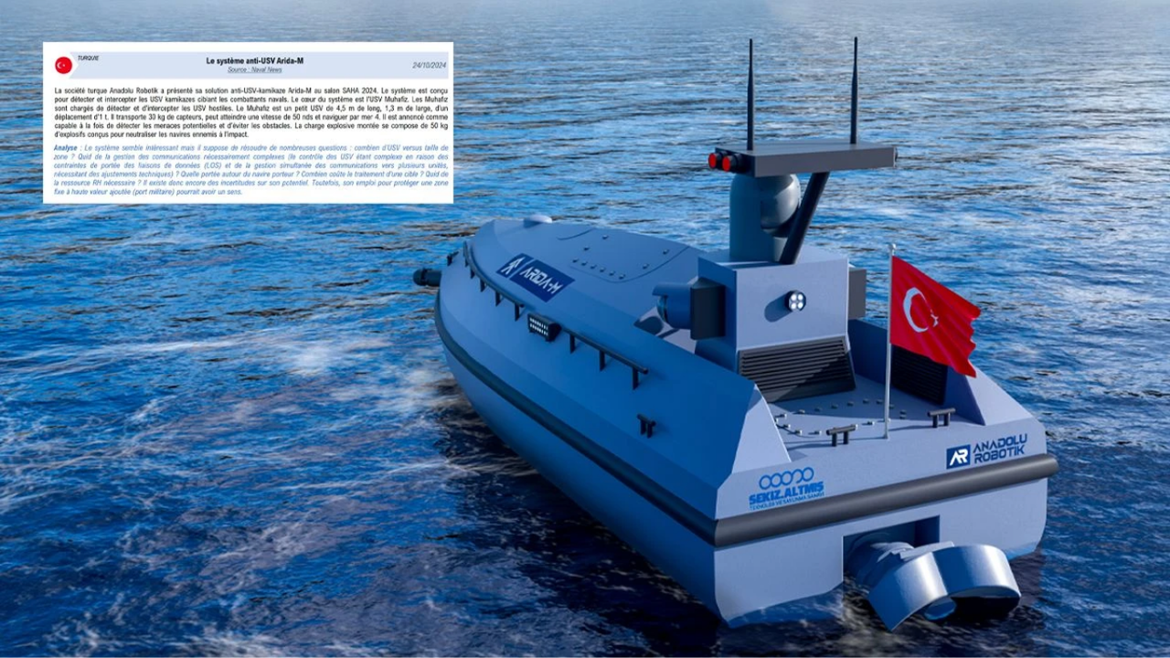 Türkiye merkezli Anadolu Robotik ve Sekiz Altmış şirketleri tarafından geliştirilen insansız deniz aracı (İDA) Arida-M, SAHA EXPO 2024 fuarında tanıtılmasının ardından uluslararası alanda dikkat çekmeye devam ediyor. Son olarak, Fransa Savunma Bakanlığı tarafından yayımlanan “Obsdrones” başlıklı resmi bültenin Ekim 2024 tarihli sayısında Arida-M sistemine yer verildi.
