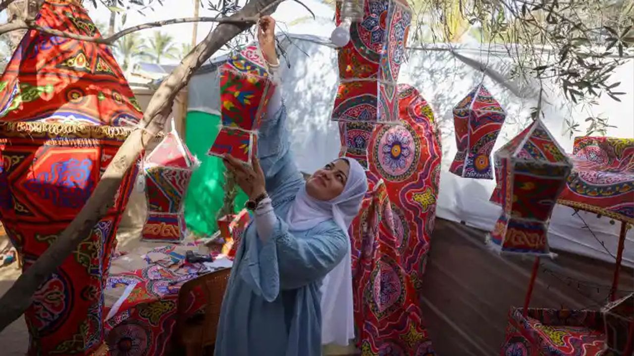 Han Yunus’un Mevasi bölgesindeki çadır kentlerde yaşayan 32 yaşındaki Reyhan Şarab, gelen insani yardım kolilerini geri dönüştürerek Ramazan fenerleri (fanoos) yapıyor. Elektriğin olmadığı, evlerin yıkıldığı bu batıl saldırı ikliminde Reyhan, karton kutulardan ürettiği fenerlerle çadırlara ışık ve umut taşımayı amaçlıyor.