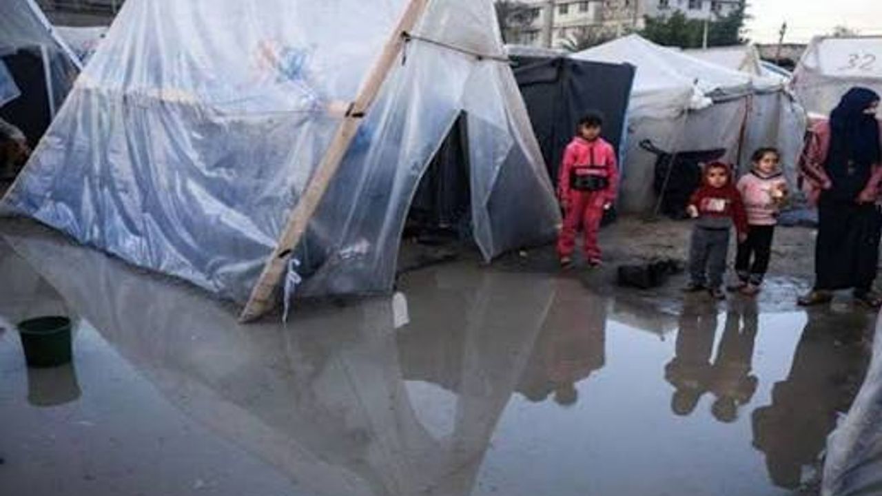 Bölgede şiddetli yağış ve fırtına etkili olurken, yüz binlerce Filistinlinin su basmış, yırtık ve ilkel çadırlarda hayatta kalmaya çalıştığı hatırlatıldı.