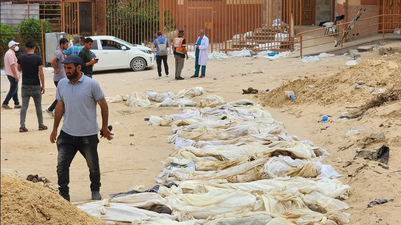Gazze'deki Sivil Savunma ekipleri, İsrail işgali sonrası bölgede ortaya çıkan toplu mezarlardan şehit cenazelerini çıkarma çalışmalarını aralıksız sürdürüyor. Bugün Çarşamba günü yapılan açıklamaya göre, ekipler dördüncü gün üst üste rastgele mezarlıklardan naaşları çıkarırken, Şifa Tıp Kompleksi duvarları içerisinde 30'dan fazla şehidin bulunduğu bir toplu mezar tespit etti ve cesetleri buradan çıkardı.
