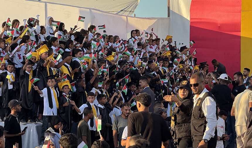 Gazze Şeridi’nin güneyindeki Han Yunus kentinin batısında yer alan Mevasi bölgesinde faaliyet gösteren Vefa Yetim Köyü, UNICEF iş birliğiyle 1,5 yıldır sürdürdüğü eğitim ve destek programını tamamlayan çok sayıda yetim çocuğun mezuniyetini gerçekleştirdi. Mezuniyet törenine çok sayıda Filistinli katıldı.