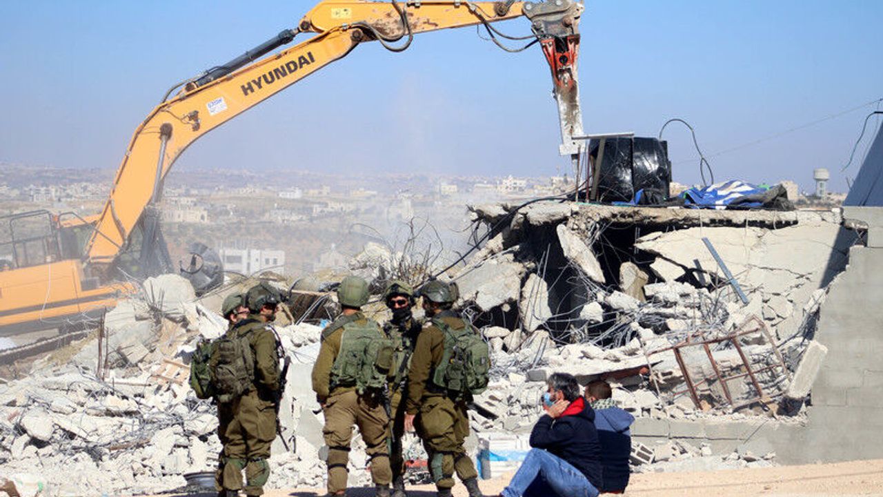 Buldozerlerle tarım arazilerine zarar veren İsrail askerleri, Bedir Şükri Sultan et-Temimi'ye ait iki katlı evi yerle bir etti.